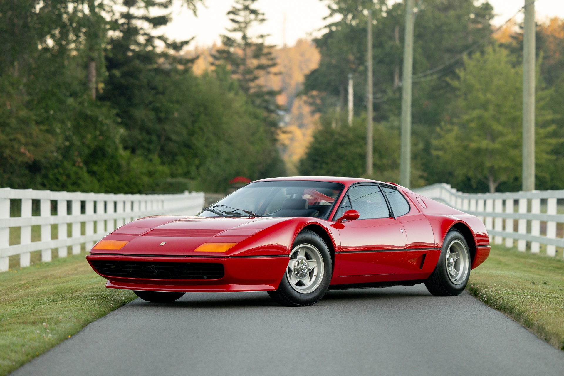 This example left the factory finished in Rosso Ferrari with black lower accents, which have since been painted to match the car. The driver-side mirror and sections of the engine cover have also been painted body color. A front lip spoiler, a rear high-mount spoiler, pop-up headlights, fog lights, NACA side ducts, and quad exhaust outlets are further details. The selling dealer notes checking in the paint.