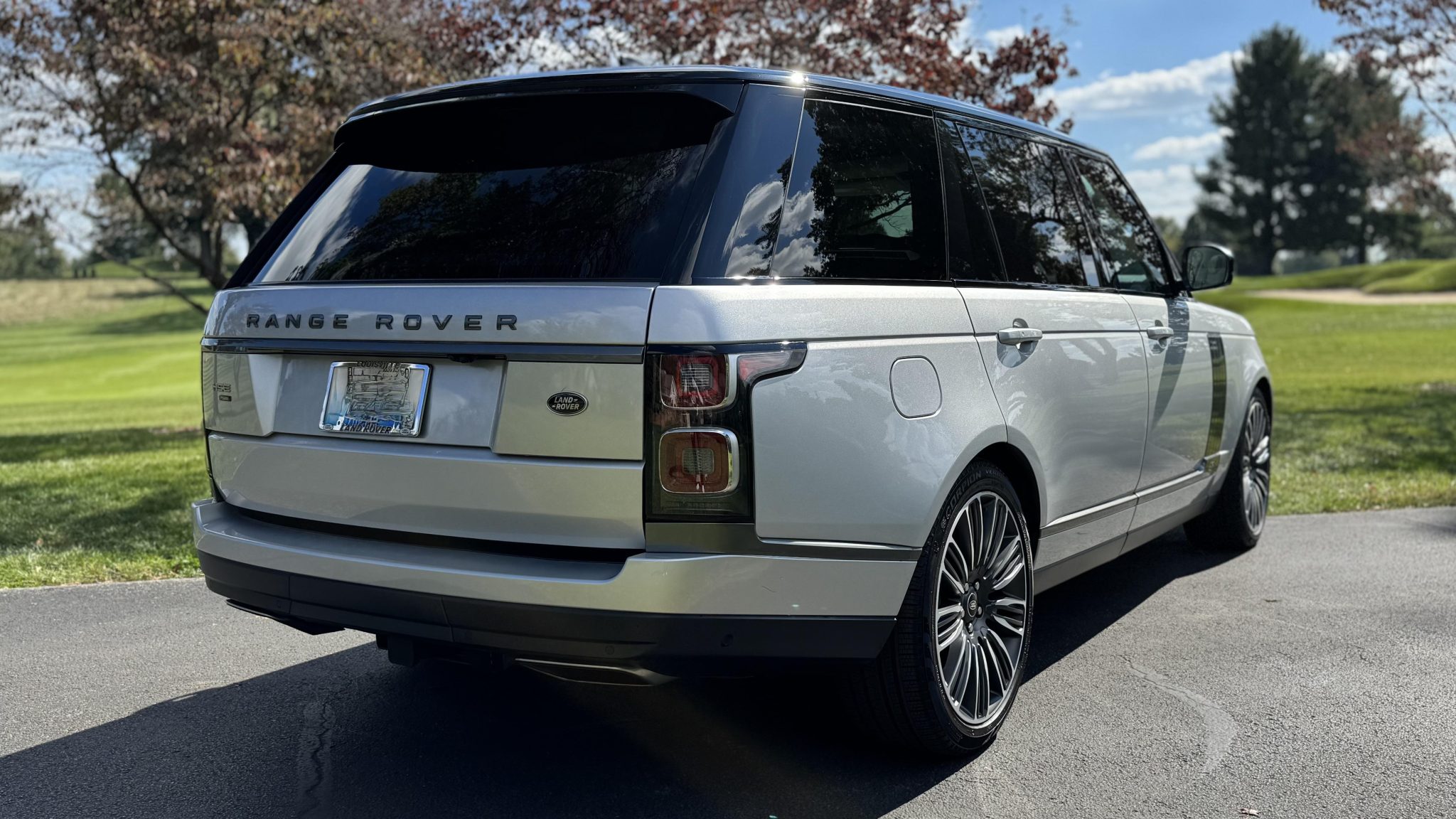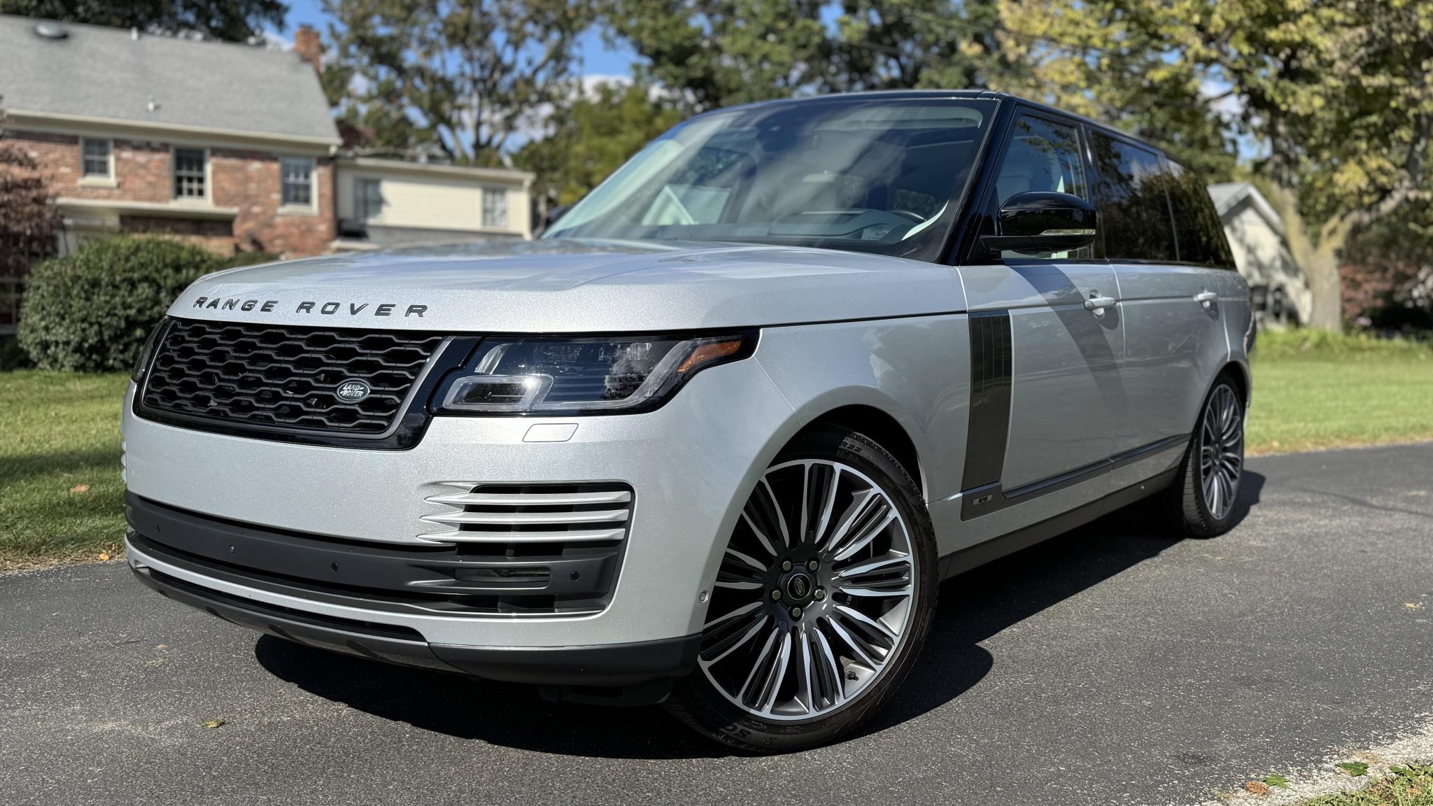 Optional 22″ diamond-turned Style 9012 wheels are mounted with 275/40 Pirelli Scorpion Verde tires, one of which was replaced in October 2023. Equipment includes an electronic air suspension with variable ride height as well as Terrain Response 2, Adaptive Dynamics stability control, Hill Descent Control (HDC), Electronic Traction Control (ETC), and silver-finish brake calipers over ventilated discs at each corner. There are curb marks on the right-front and right-rear wheels.