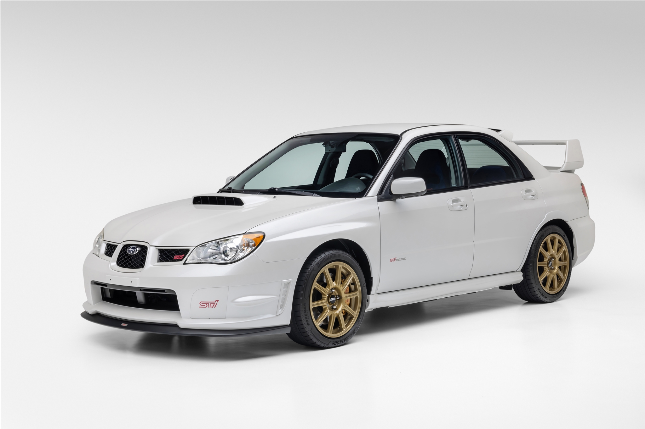 Gold-finished 17″ 10-spoke BBS alloy wheels wear Bridgestone Potenza Sport tires that were reportedly mounted in 2023. Stopping power is provided by four-wheel disc brakes with Brembo four-piston front and two-piston rear calipers. The seller notes StopTech brake rotors and braided lines have been installed.