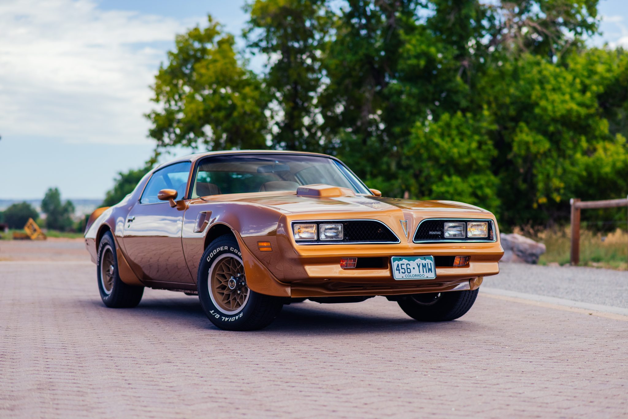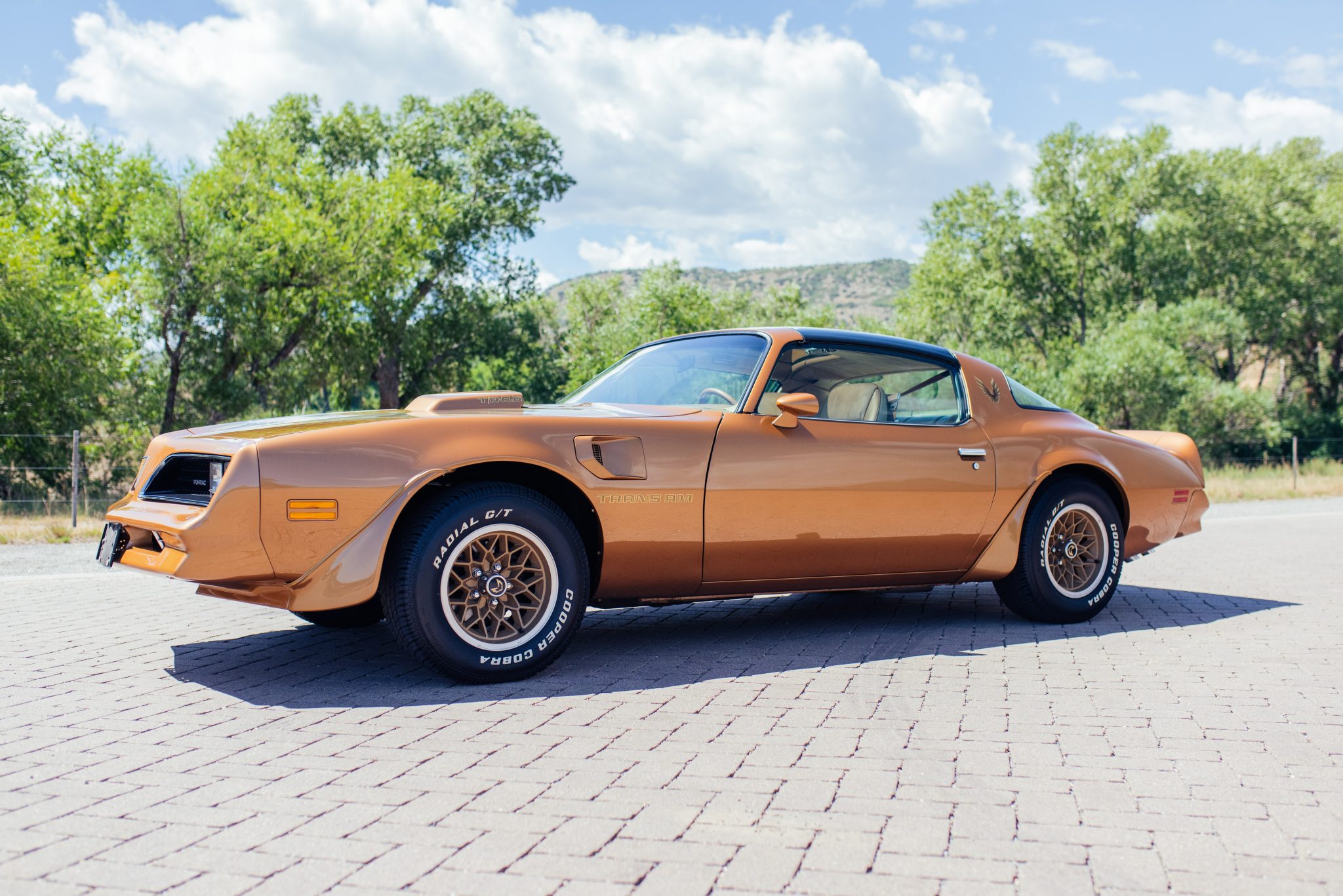 Snowflake 15″ wheels with gold-finished centers wear 255/60 Cooper Cobra Radial G/T tires. Stopping power is provided by disc brakes on all four corners, and the car was factory-equipped with the Special Handling Package. The seller reports that the front suspension was refurbished and fitted with urethane bushings and various suspension components were powder-coated.