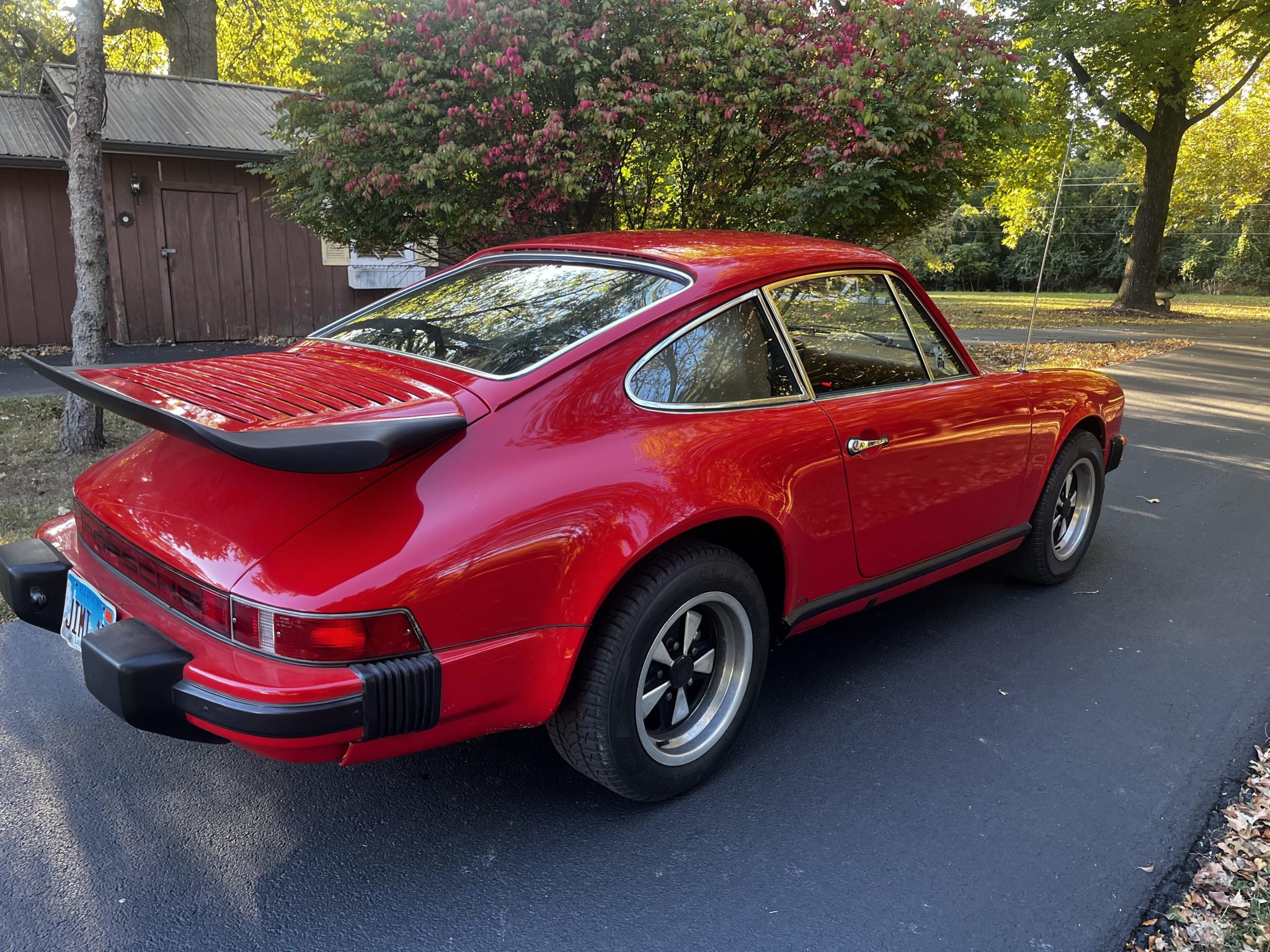 The 15″ Fuchs wheels are mounted with Fuzion HRI tires measuring 205/60. A space-saver spare is stored in the front trunk. The four-wheel disc brake system was serviced in 2024, including replacement of the rear pads, rotors, calipers, and lines.