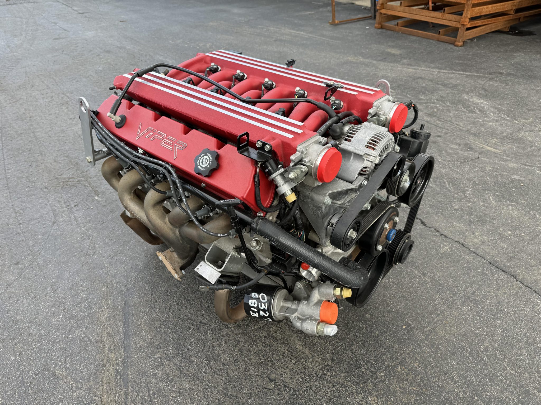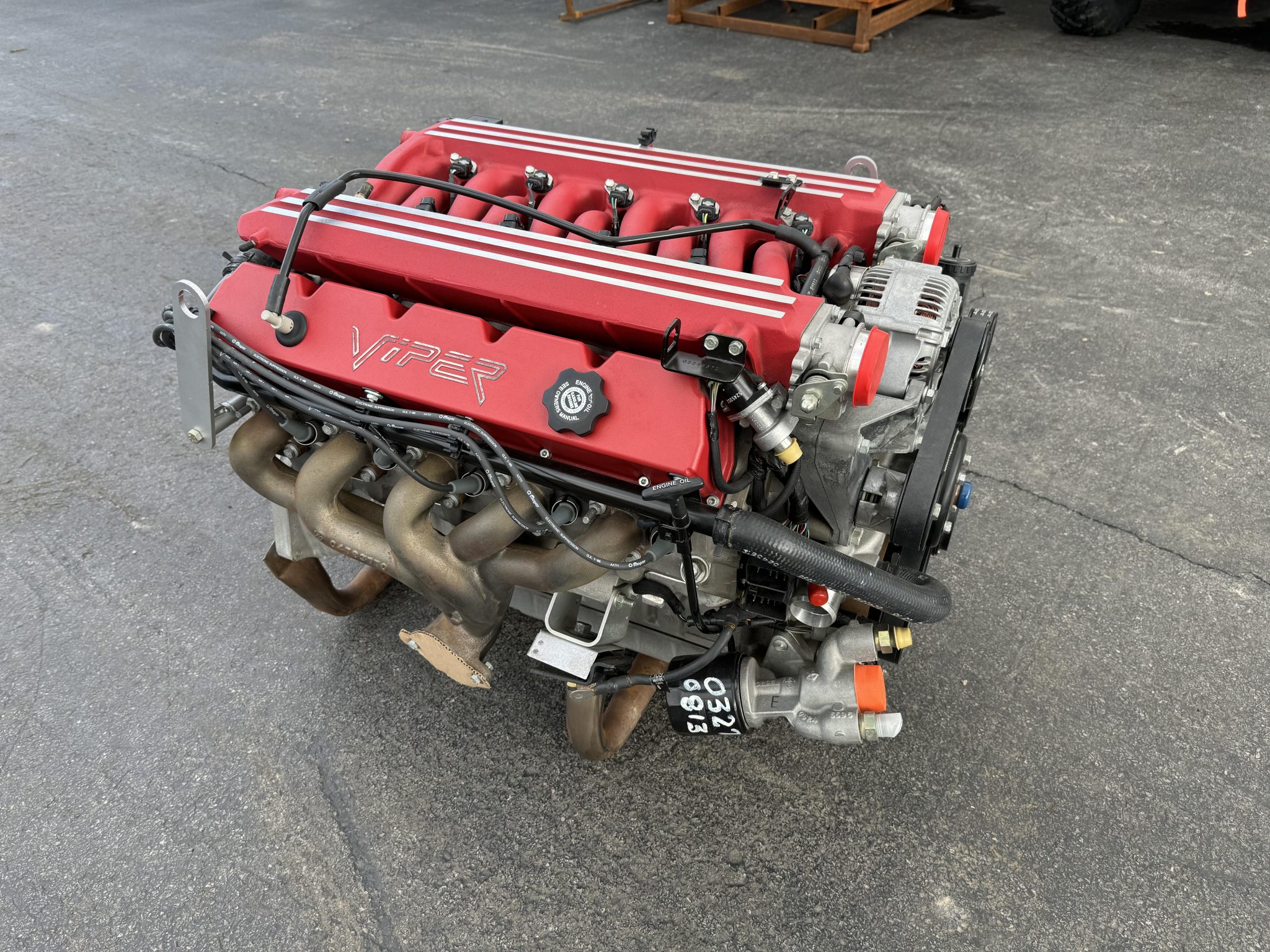 The intake manifold is finished in red with polished longitudinal stripes and features dual throttle bodies and ten individual runners.