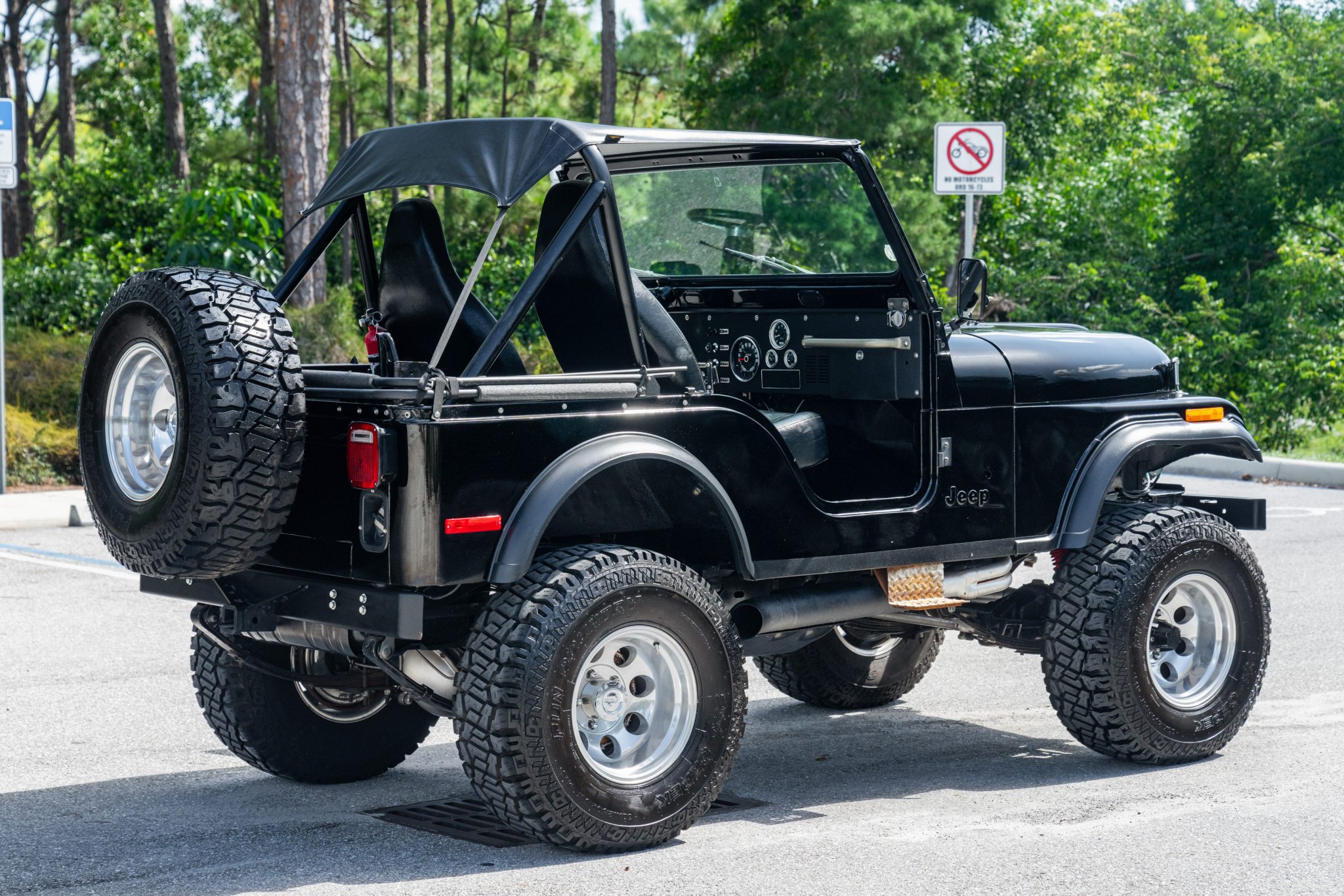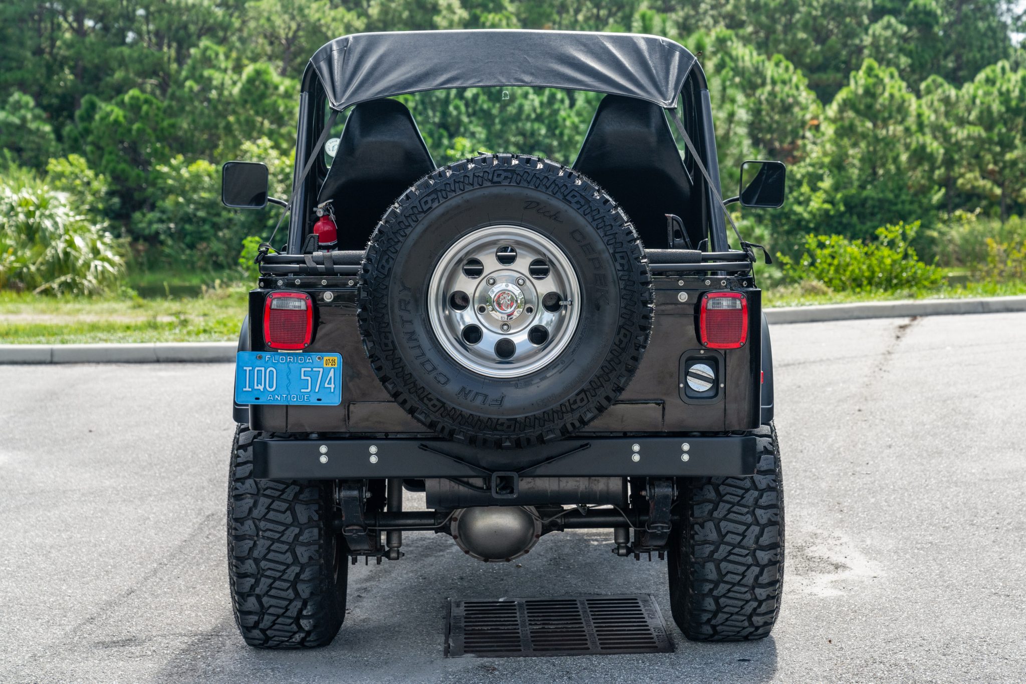 The 15″ Pro Comp wheels are mounted with 33×12.5″ Dick Cepek Fun Country tires. The truck is equipped with a 4″ Rough Country suspension lift, and stopping power is provided by front disc and rear drum brakes.