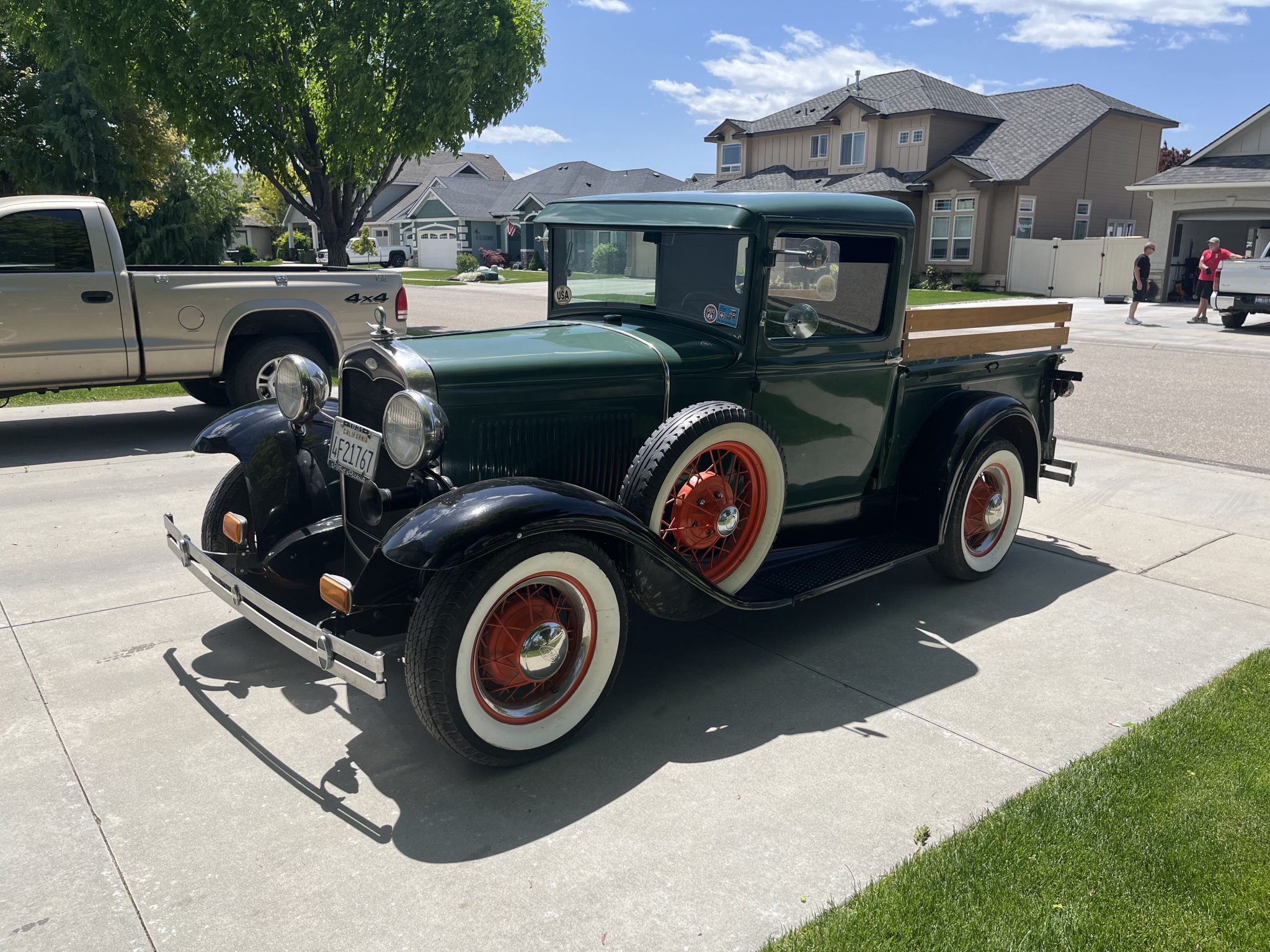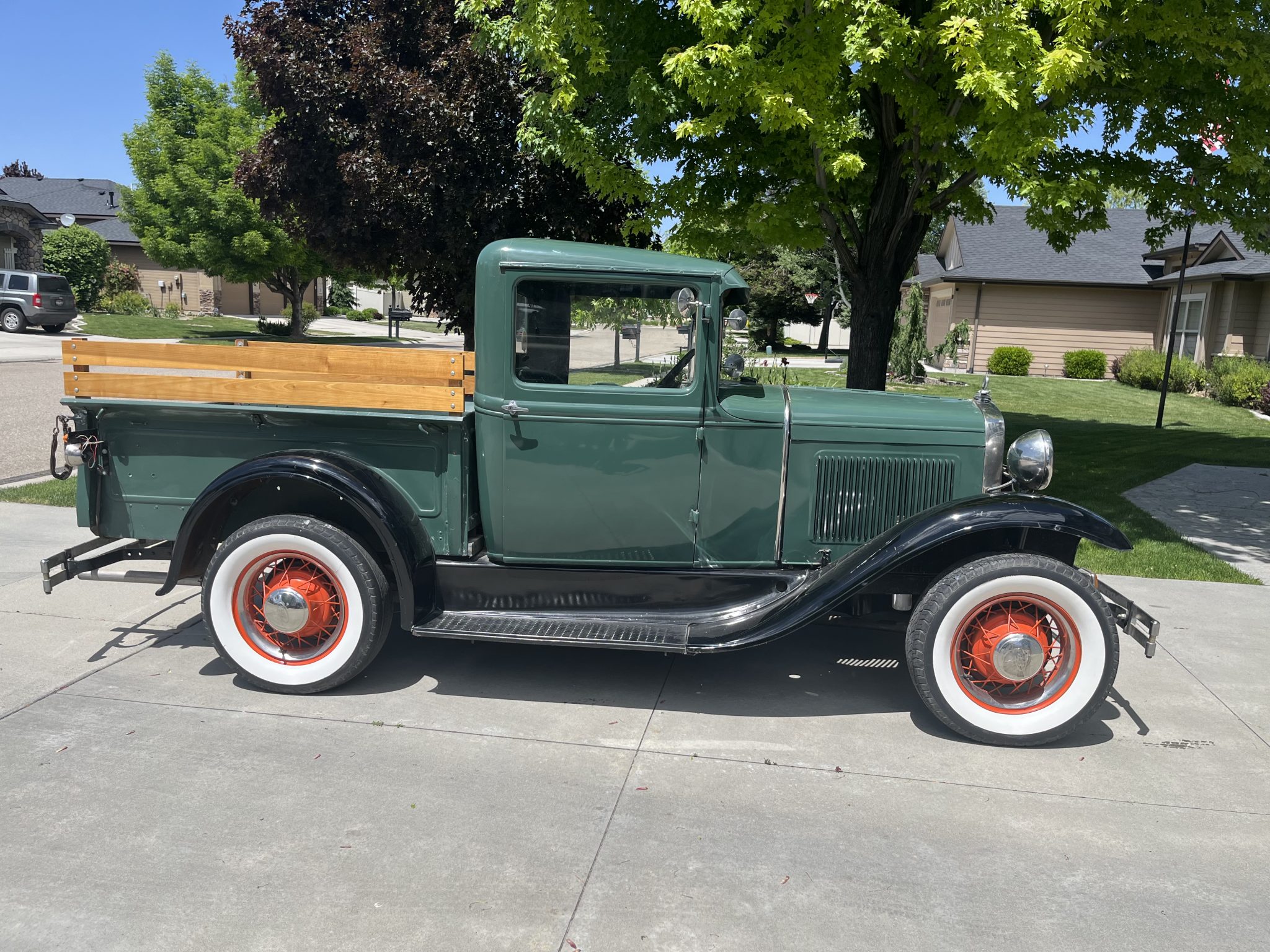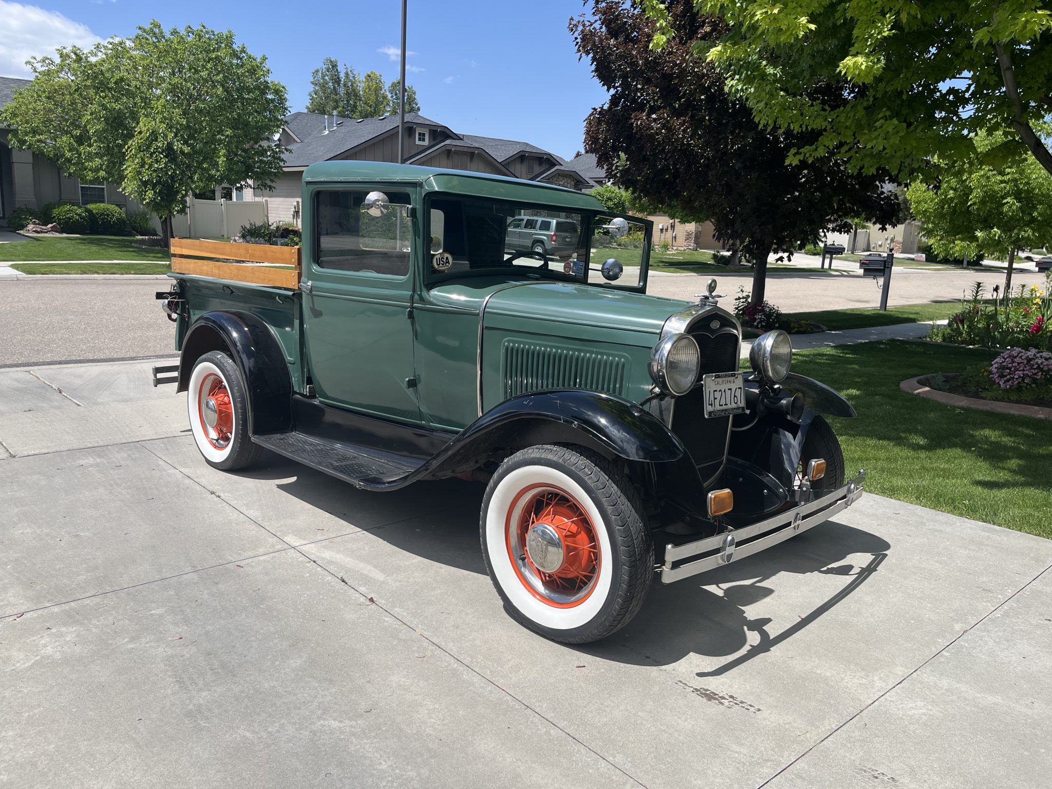Red-painted 16″ wire wheels wear chrome trim rings and hubcaps as well as wide-whitewall tires. A spare wheel is mounted in the left-front fender. Braking is provided by four-wheel drums.