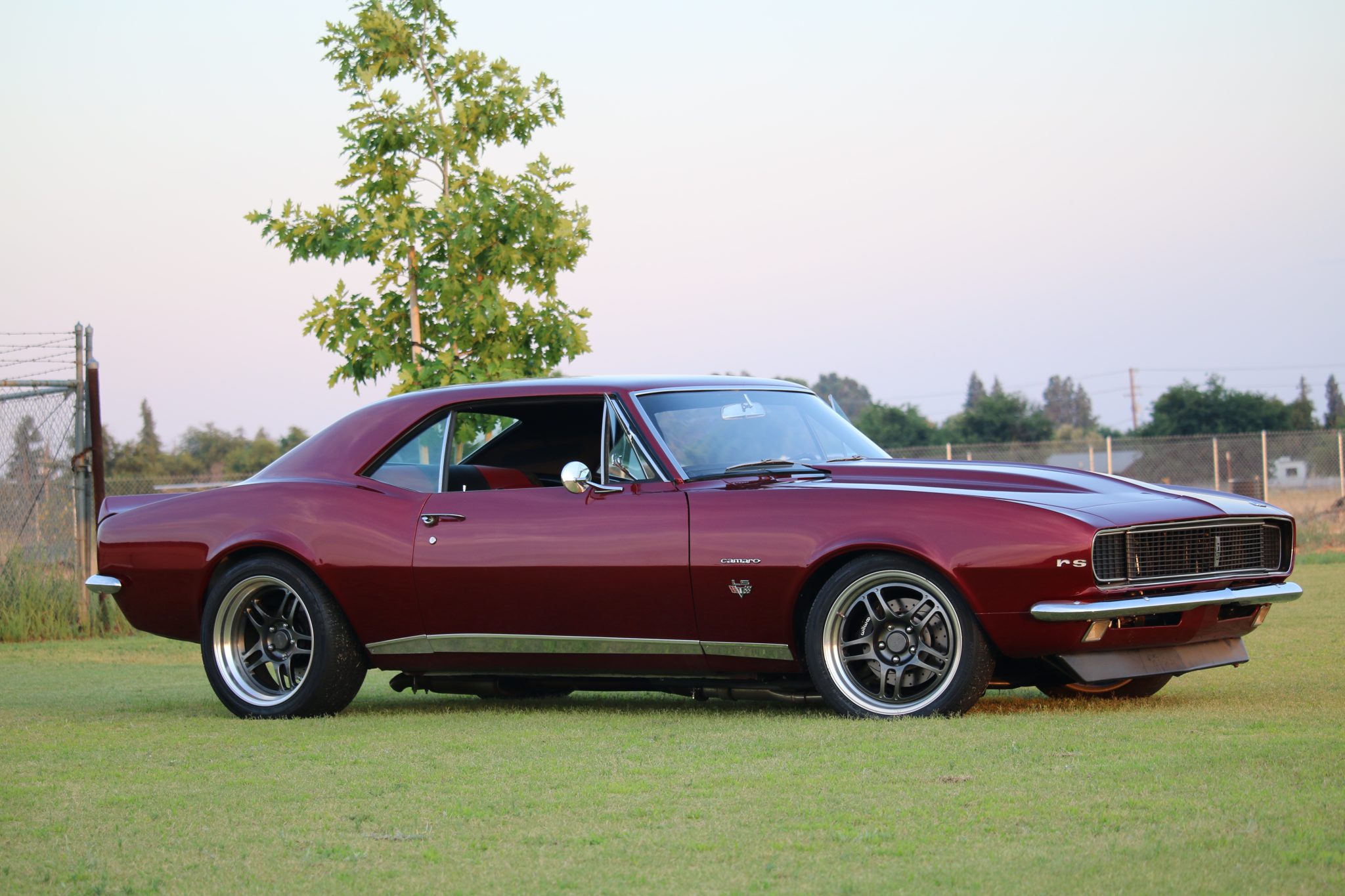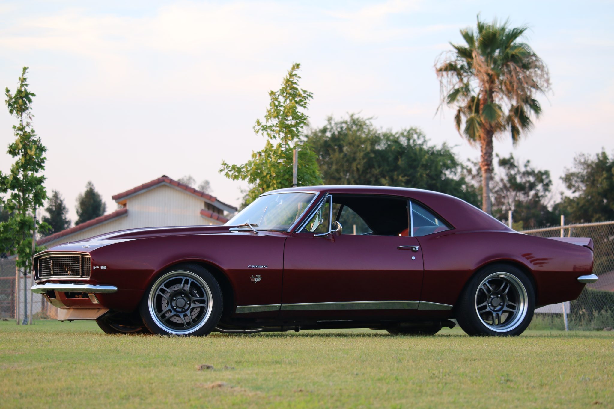 Fikse Profil 5S 18″ wheels feature dark gray centers and polished lips, and they are mounted with staggered-width Nexen N5000 tires. The car rides on a lowered suspension with Viking double-adjustable shock mounts, according to the seller. Braking is provided by four-wheel discs with Wilwood calipers. The tires rub when turning sharply.