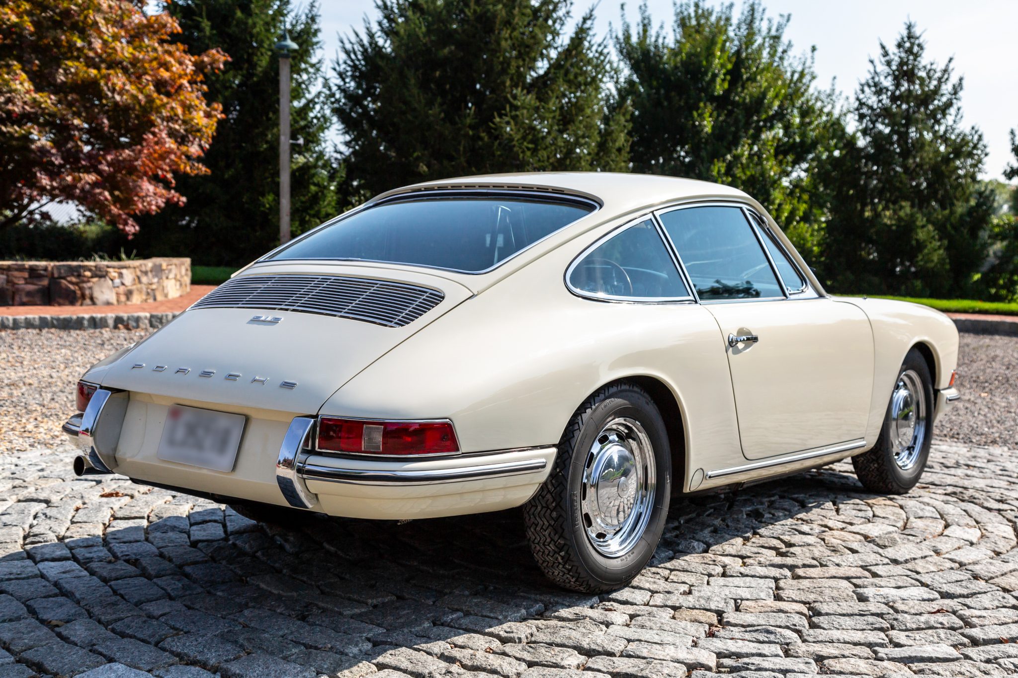 Chrome-plated 15″ vented steel wheels with matching Porsche-crest hubcaps wear 165-section Pirelli Cinturato CN36 tires that have 2021 production-date codes. The car is equipped with independent front and rear suspension, with work in 2022 consisting of rebuilding the shocks as well as replacing the outer spring-plate bushings at the rear. Braking is provided by four-wheel discs.