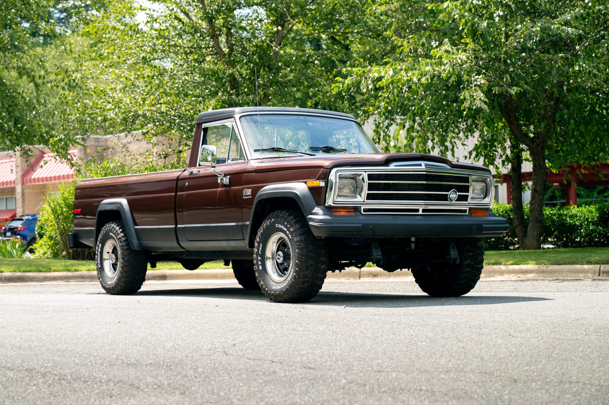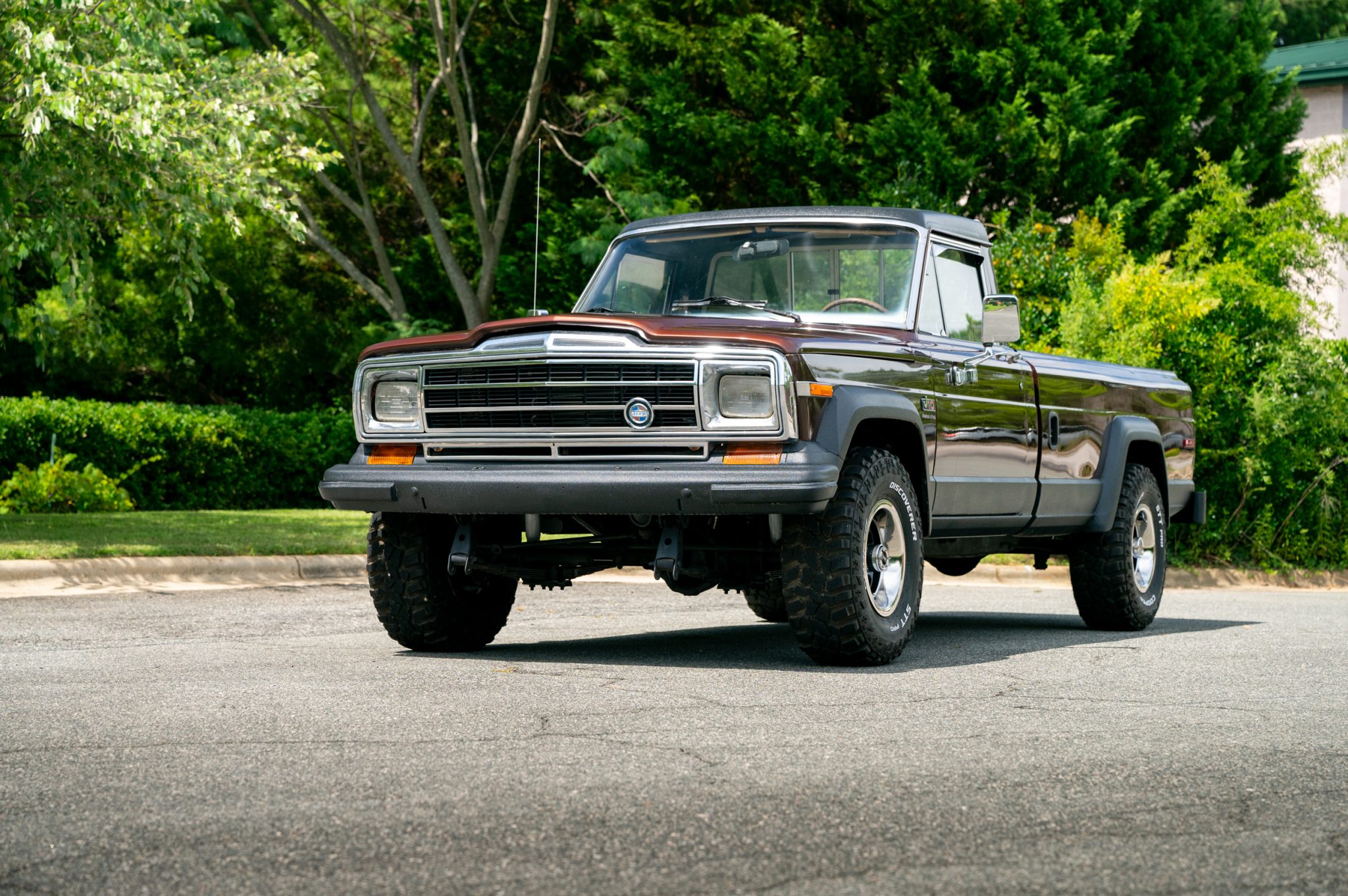 Black-finished 15″ wheels wearing polished beauty rings are mounted with 32×11.5″ Cooper Discoverer STT Pro tires. The suspension was reportedly overhauled during the refurbishment and features Rancho shock absorbers, and manually locking hubs are mounted up front. Braking is handled by power-assisted front discs and rear drums.