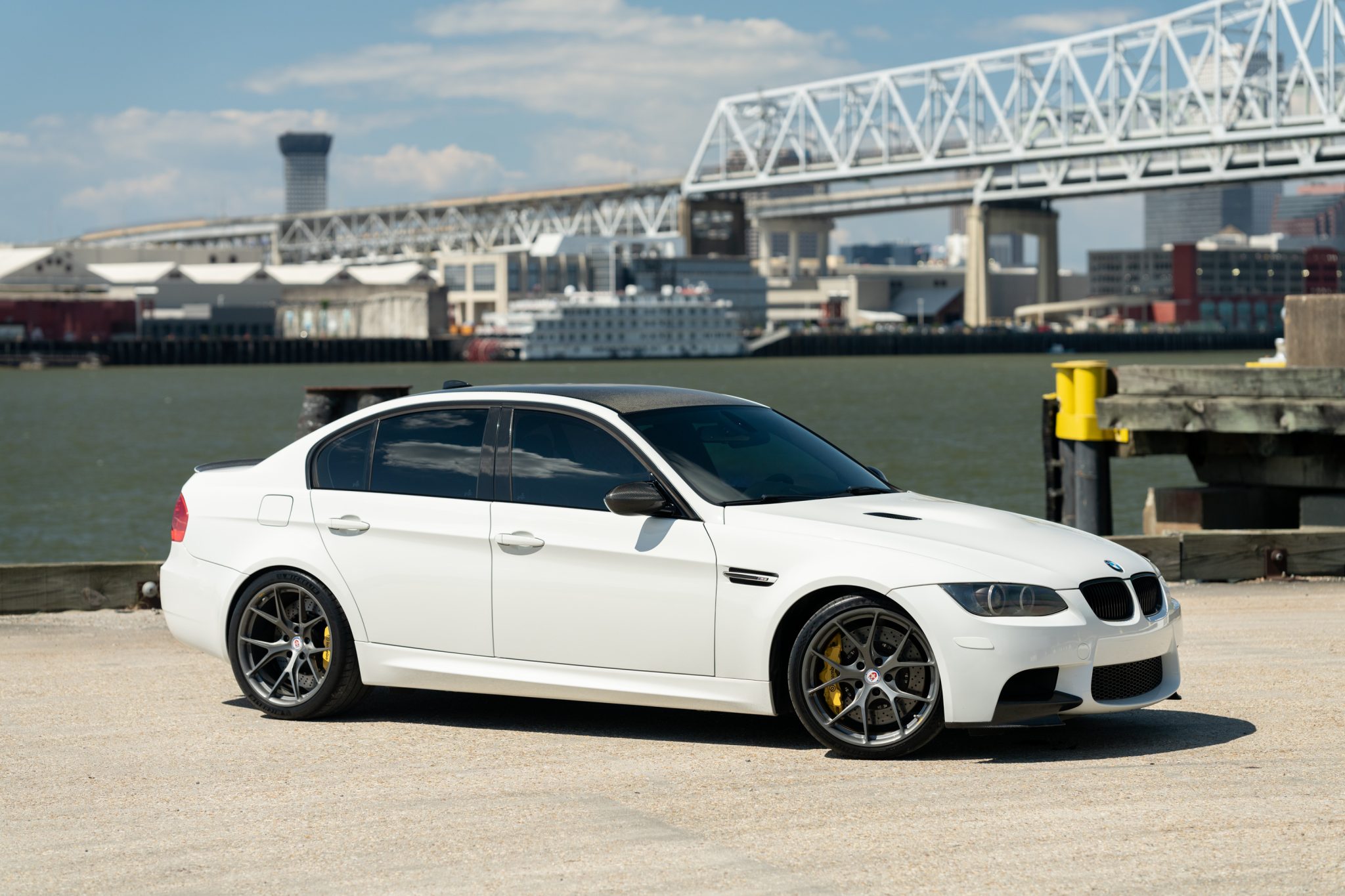 The 19″ HRE P101 wheels are mounted with Michelin Pilot Sport 4S tires measuring 265/30 up front and 295/30 out back. Brembo front and rear brakes have been installed. Competition Package equipment includes a lowered ride height compared to the standard M3 as well as retuned Electronic Damping Control (EDC) and Dynamic Stability Control (DSC). The brake pad wear sensors were replaced in 2024.