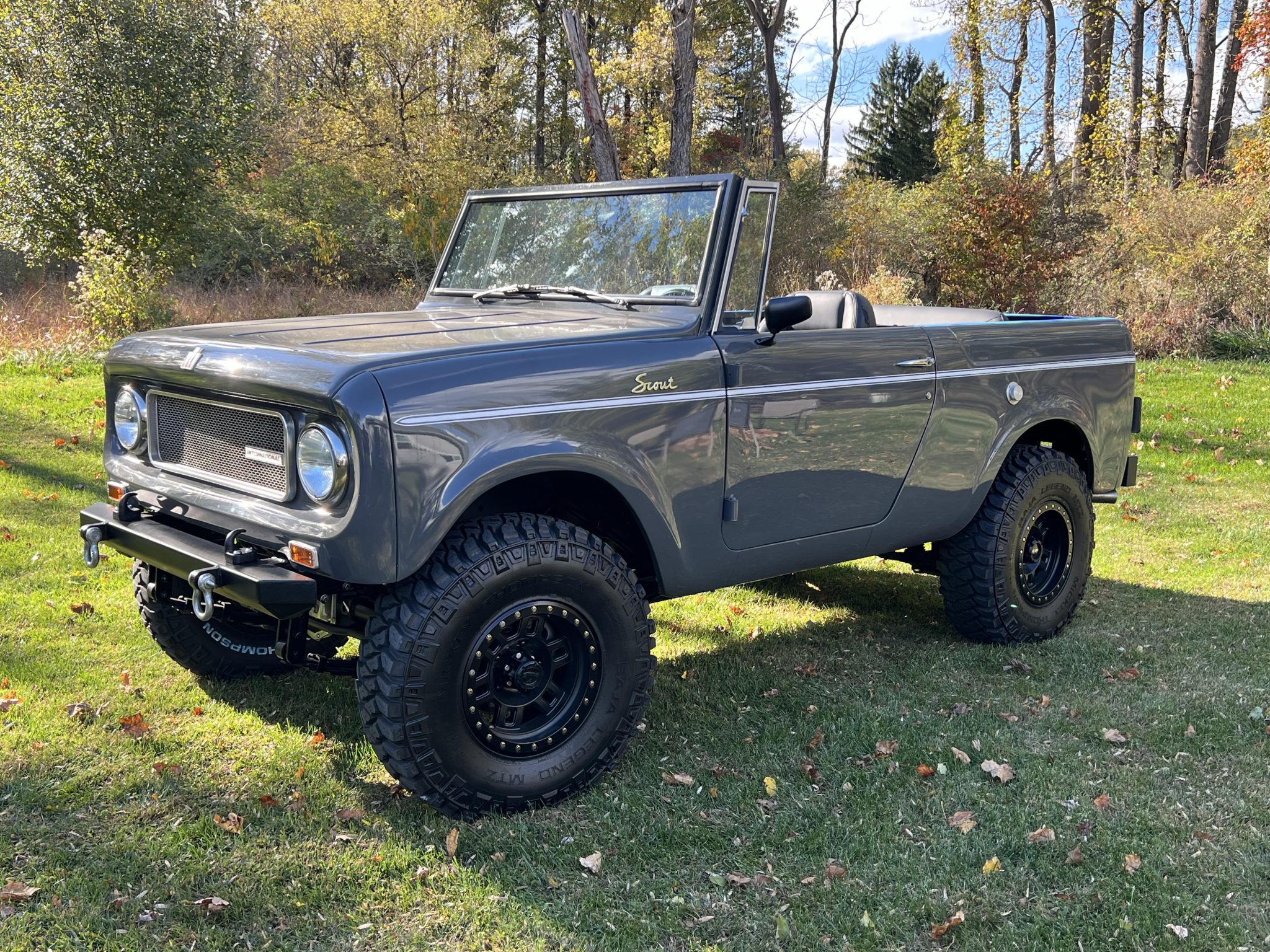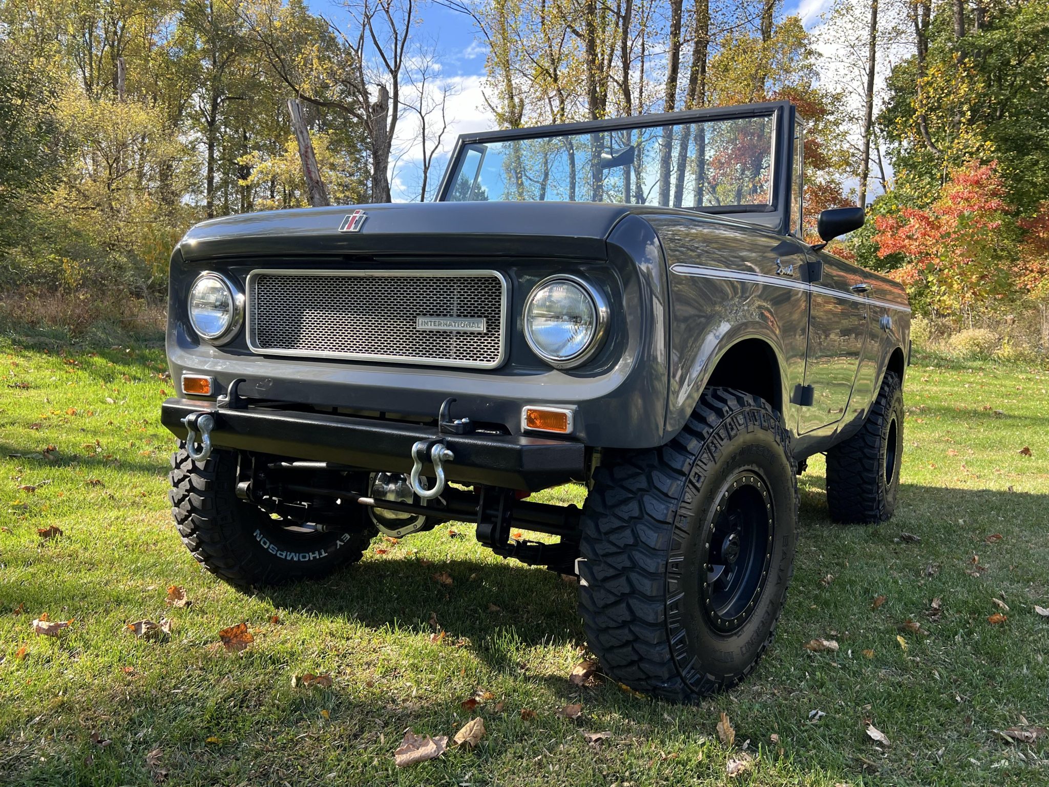 Beadlock-style Vision Wheel 15″ wheels are wrapped in 33×10.5″ Mickey Thompson Baja Legend MTZ tires. Braking is handled by power-assisted front discs and rear drums. The truck is fitted with a 2.5 ” suspension lift, Bilstein shocks, manually locking front hubs, and power steering.