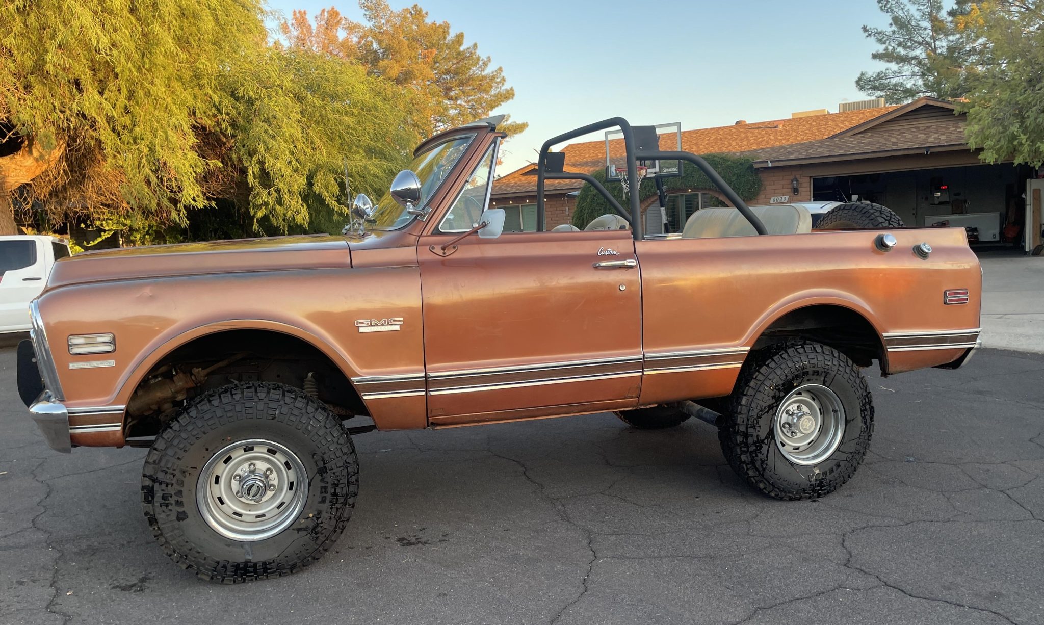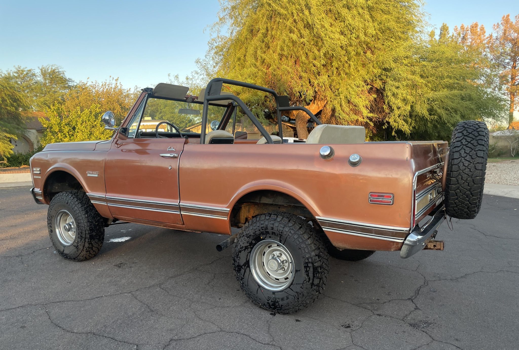 The 15″ Rally wheels are mounted with 33×9.5″ Kenda Klever R/T tires. The truck is equipped with power steering, dual Rough Country steering stabilizers, and a 2″ suspension lift.