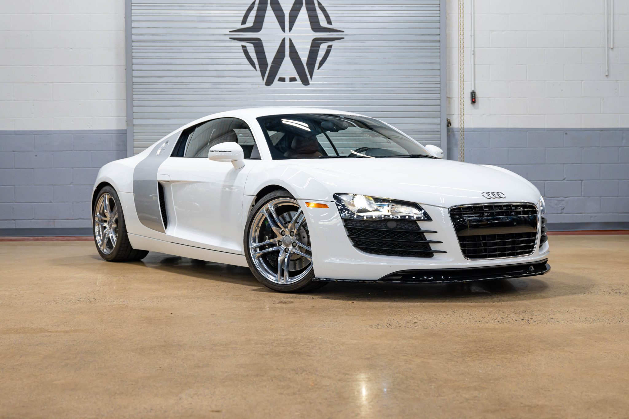 Polished 19″ double-spoke alloy wheels are mounted with Michelin Pilot Sport tires. Audi Magnetic Ride magnetorheological dampers were standard equipment on the R8. Replacement front dampers were fitted in September 2020, while the rear dampers were changed in October 2024. Braking is handled by four-wheel ventilated and cross-drilled discs.
