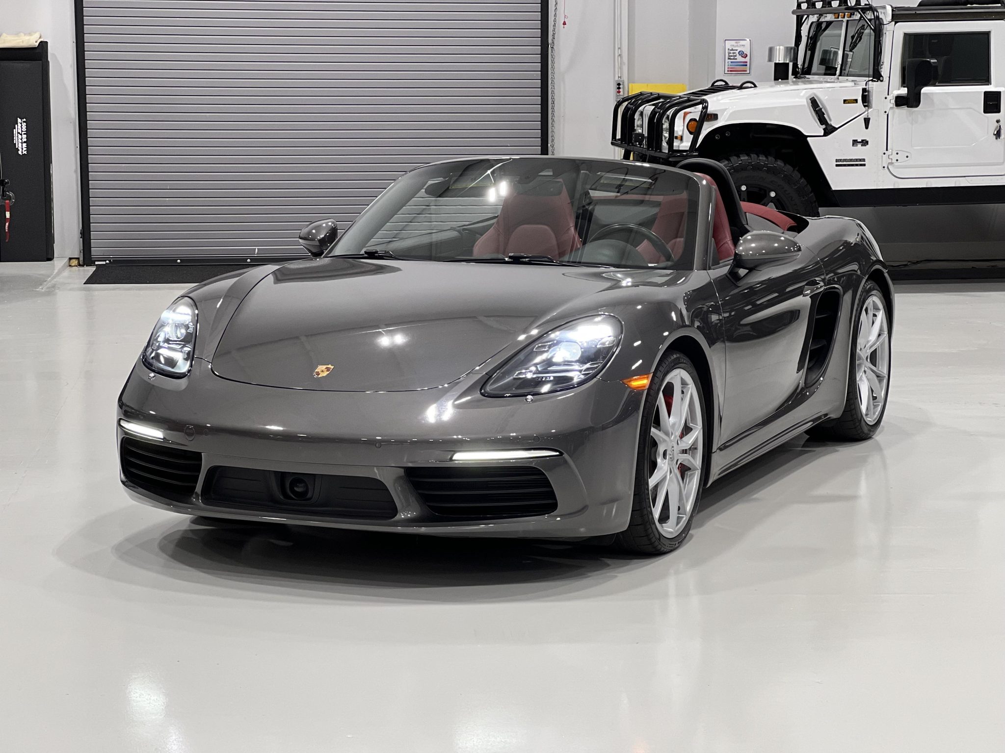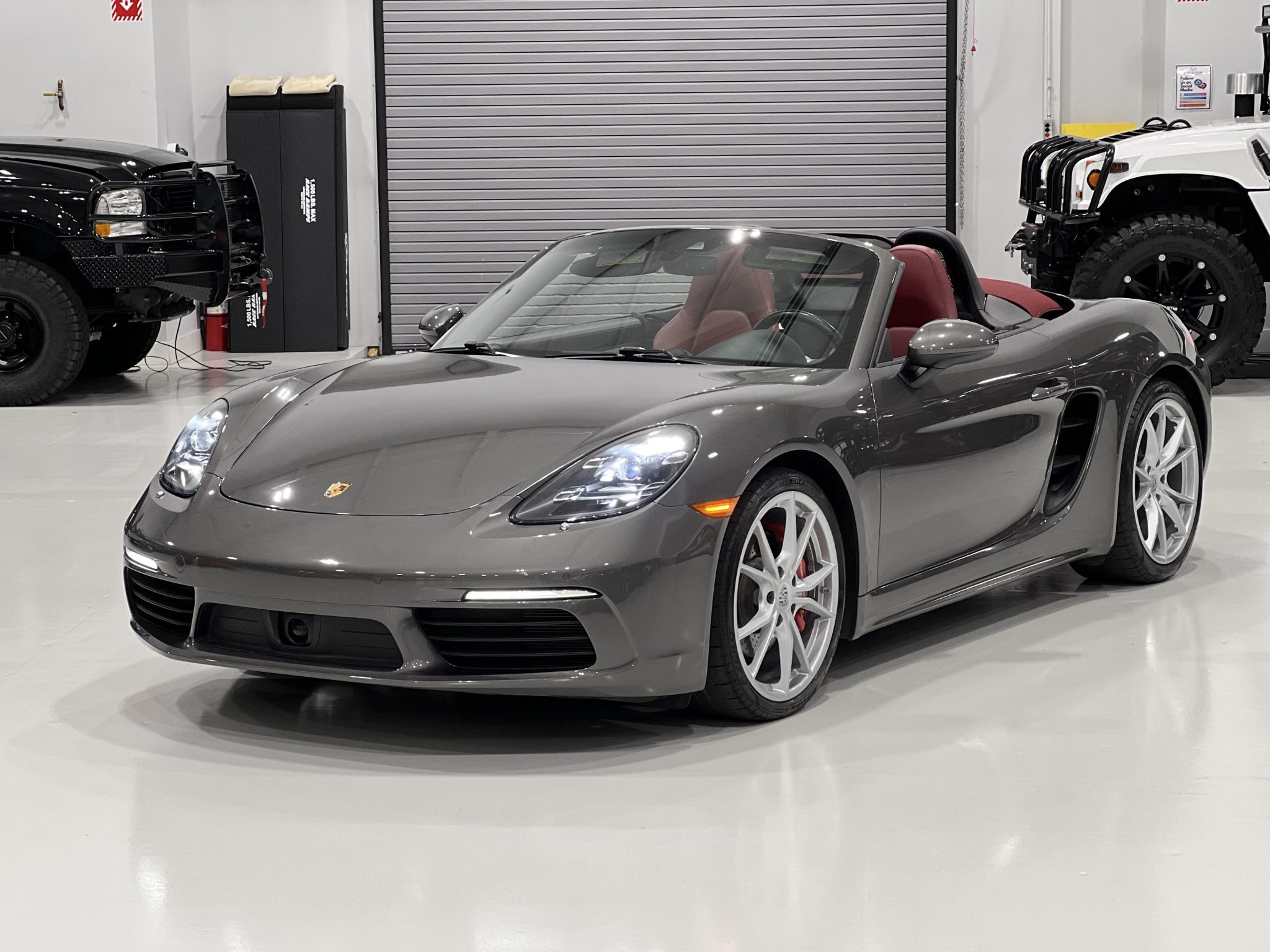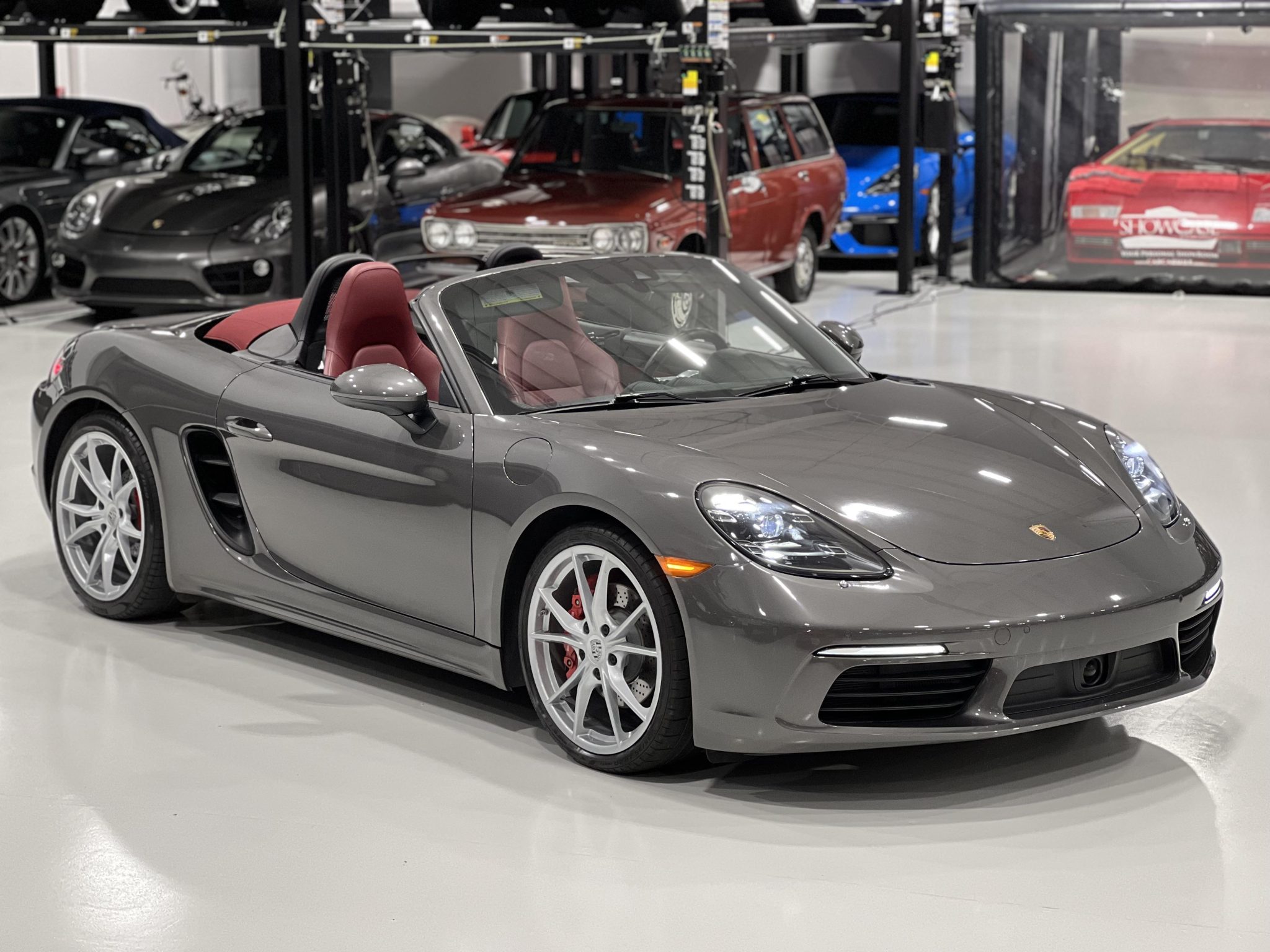 The 20″ Carrera S wheels are mounted with 235/35 front and 265/35 rear Pirelli P Zero tires. Red-finished brake calipers are installed over cross-drilled and ventilated rotors, and the car was also optioned with speed-sensitive Power Steering Plus.