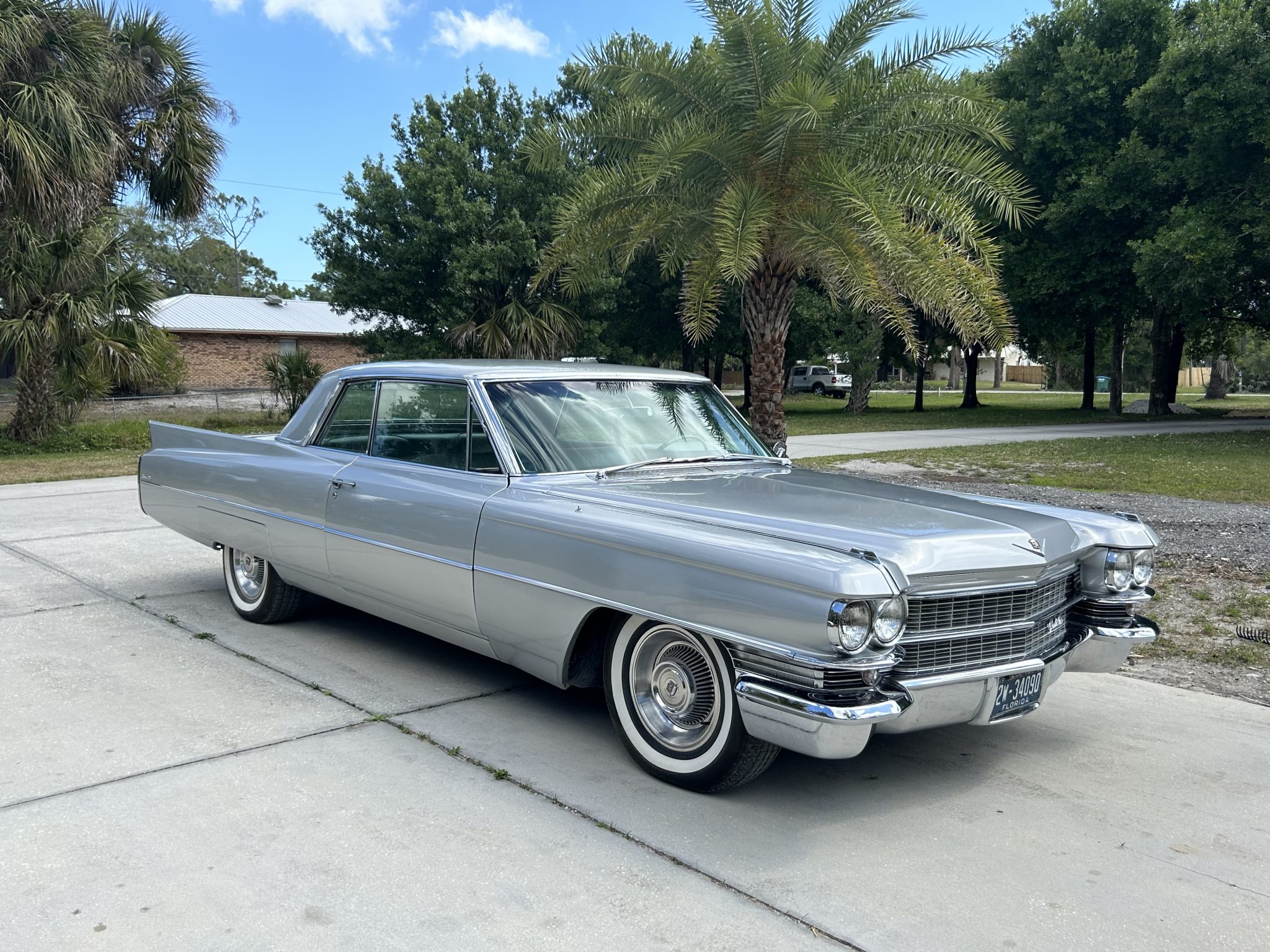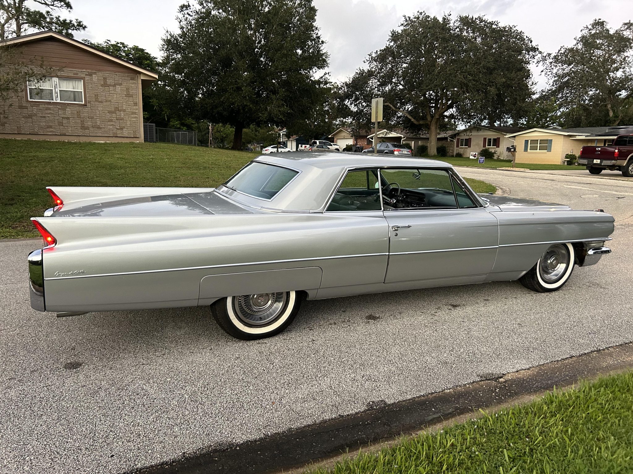 Steel 15″ wheels wear covers and are mounted with Coker whitewall tires. Power steering was standard, and braking is provided by power-assisted drums.