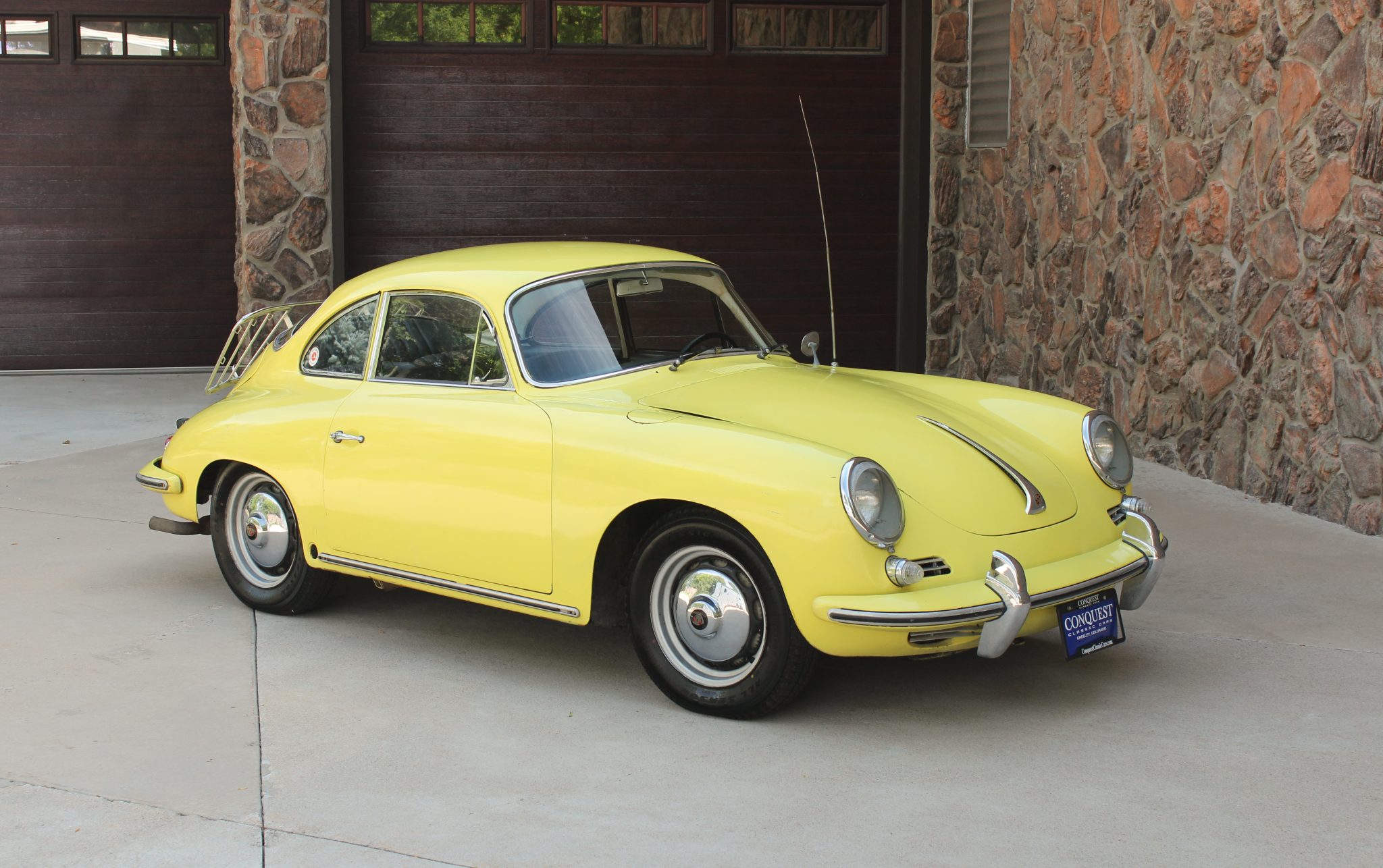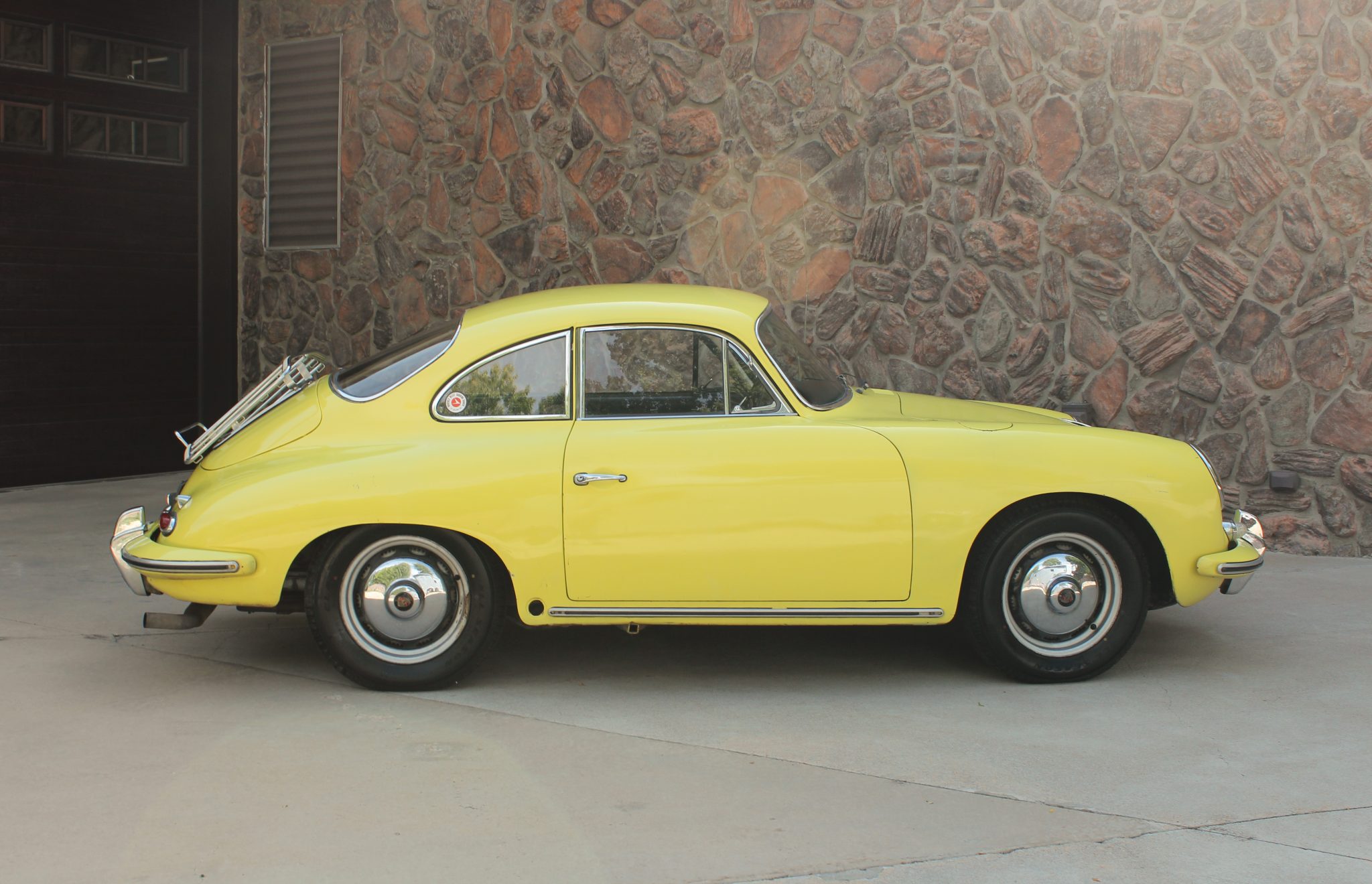 The 15″ vented steel wheels wear Deluxe hubcaps and are mounted with 165/80 Classic tires. The car was factory equipped with drum brakes at each corner. ZF Sachs shocks are fitted. Three of the four wheels have been finished in black.