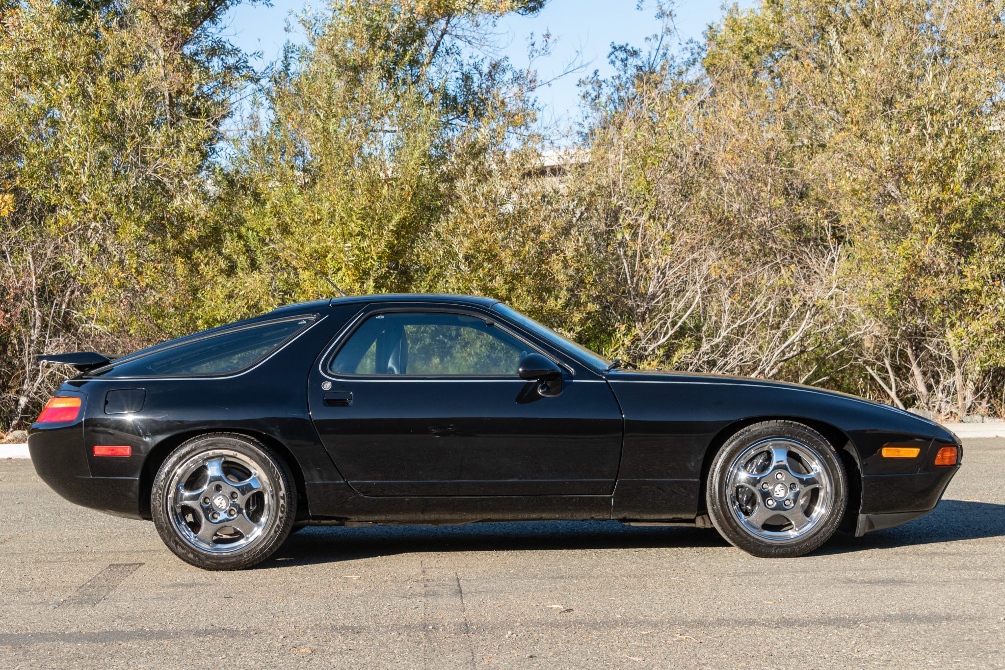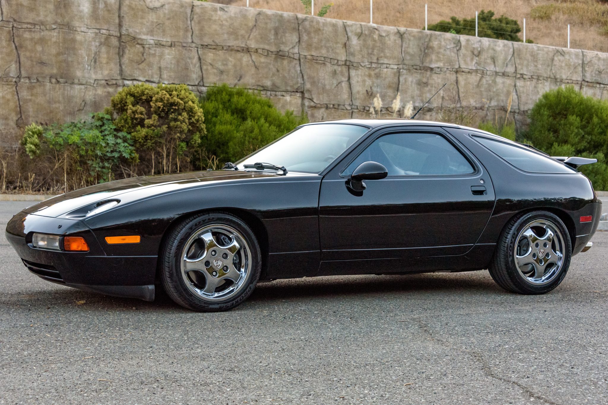 Chrome-finished 17″ Cup 1 wheels are mounted with 225/45 front and 255/40 rear Toyo Proxes 4 Plus tires, which the seller notes should be replaced due to age. The car is equipped with force-sensitive power steering and vented disc brakes at each corner. The steering rack bushings were replaced in November 2024. The chrome finish is failing on one of the wheels.