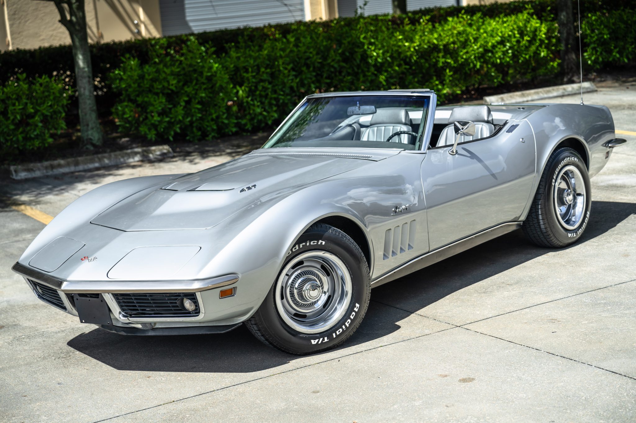 The 15″ Rally wheels wear chrome trim rings and center caps and are mounted with BFGoodrich Radial T/A tires. Braking is handled by four-wheel discs, and the calipers, lines, and pads were replaced in 2021. The power steering cylinder and control valve were replaced in 2024.