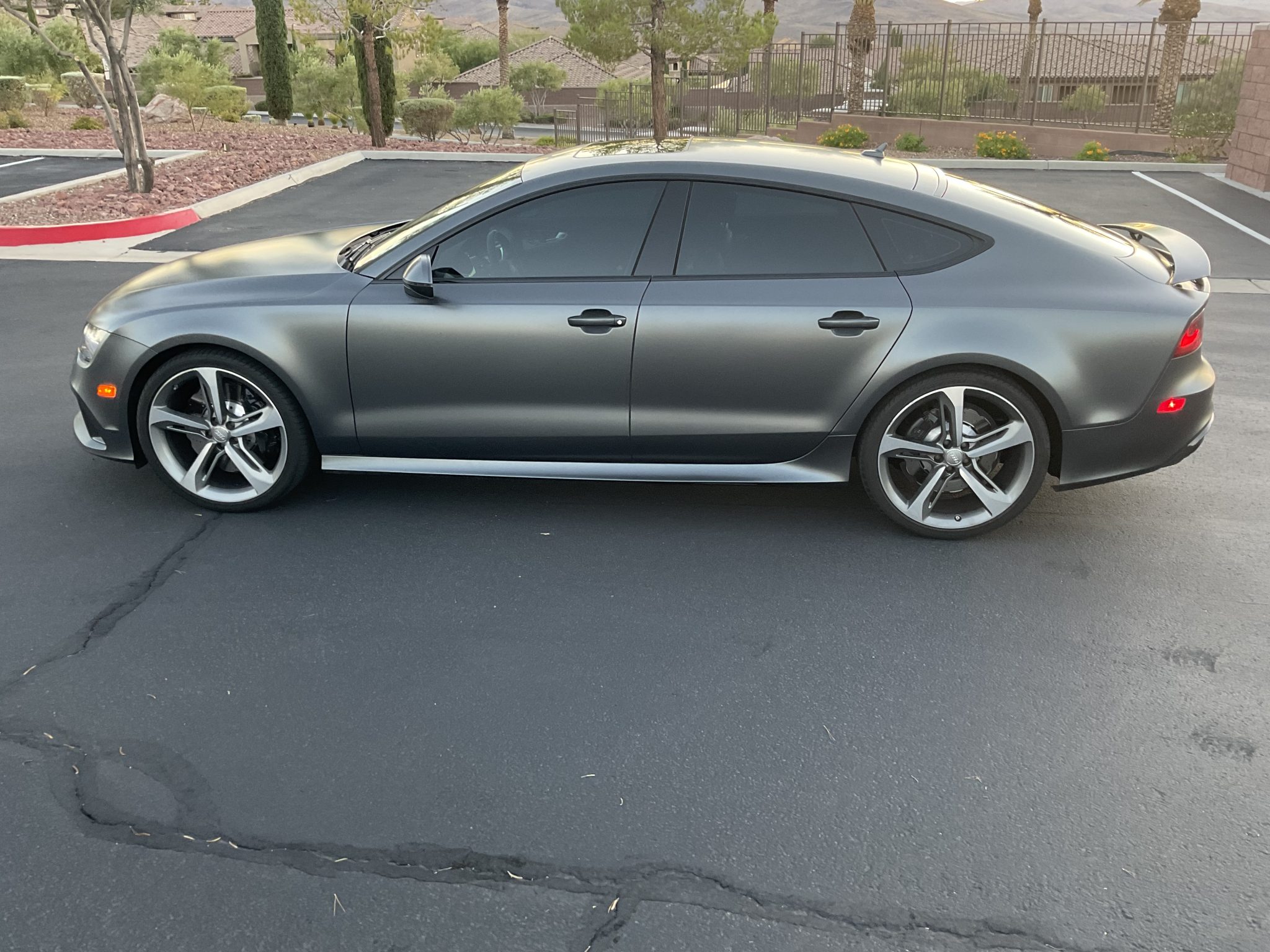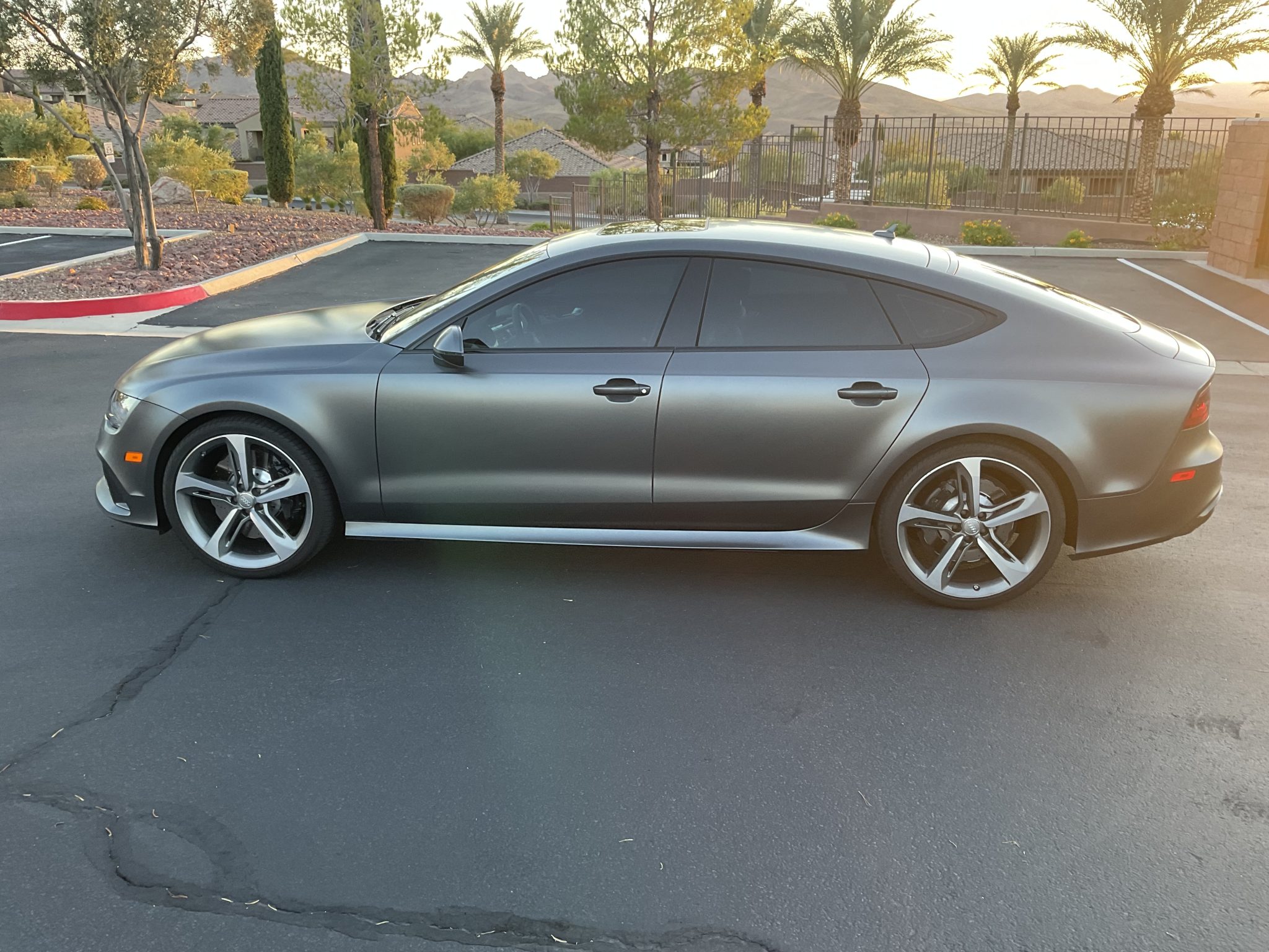 Factory 21″ blade-design wheels are mounted with 275/30 Pirelli P Zero tires. The car rides on an adaptive air suspension with RS-specific tuning, and stopping power is provided by four-wheel disc brakes with slotted wave-design rotors at each corner. The front brake rotors and pads were replaced in 2023.