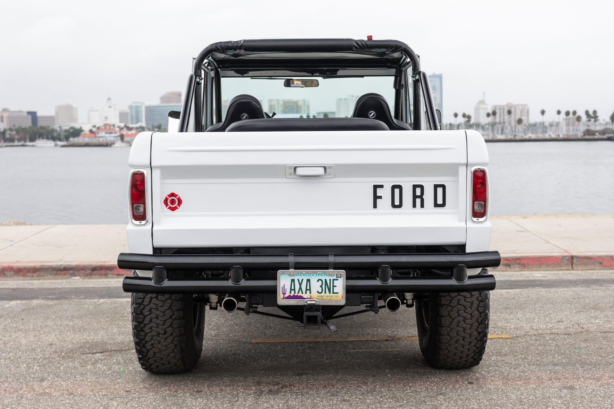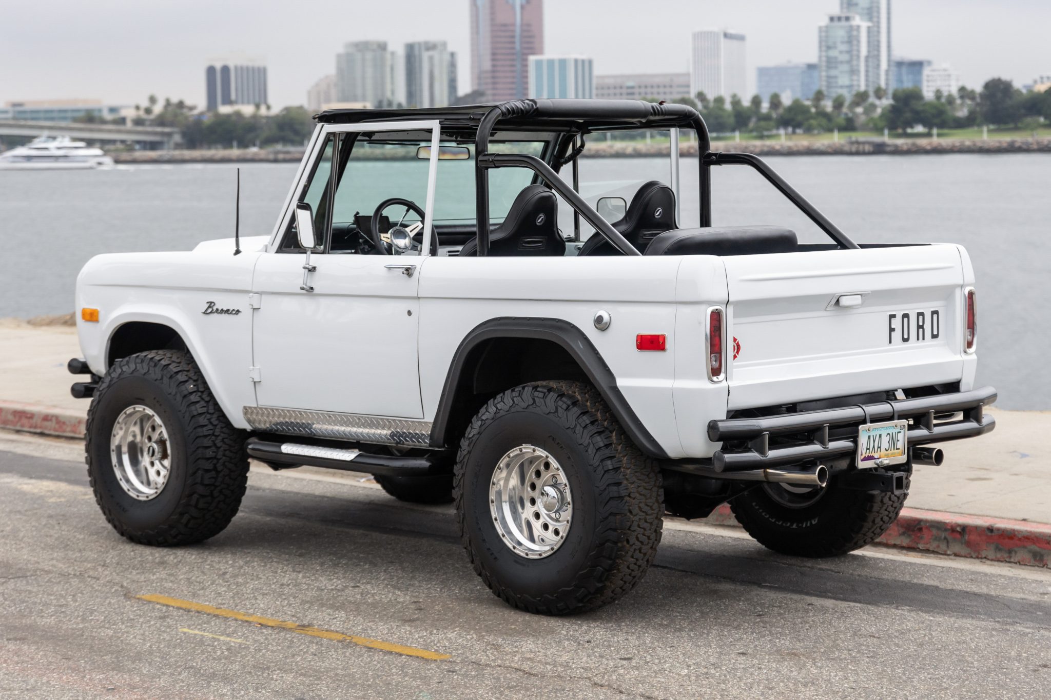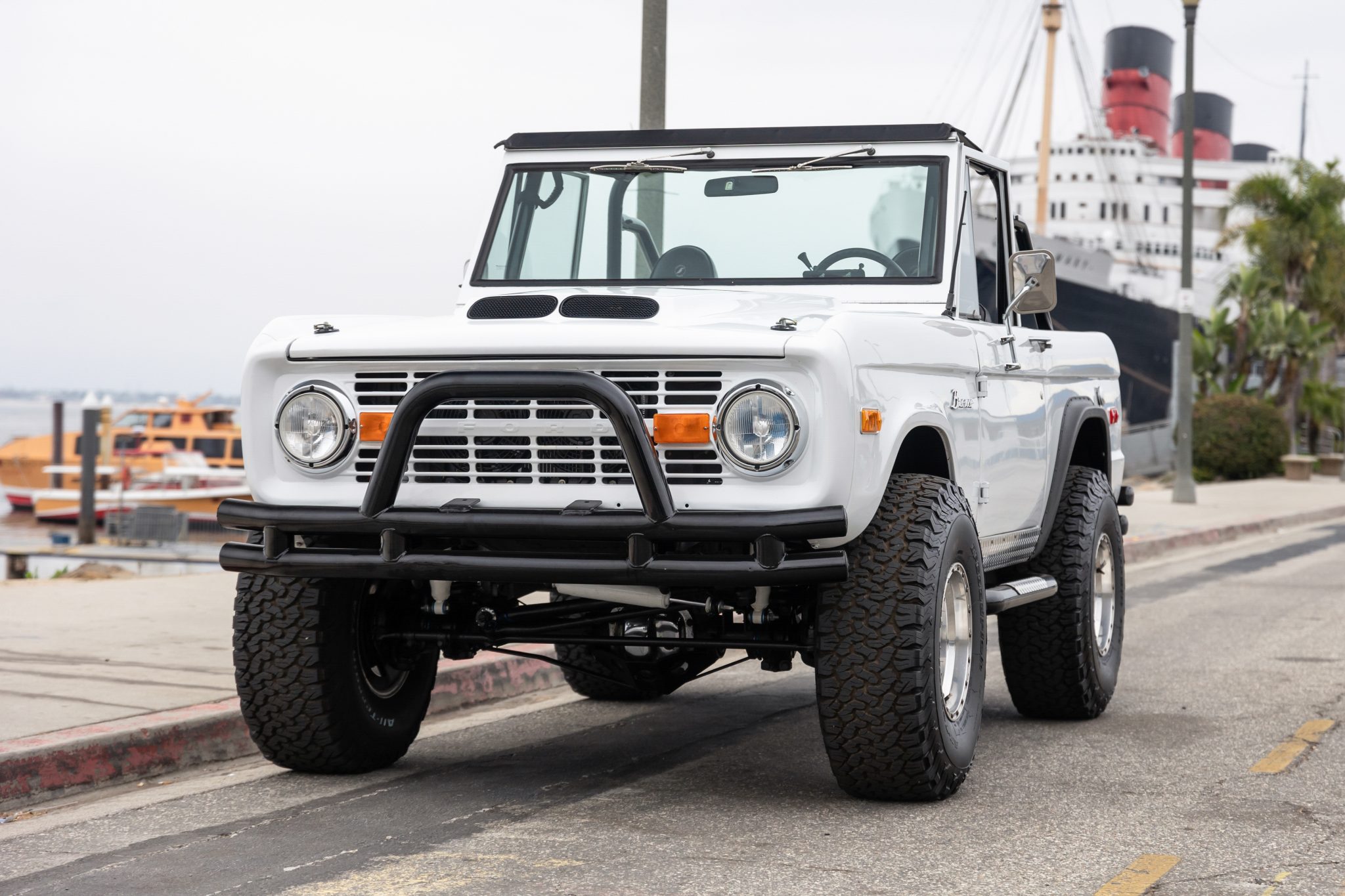 Eagle Alloys 15″ beadlock-style wheels are wrapped in 35×12.5″ BFGoodrich All-Terrain T/A KO2 tires. The truck is equipped with Warn manually locking front hubs in addition to front disc brakes and a rear disc brake conversion kit with an electronic parking brake. The suspension has been lifted, and it is equipped with James Duff Inc. shock absorbers.