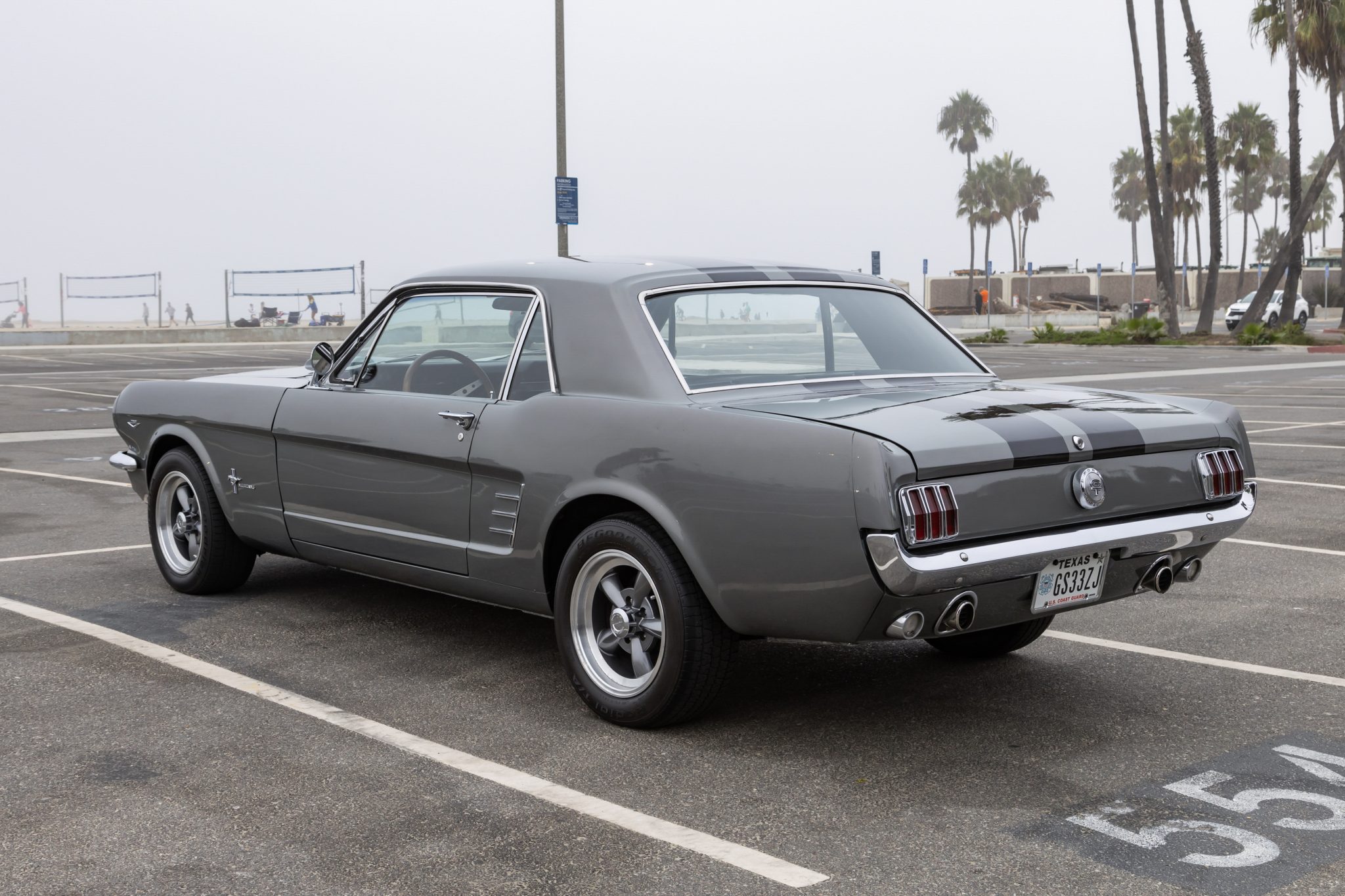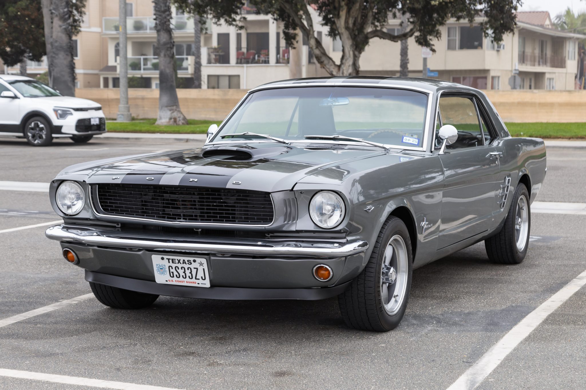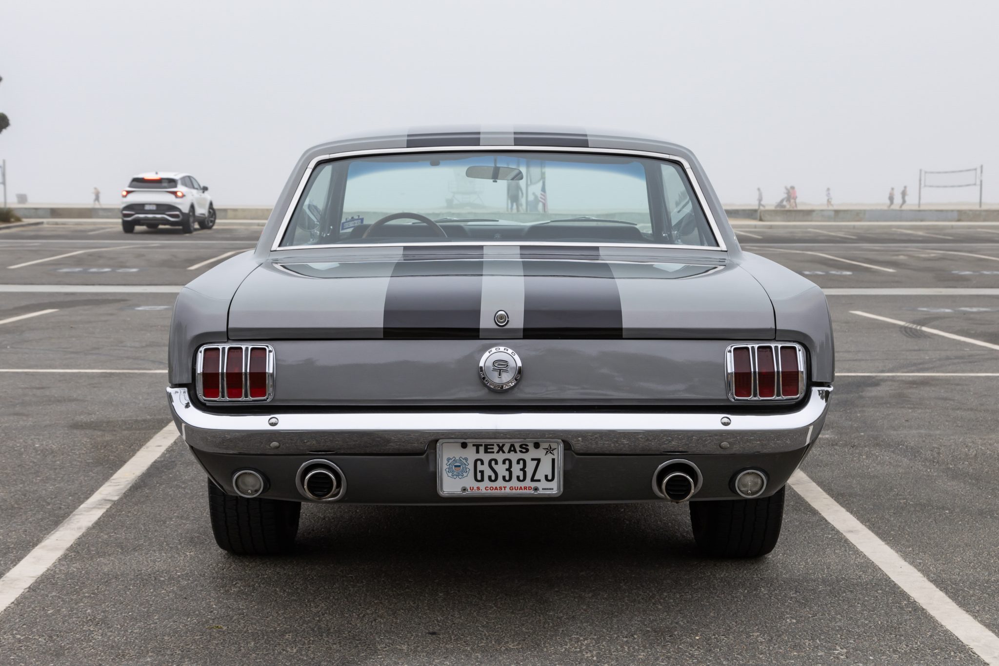 Vision American Muscle Legend Series 15” wheels are mounted with 205/60 BFGoodrich Radial T/A tires. The car is equipped with power-assisted steering and has been fitted with aftermarket leaf springs, an Eibach front sway bar, and Wildwood front brake calipers.