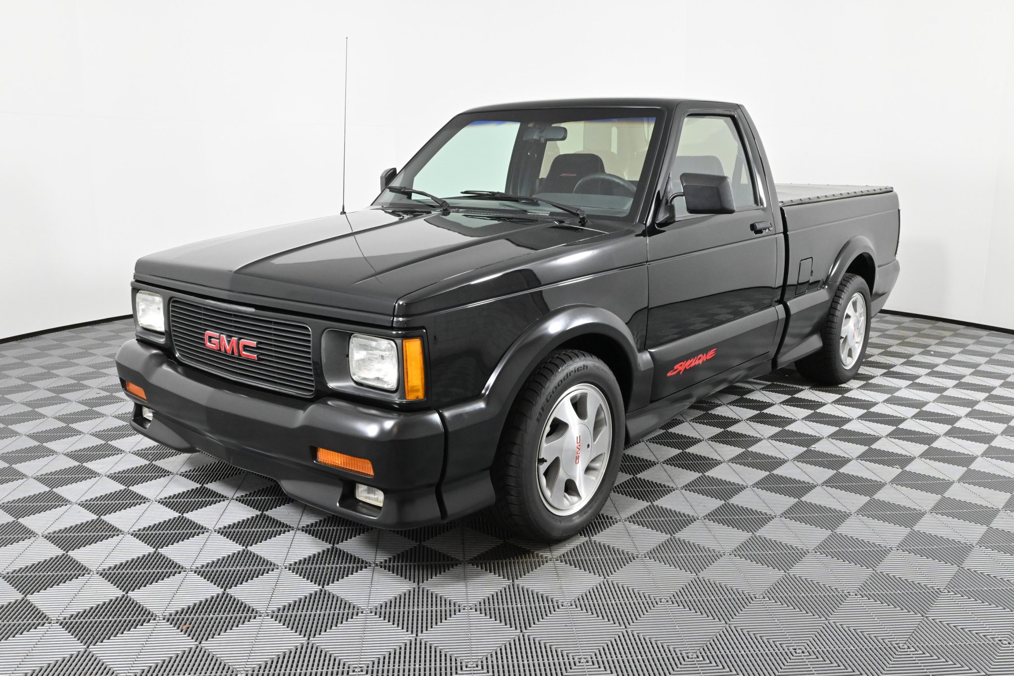 Turbine-style 16″ aluminum wheels wear GMC-branded center caps and are mounted with BFGoodrich g-Force Sport tires. The truck is equipped with power steering, a sport-tuned suspension with Bilstein shocks, and four-wheel anti-lock brakes with discs up front.