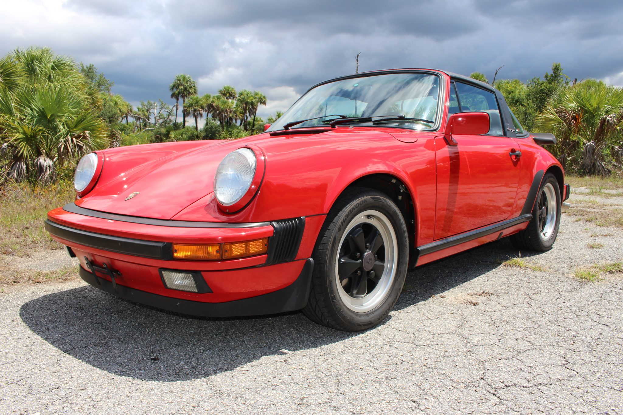 The 16″ Fuchs alloy wheels with black centers are mounted with older Hankook Ventus V12 Evo tires. The suspension features Sachs front shocks and Bilstein rear shocks as well as a front strut tower bar. Braking is handled by four-wheel ventilated discs. Work since 2020 included rebuilding the brake calipers and replacing the front wheel bearings, sway bar bushings, shocks, front and rear brake rotors, and pads.