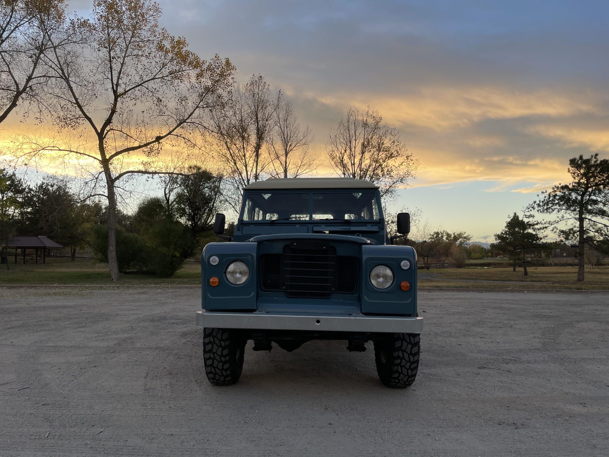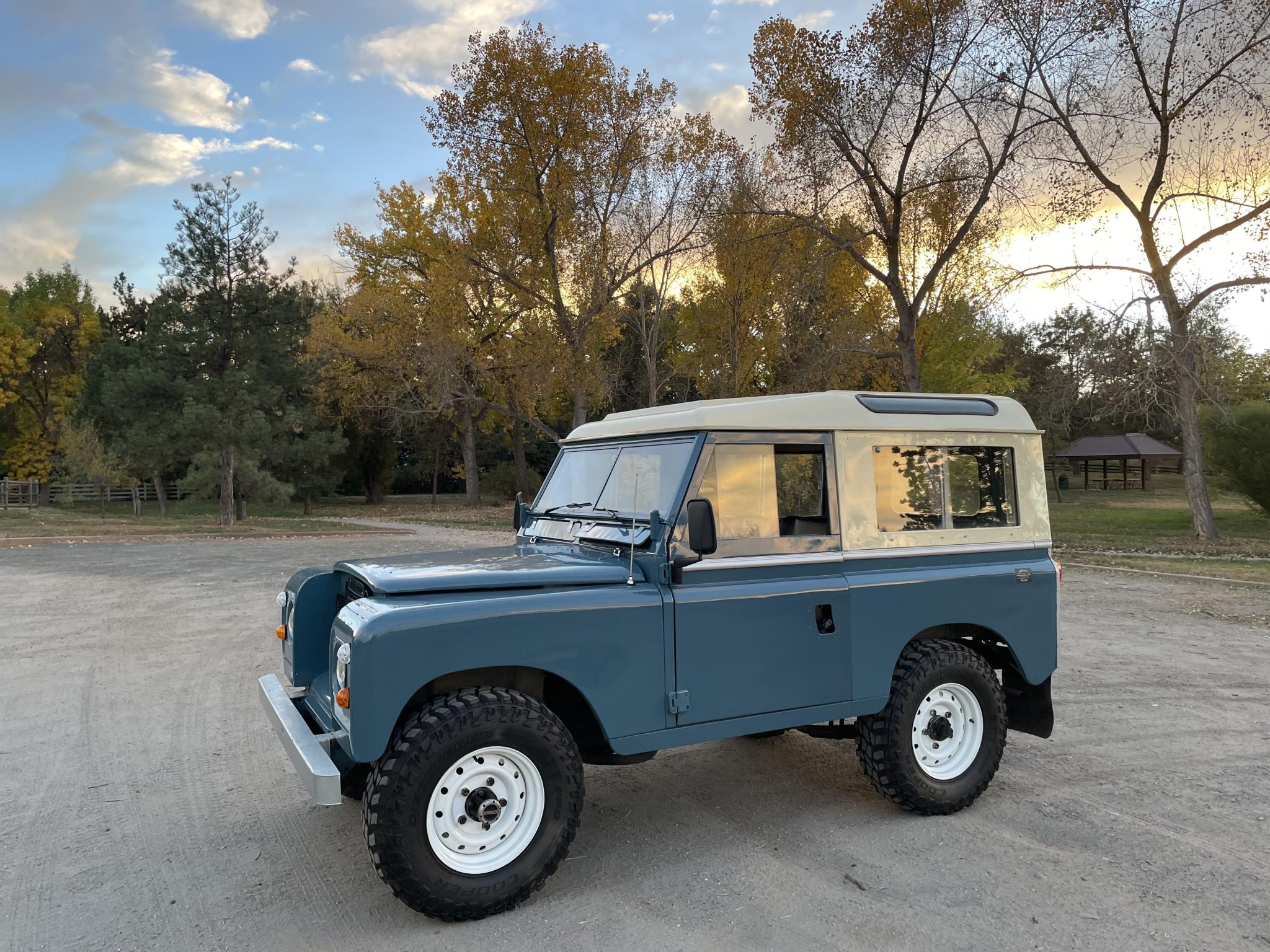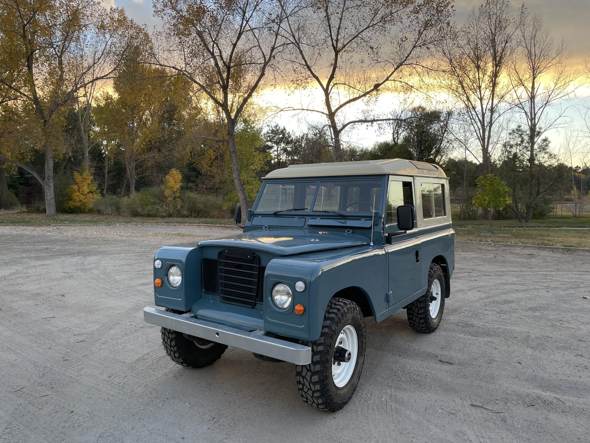 White-finished 16″ steel wheels are mounted with 235/85 Cooper Discover STT Pro tires, and the wheel and tire package was installed during the refurbishment. The truck is equipped with AVM manually locking front hubs. Braking is provided by power-assisted drums, and the braking system was overhauled under current ownership.