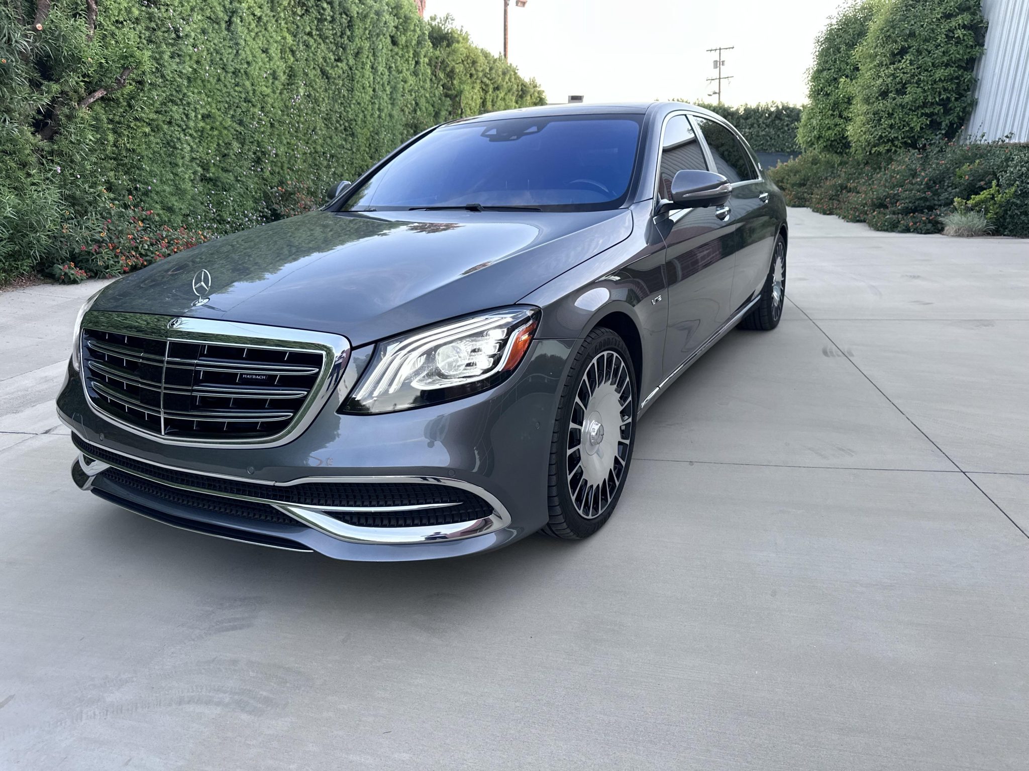 The Maybach-exclusive 20″ sawtooth-style forged wheels are mounted with Goodyear tires. The car is equipped with a Magic Body Control anticipatory suspension and adaptive braking technology including predictive brake priming and emergency-sensing brake assist.