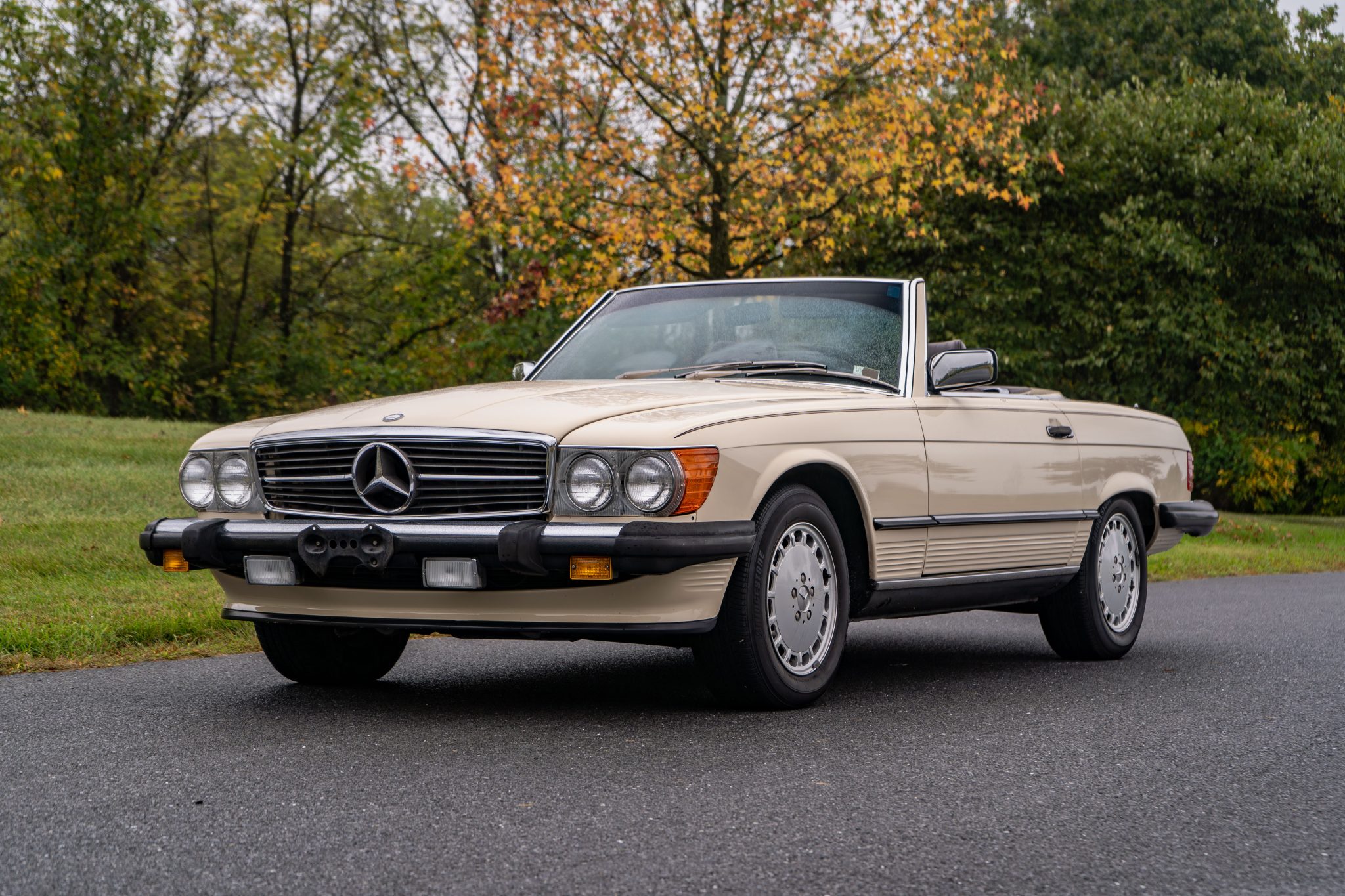 Silver-finished 15″ Gullideckel alloy wheels are mounted with Bridgestone tires. The car was factory-equipped with power steering, a fully independent suspension, and power-assisted four-wheel disc brakes. The brake fluid was changed and the master brake cylinder, rear brake calipers, and front and rear brake pads were replaced in 2024.