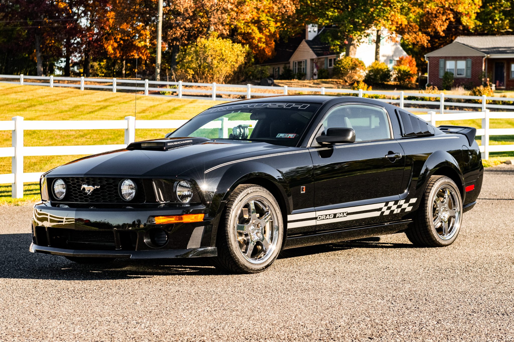 Chrome 18″ five-spoke Roush wheels are wrapped in Continental Extreme Contact tires. The Drag Pak features BMR rear-suspension links, Roush-spec adjustable dampers, and front and rear sway bars. Stopping power is provided by four-wheel anti-lock disc brakes.