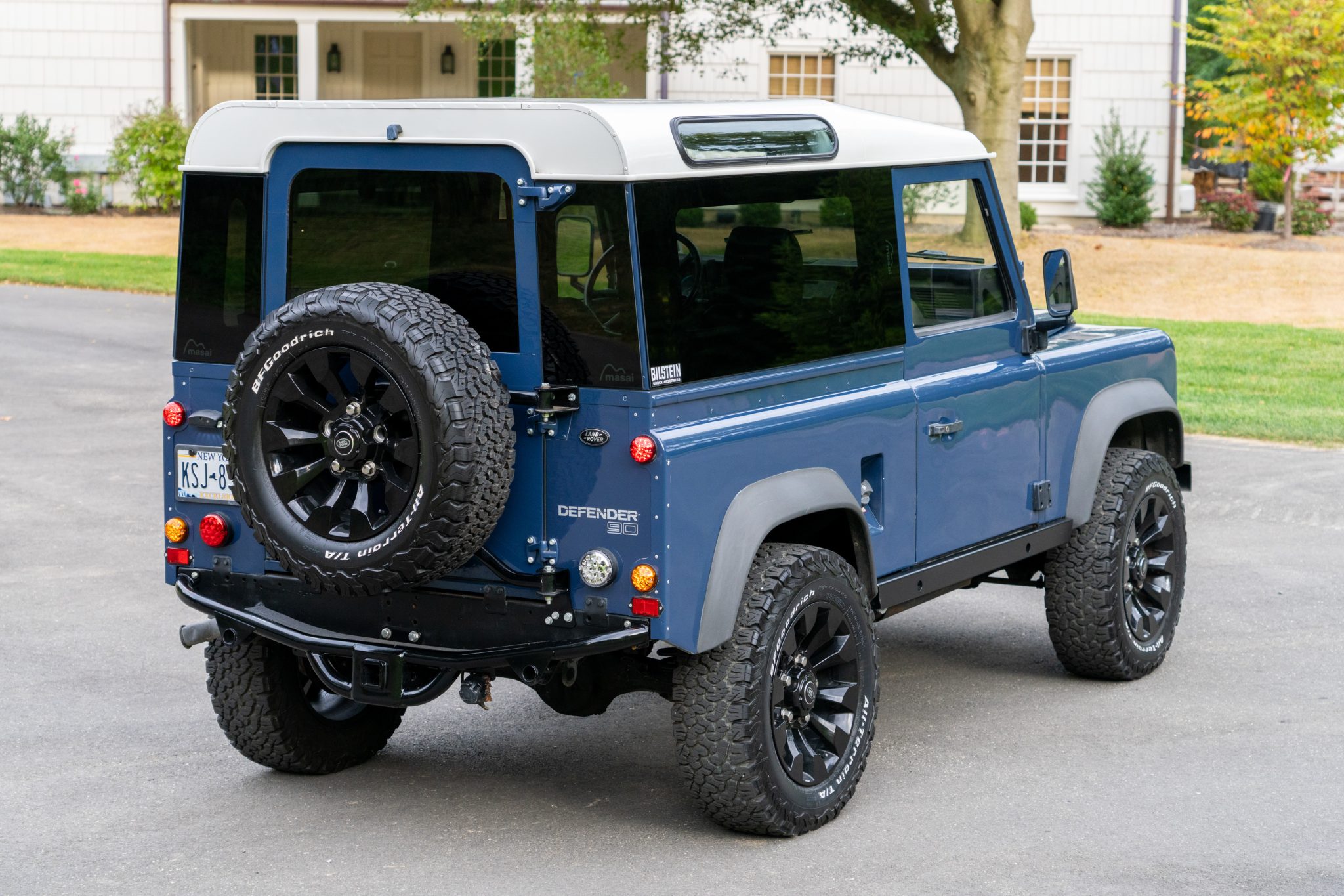 The 18″ Sawtooth wheels are mounted with 265/65 BFGoodrich All-Terrain T/A KO2 tires, and a matching spare is mounted to a swing-out carrier at the rear of the truck. A steering stabilizer and Bilstein shocks have been installed, and stopping power is from front discs and rear drums.