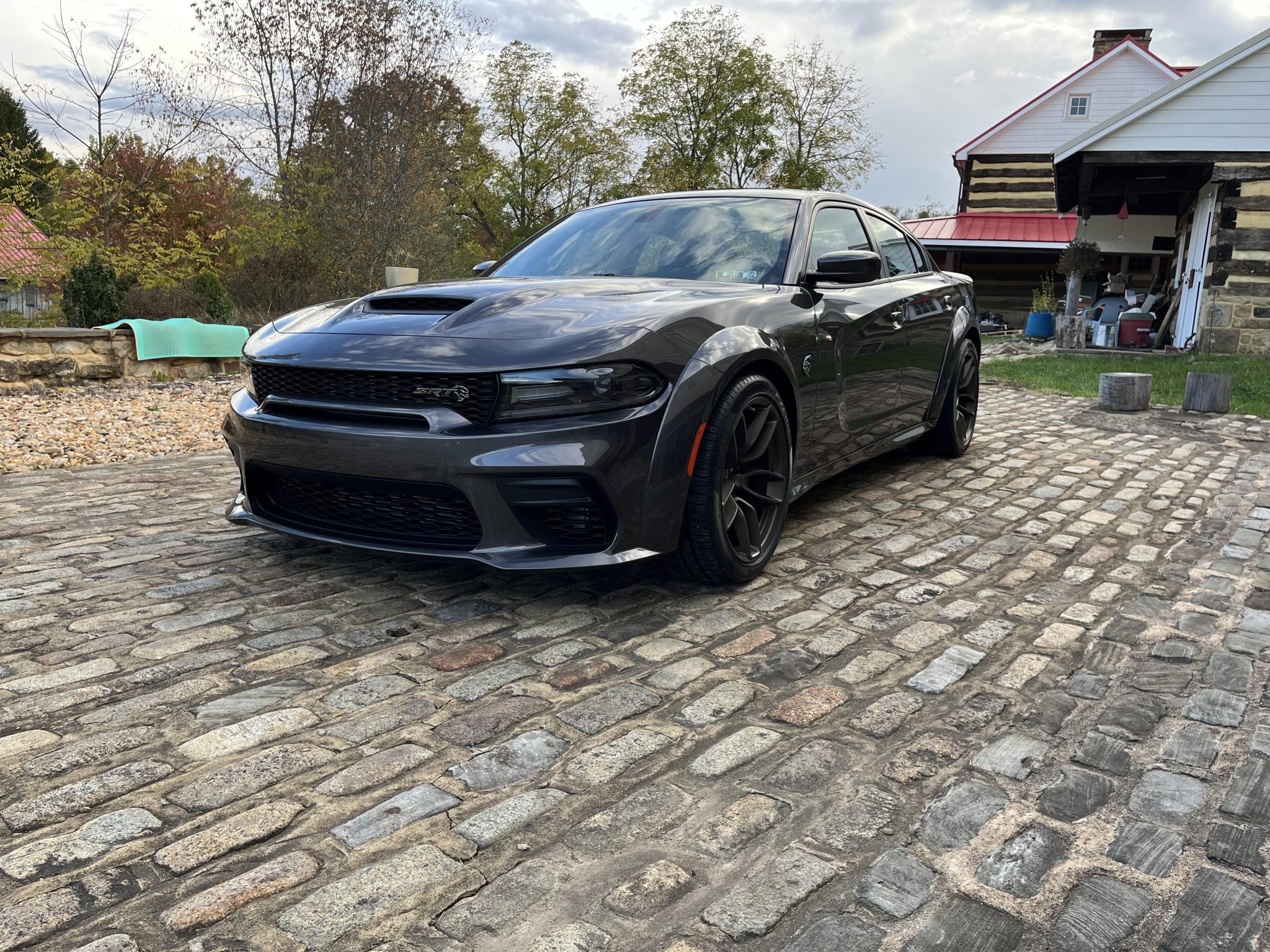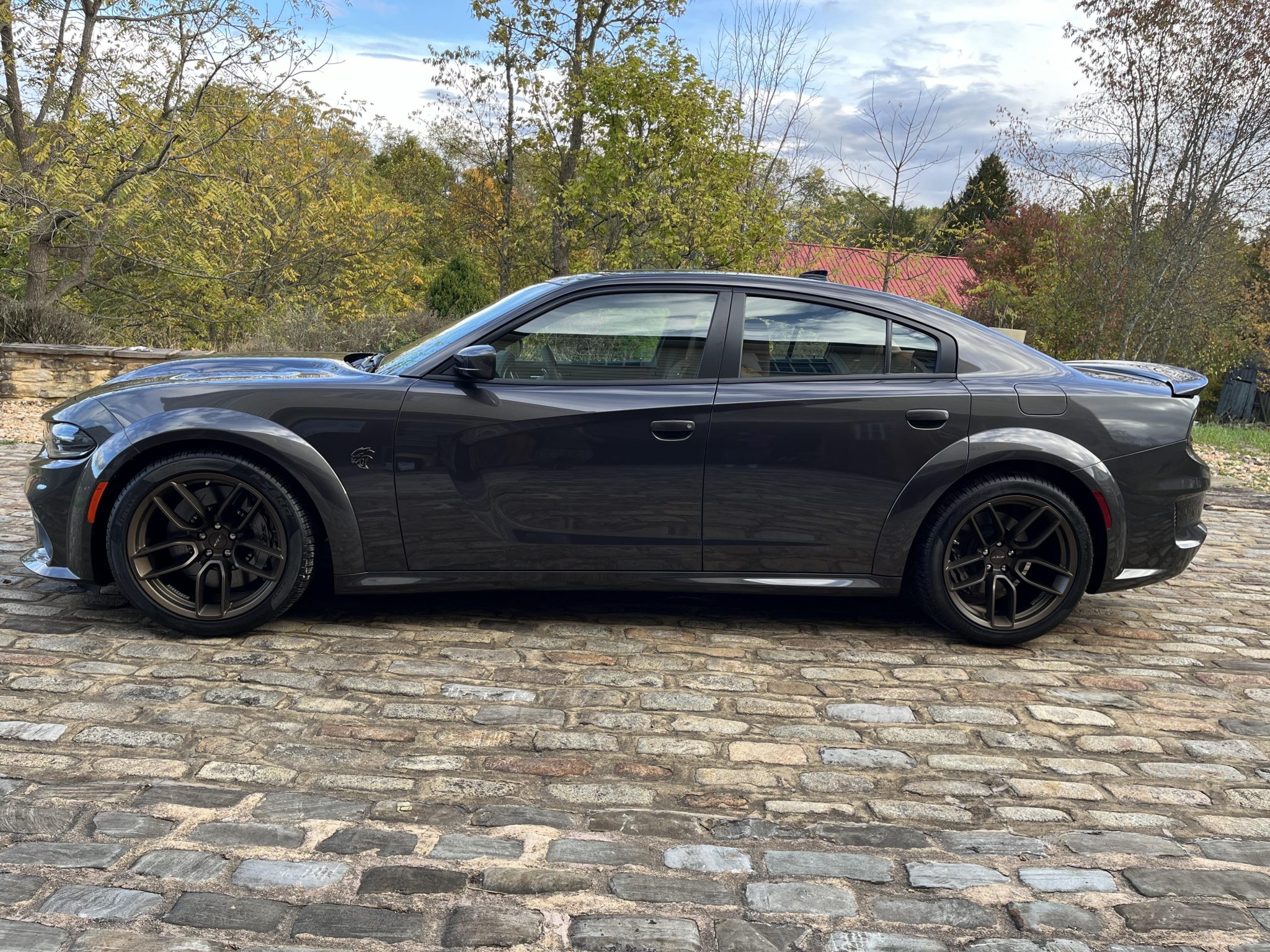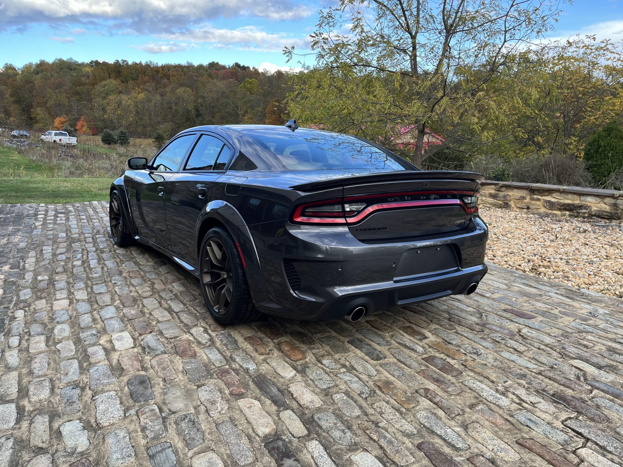 Brass Monkey 20″ Devils Rim forged-aluminum wheels are mounted with 305/35 Pirelli P Zero All Season tires. The four-wheel disc brake system features gunmetal gray-finished calipers and slotted front rotors, and the car is also equipped with adaptive Bilstein dampers.