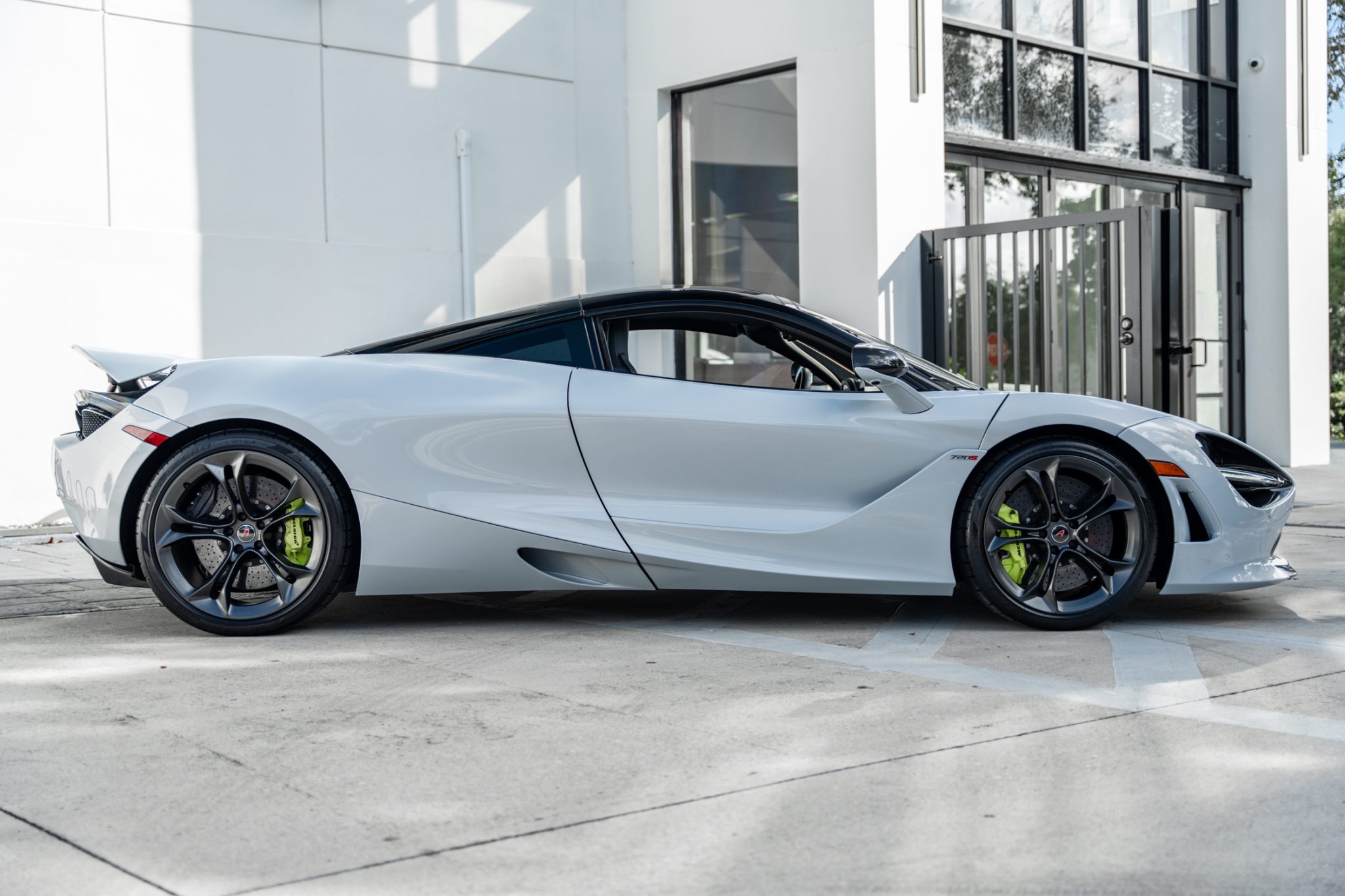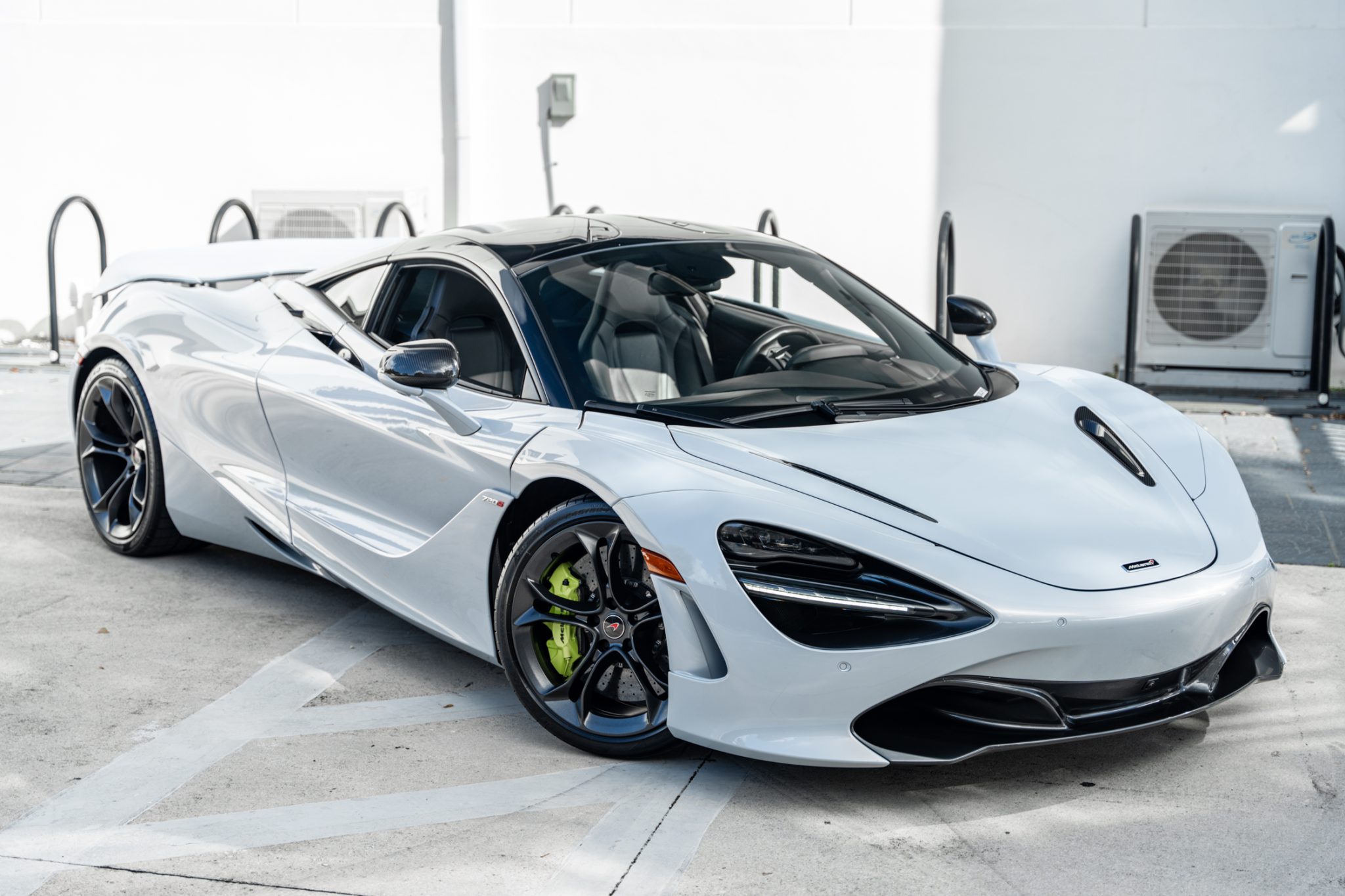 The 19″ and 20″ Stealth-finished split-spoke wheels are mounted with Pirelli tires. The car rides on a three-mode adaptive suspension that features double wishbones at all four corners, and a vehicle-lift system was equipped from the factory. Stopping power is provided by yellow-painted multi-piston calipers over carbon-ceramic rotors at all four corners.