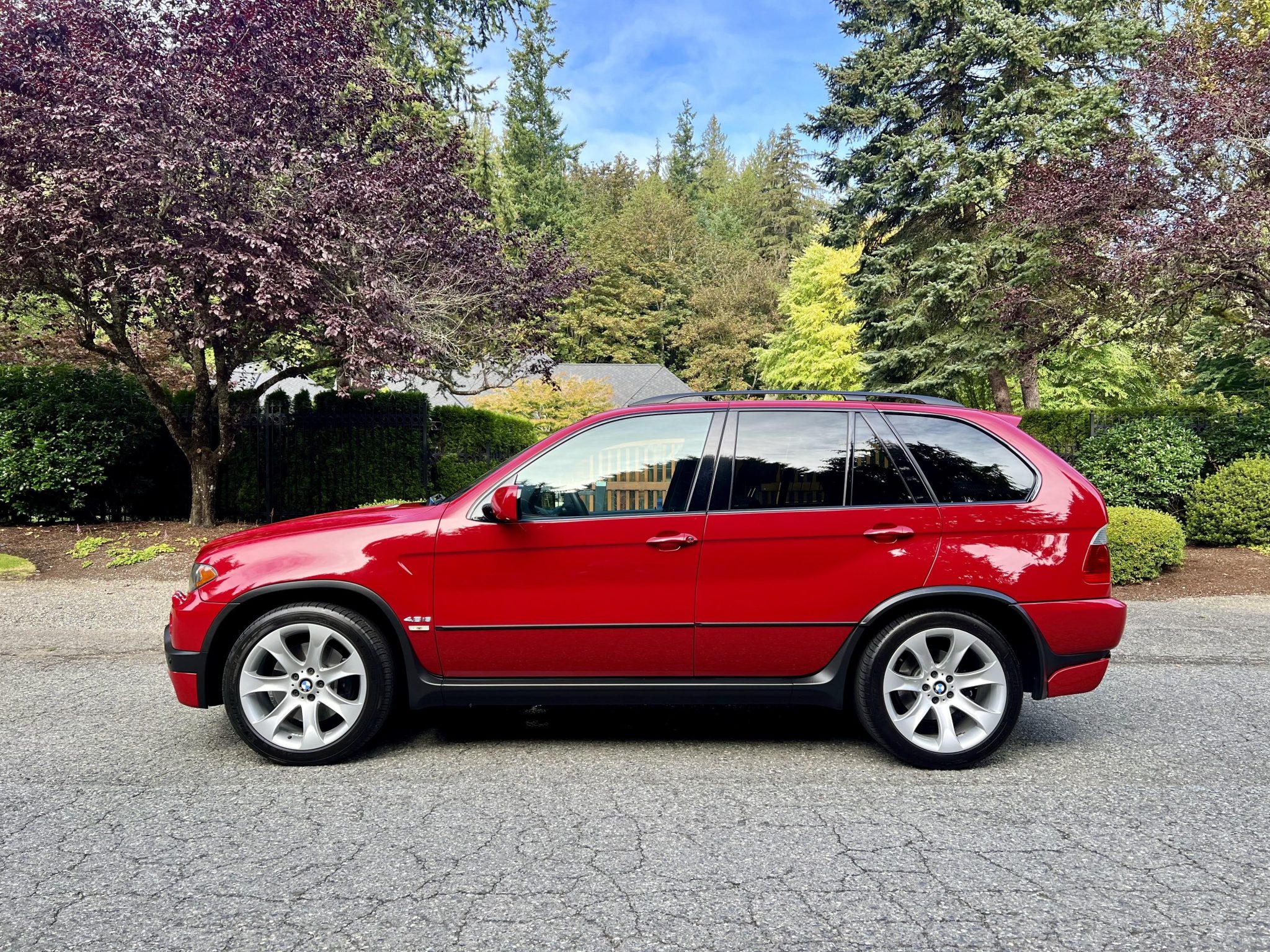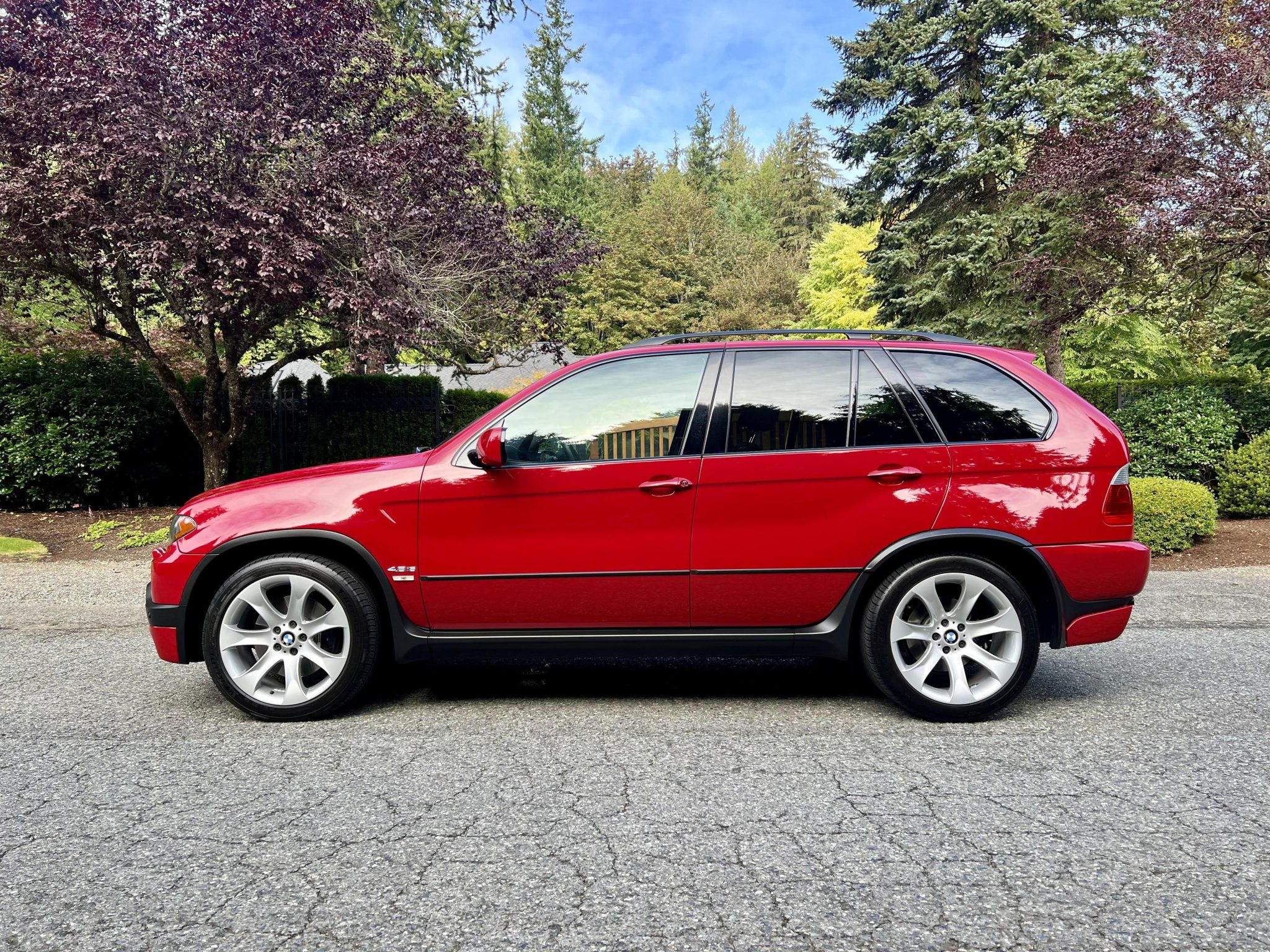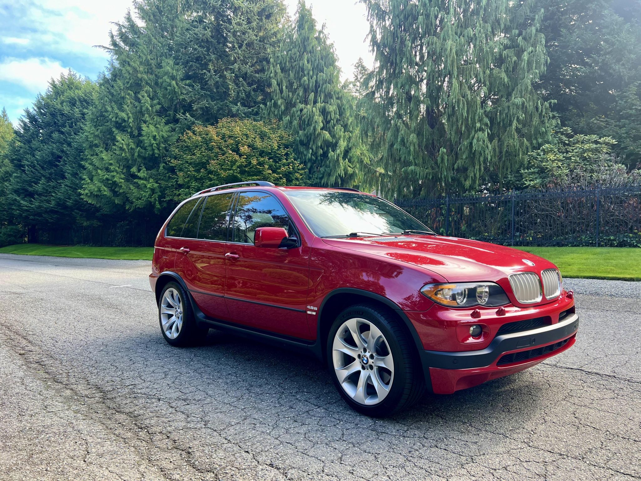 Silver 20″ Style 168 alloy wheels are fitted with Michelin Pilot Sport tires that were mounted in 2024. The vehicle was equipped at the factory with a sports suspension, self-leveling air springs all around, and an adjustable ride height as well as Dynamic Stability Control (DSC), All-Season Traction Control (AST), and Hill Descent Control. Stopping power is provided by disc brakes at each corner. The brake fluid was changed and the front lower control arms were replaced in 2023.
