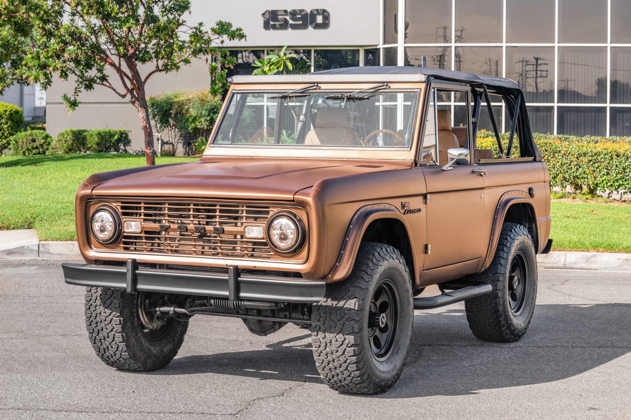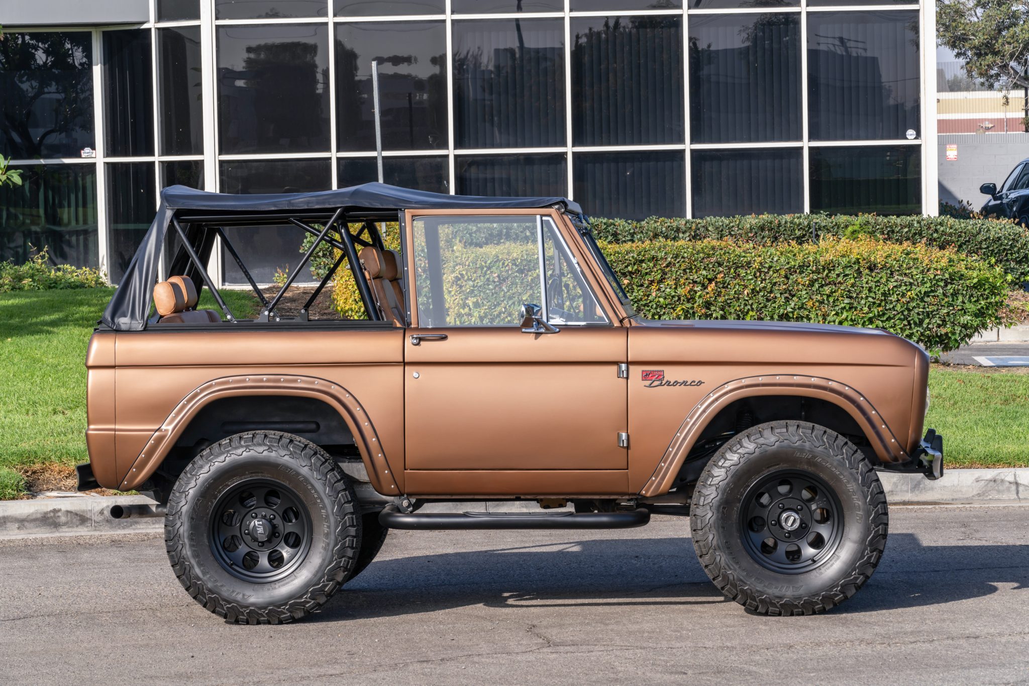 The 17″ Mickey Thompson wheels are wrapped in 35″ BFGoodrich All Terrain T/A tires. The truck is equipped with Warn manually locking front hubs and power steering, and stopping power is provided by front discs and rear drums with a Wilwood master cylinder. A 2.5″ Wild Horses suspension lift has been installed.