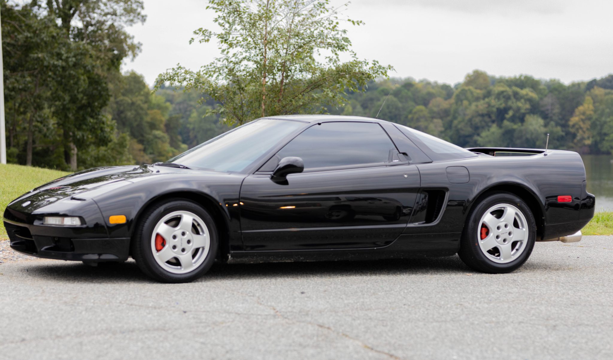 Staggered-diameter 15″ and 16″ five-spoke forged wheels wear Hankook tires that are said to have been recently mounted. The car features a four-wheel double-wishbone suspension with front and rear stabilizer bars, and braking is handled by NSX-branded calipers over vented rotors at each corner. The right-side CV axles were rebuilt in July 2021, and the thickness of the brake pads is low, according to the seller. The ABS system actuates intermittently, and the fuse for the system has been removed.
