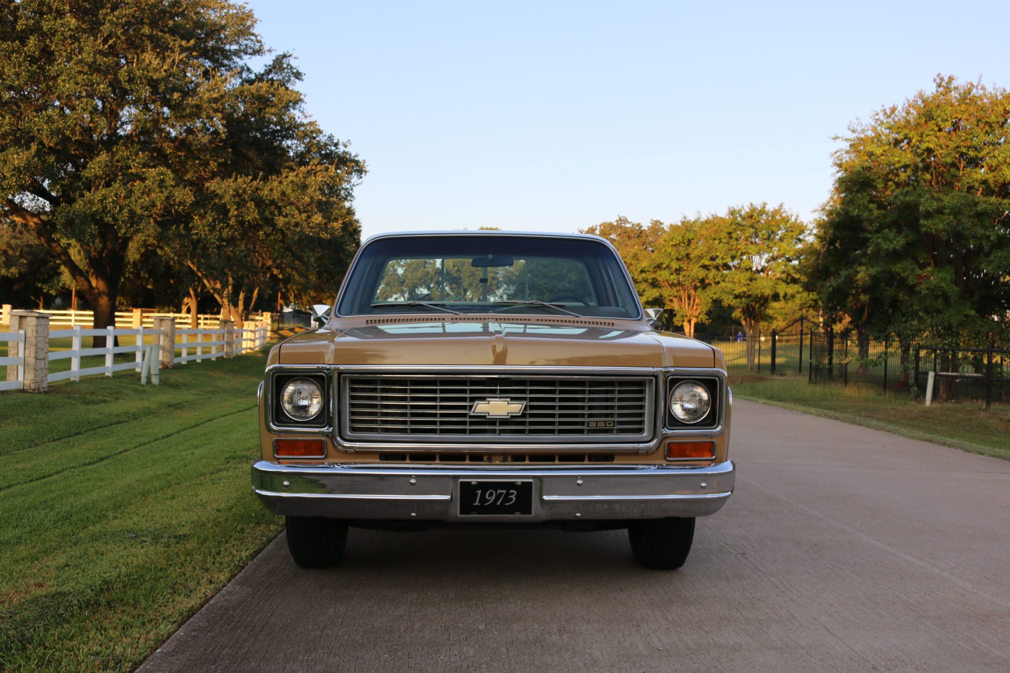 White 15″ steel wheels wear chrome trim rings and center caps and are mounted with older G78-15 Royalton whitewall tires. The truck is equipped with power steering, and braking is provided by front discs and rear drums.