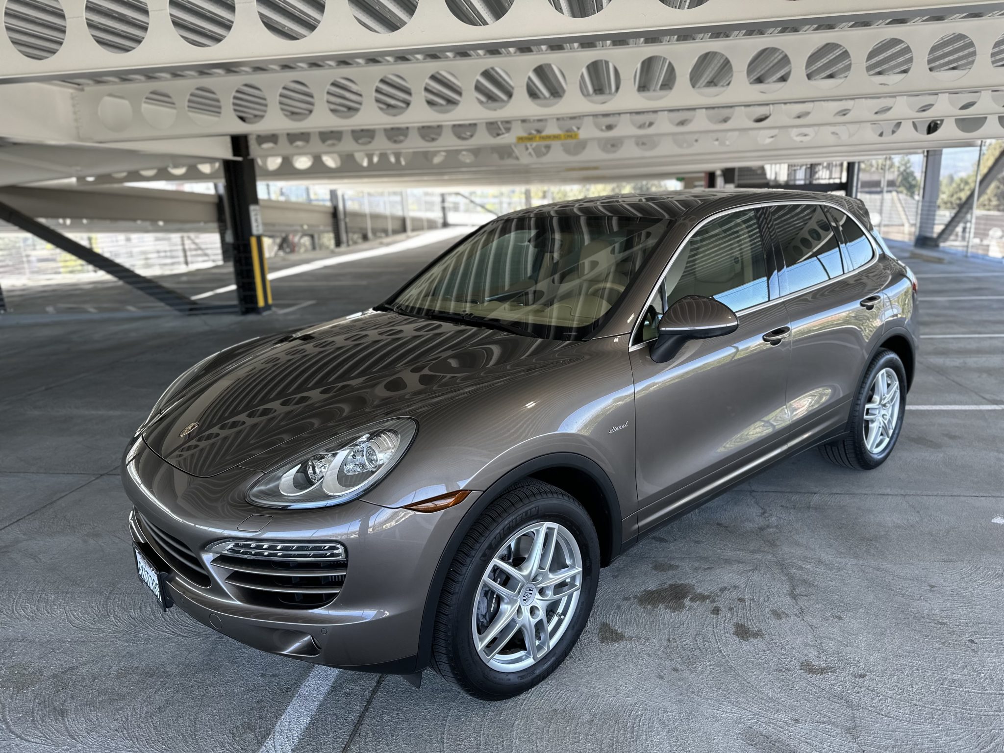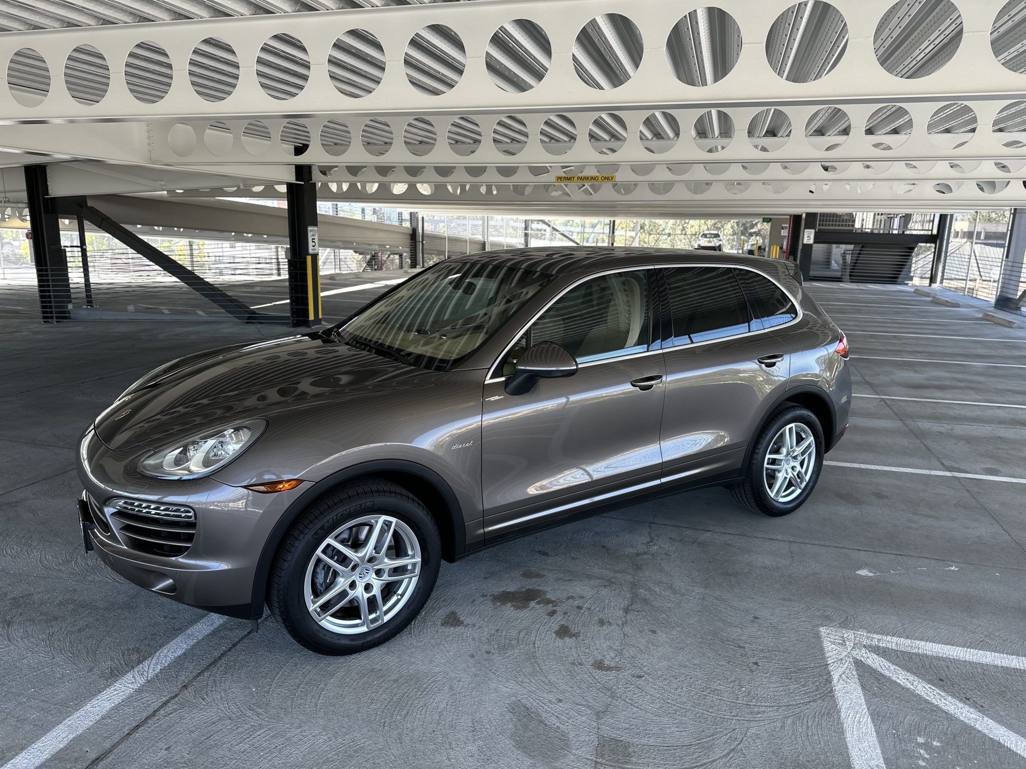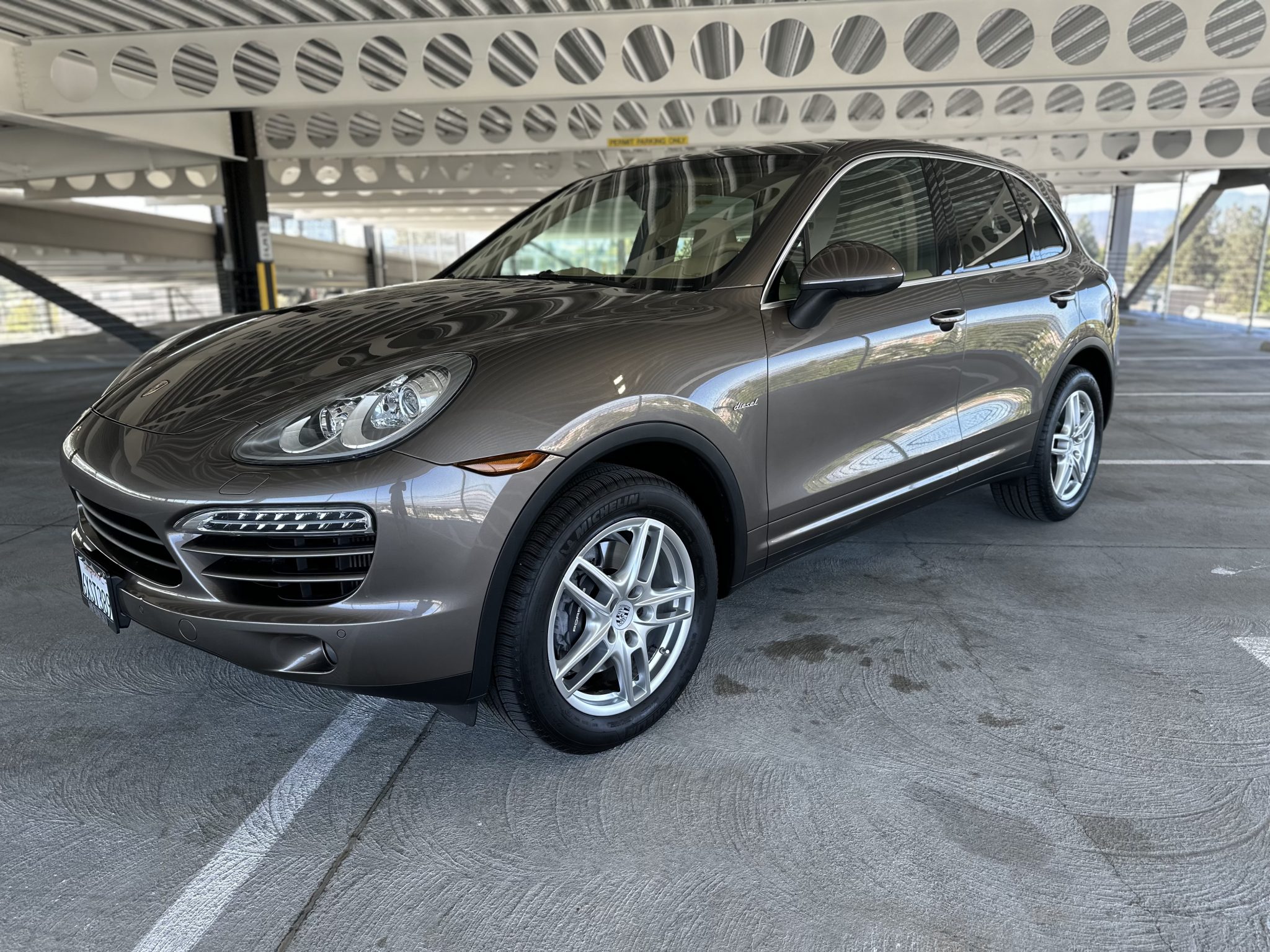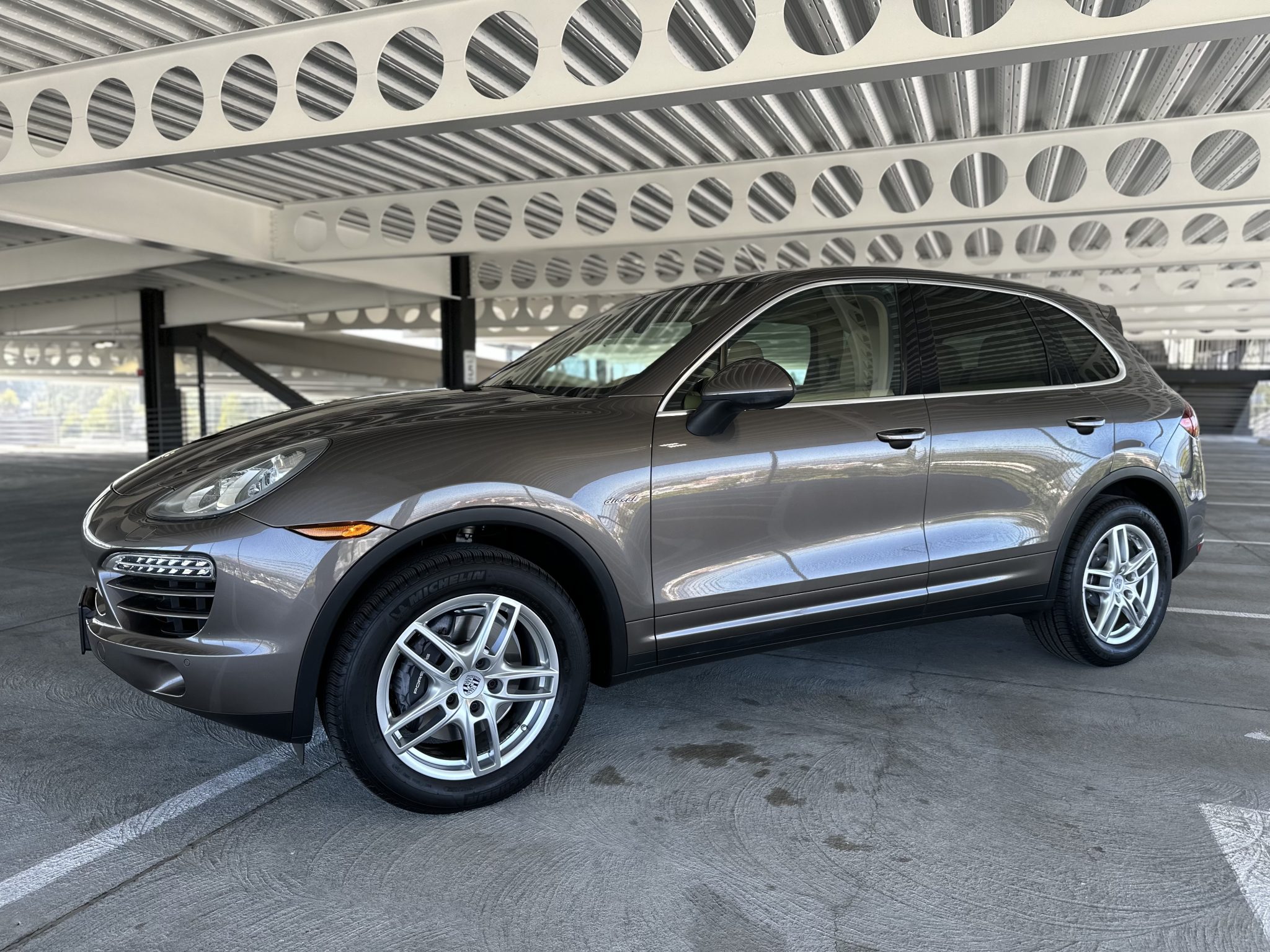 The 19″ Cayenne Turbo alloy wheels are mounted with 265/50 Michelin Latitude Tour HP tires. Stopping power is provided by six-piston front and four-piston rear brake calipers over ventilated rotors at each corner.