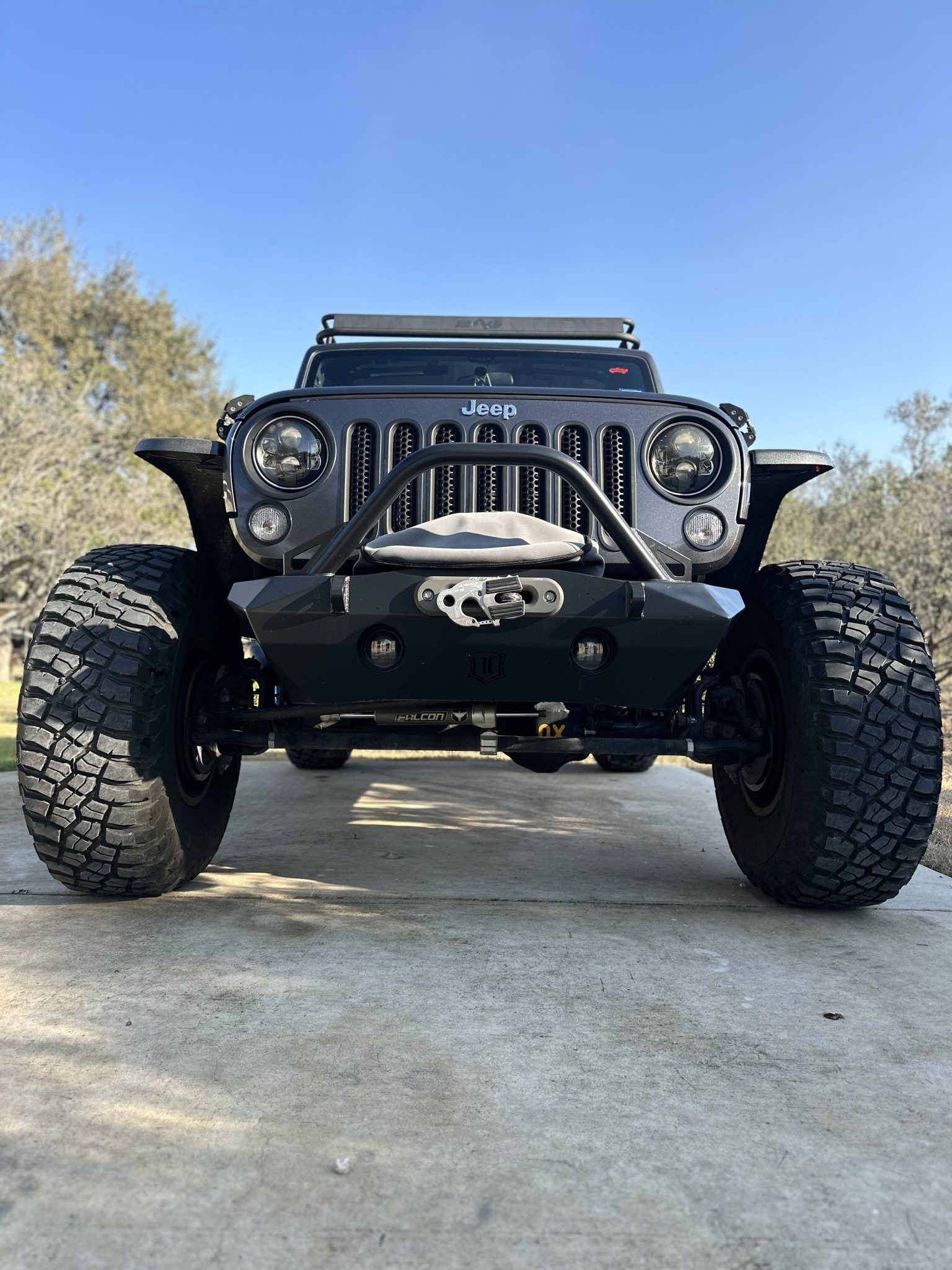 KMC 17″ beadlock wheels are mounted with 39×15.5″ BFGoodrich Mud-Terrain T/A KM3 tires. The seller notes that the suspension has been fitted with a 3.5″ lift, and additional modifications include the following components: