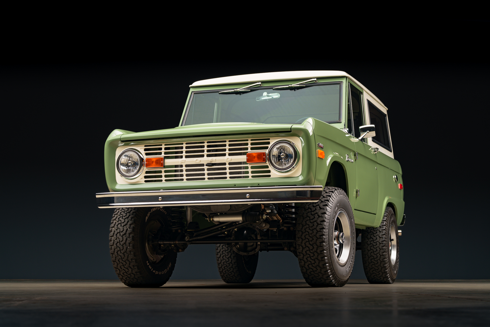 Black 15″ steel wheels wear polished trim rings and are mounted with 31×10.5″ BFGoodrich All-Terrain T/A tires. The truck is equipped with power steering, a 2.5″ lift kit, and Warn manually locking front hubs, and stopping power is provided by drums at each corner.