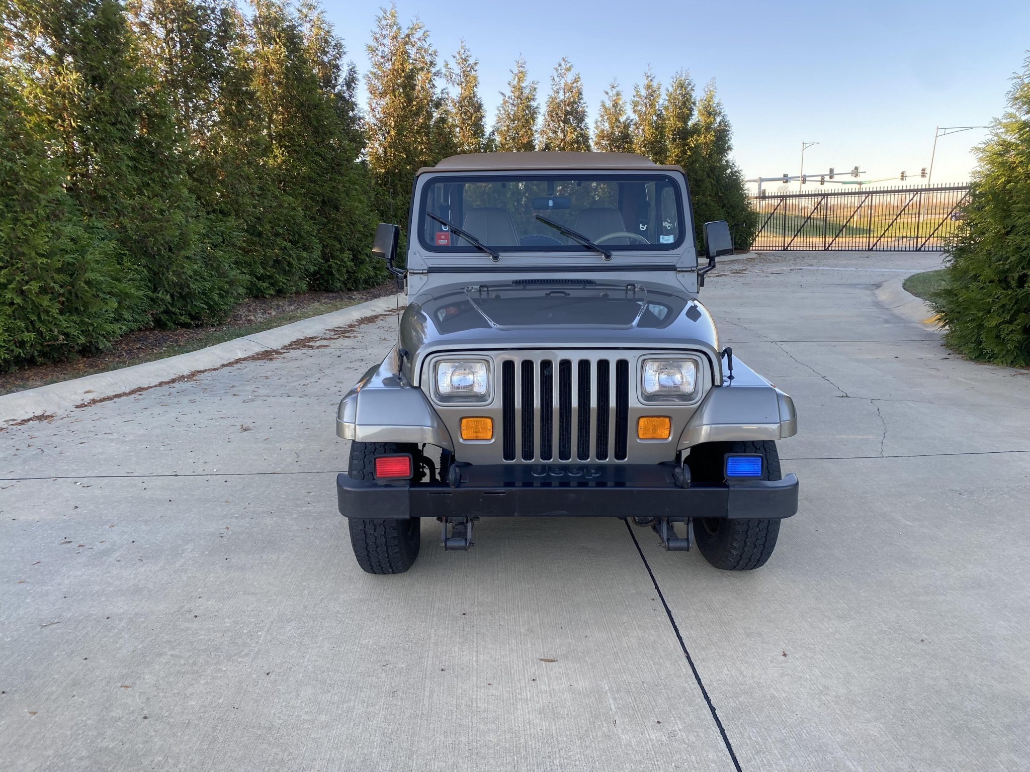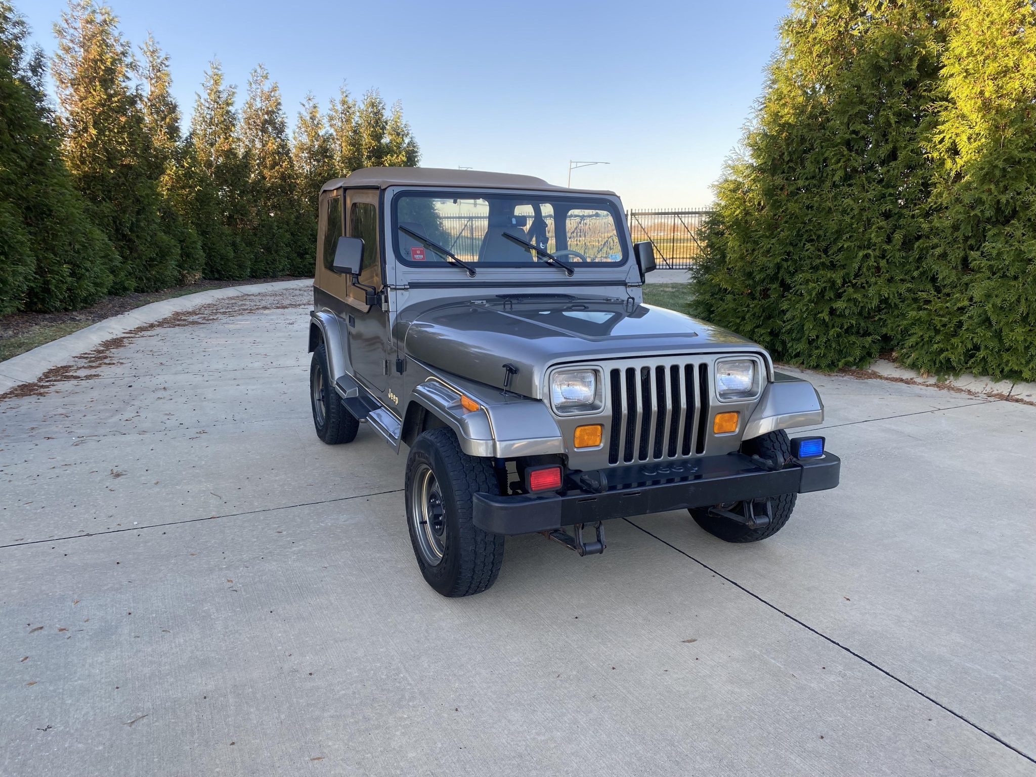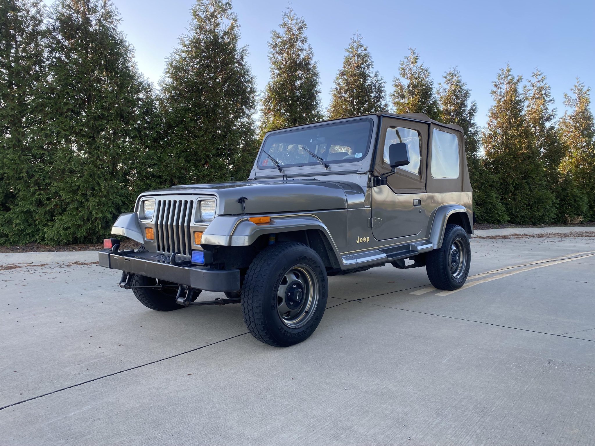 The 15″ styled steel wheels are mounted with 215/75 Goodyear Wrangler Radial tires. Power steering is noted, and vacuum-assisted front disc brakes are paired with rear drums.