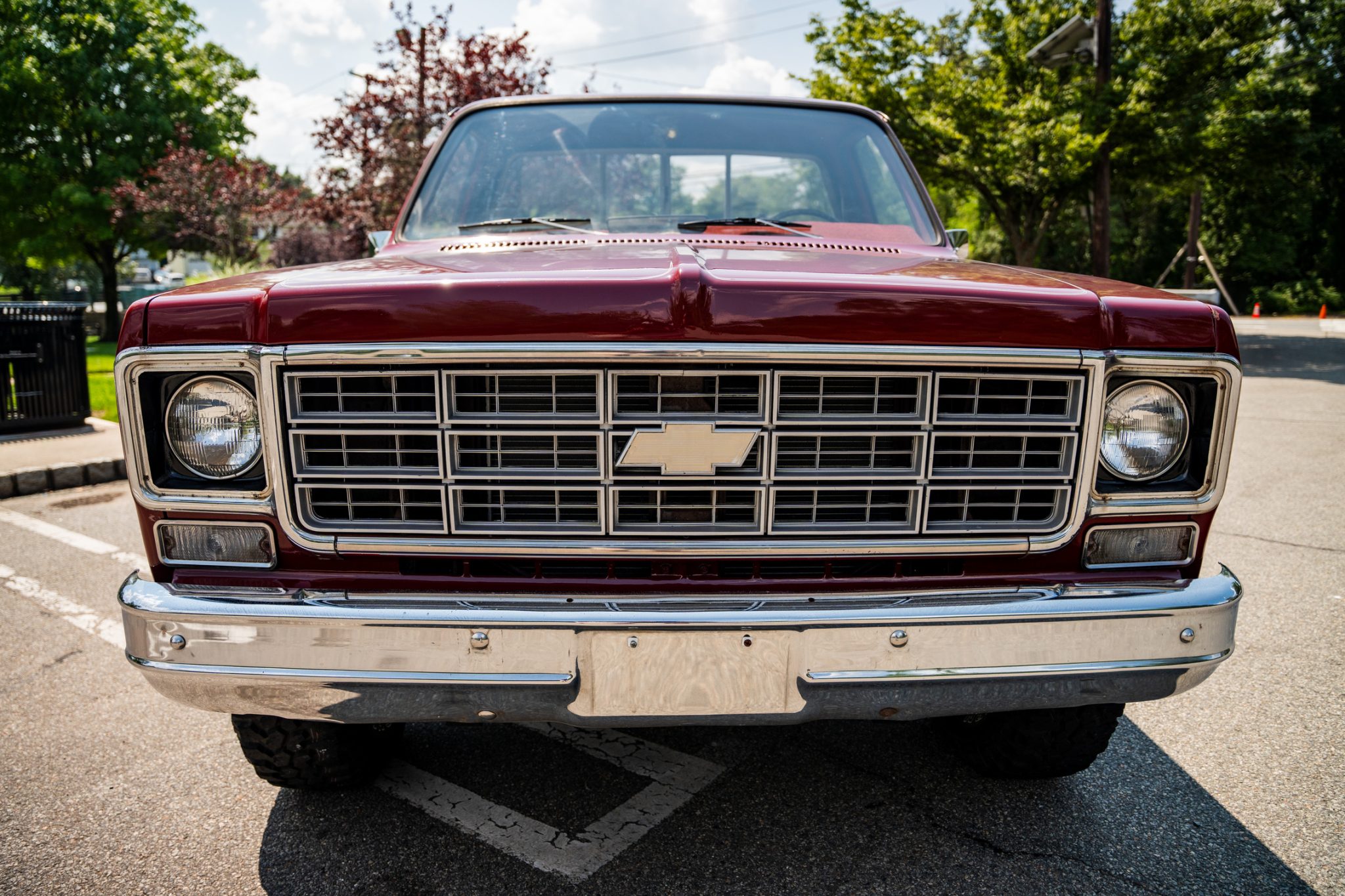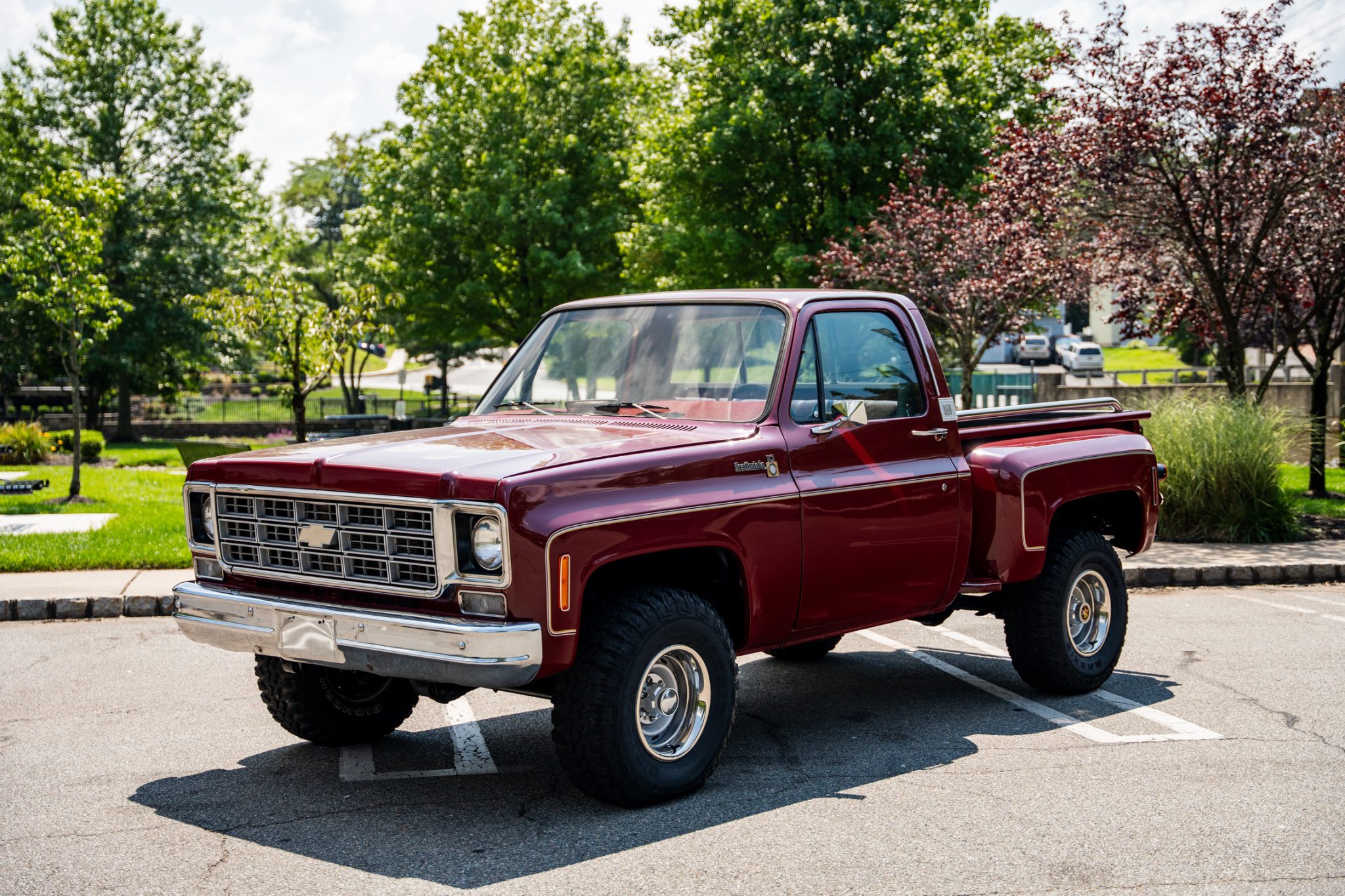 The 15″ Rally wheels wear chrome trim rings and center caps and are mounted with 32×11.5″ Maxxis Big Horn tires. The truck is equipped with power steering, and braking is provided by front discs and rear drums.