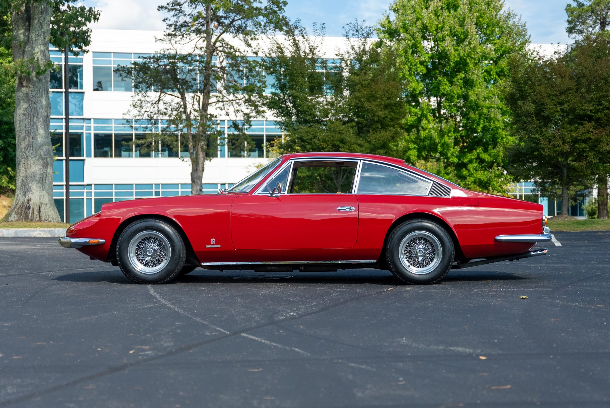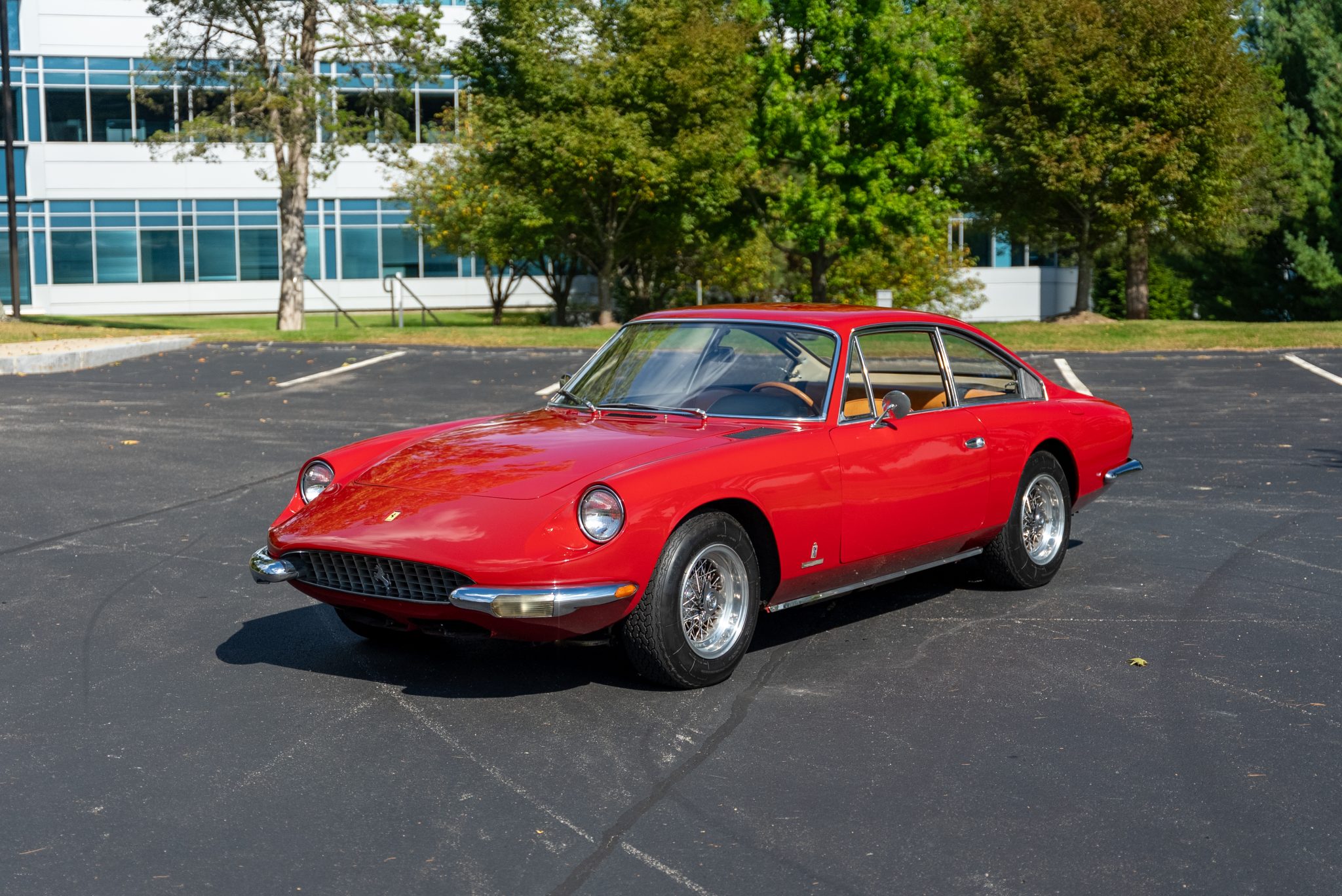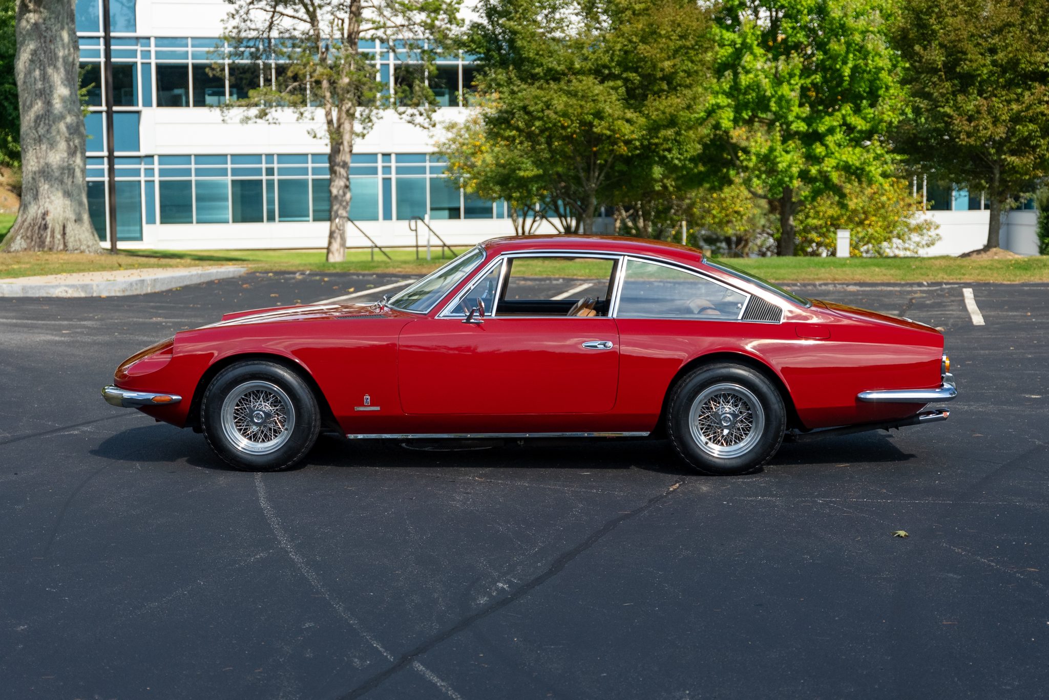 The 15″ Borrani wire wheels were mounted with 215/70 Michelin XWX tires in 2017. The 365 GT 2+2 model was the first Ferrari 2+2 offered with an independent rear suspension, and power-assisted steering was equipped from the factory. Stopping power is provided by servo-assisted four-wheel ventilated disc brakes. The steering box was replaced in 2012.