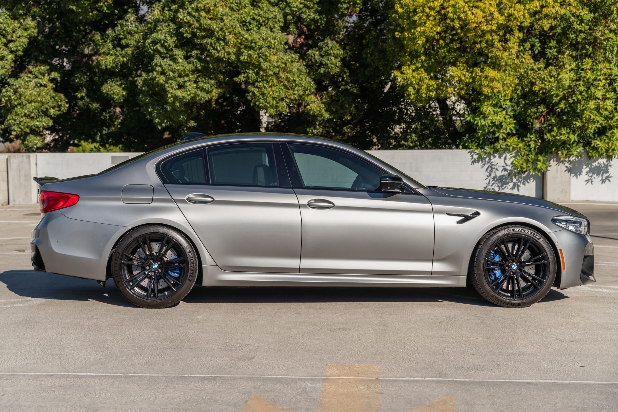 Black 20″ Style 706M alloy wheels are mounted with Michelin Pilot Sport 4S tires measuring 275/35 up front and 285/35 out back. The M5 was equipped from the factory with an adaptive M suspension, M Drive, and M Driving Dynamics Control. Stopping power is handled by cross-drilled and ventilated M Compound brakes.