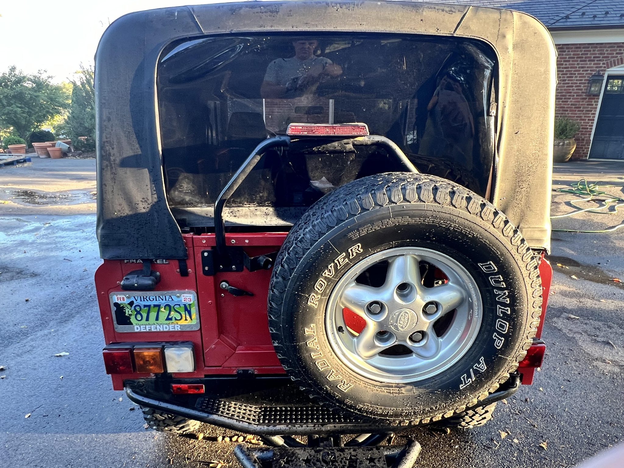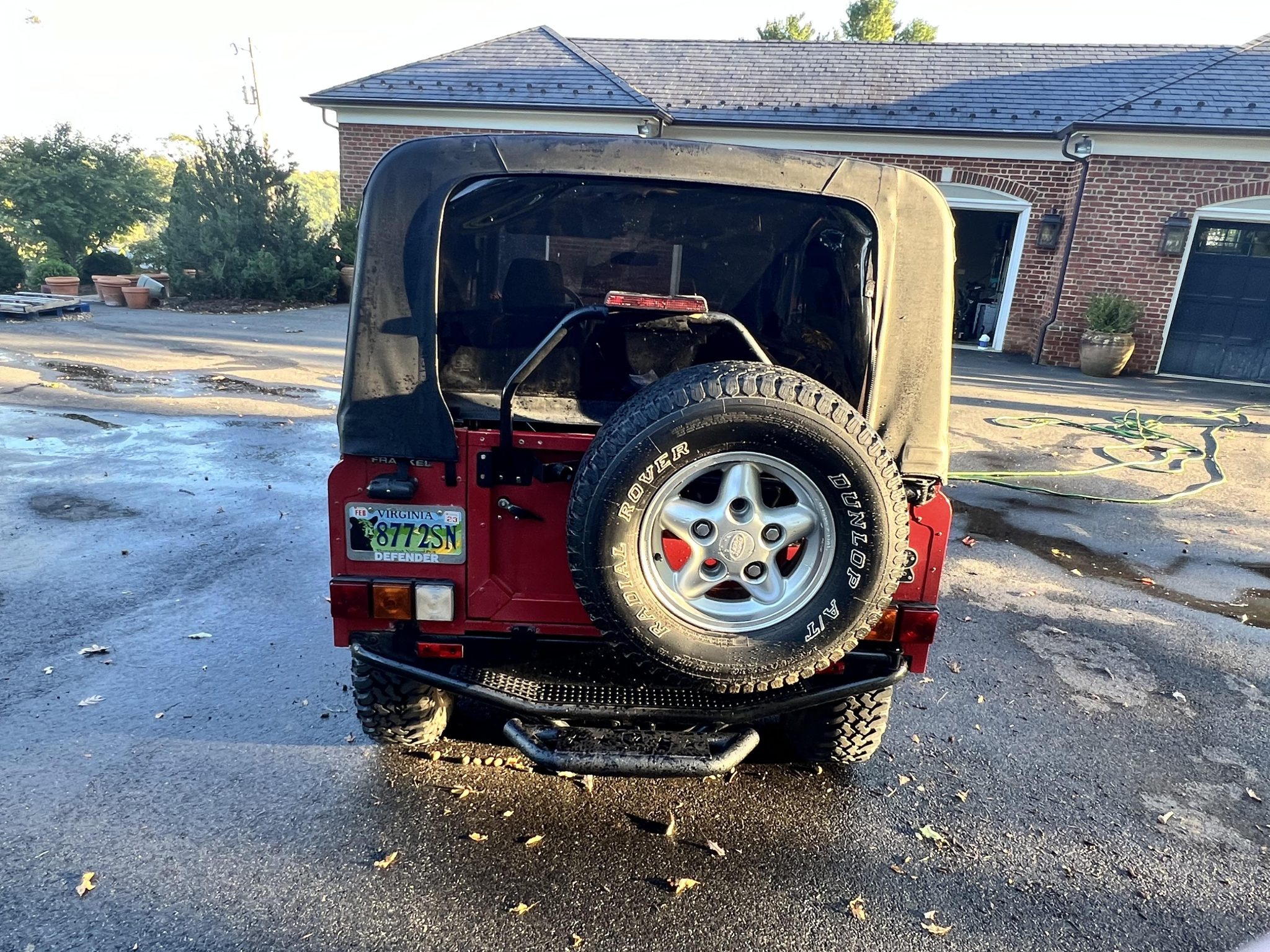 The 16″ five-spoke wheels are mounted with 265/75 BFGoodrich Radial Mud-Terrain T/A tires, and a matching spare with a Dunlop tire is mounted at the rear. Stopping power is provided by power-assisted discs at all four corners. The left-front brake caliper was replaced in July 2016.