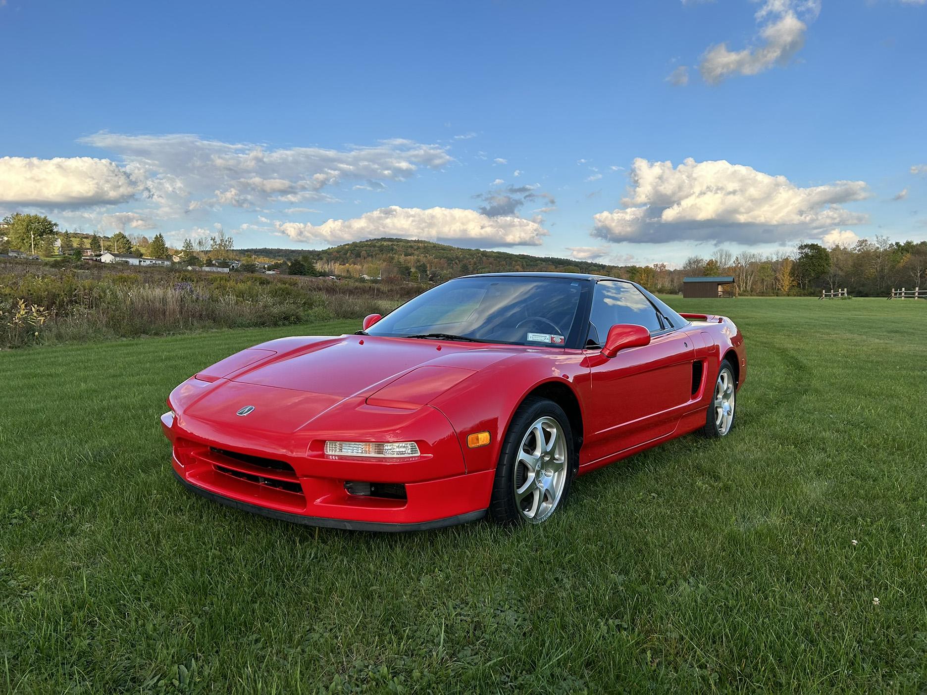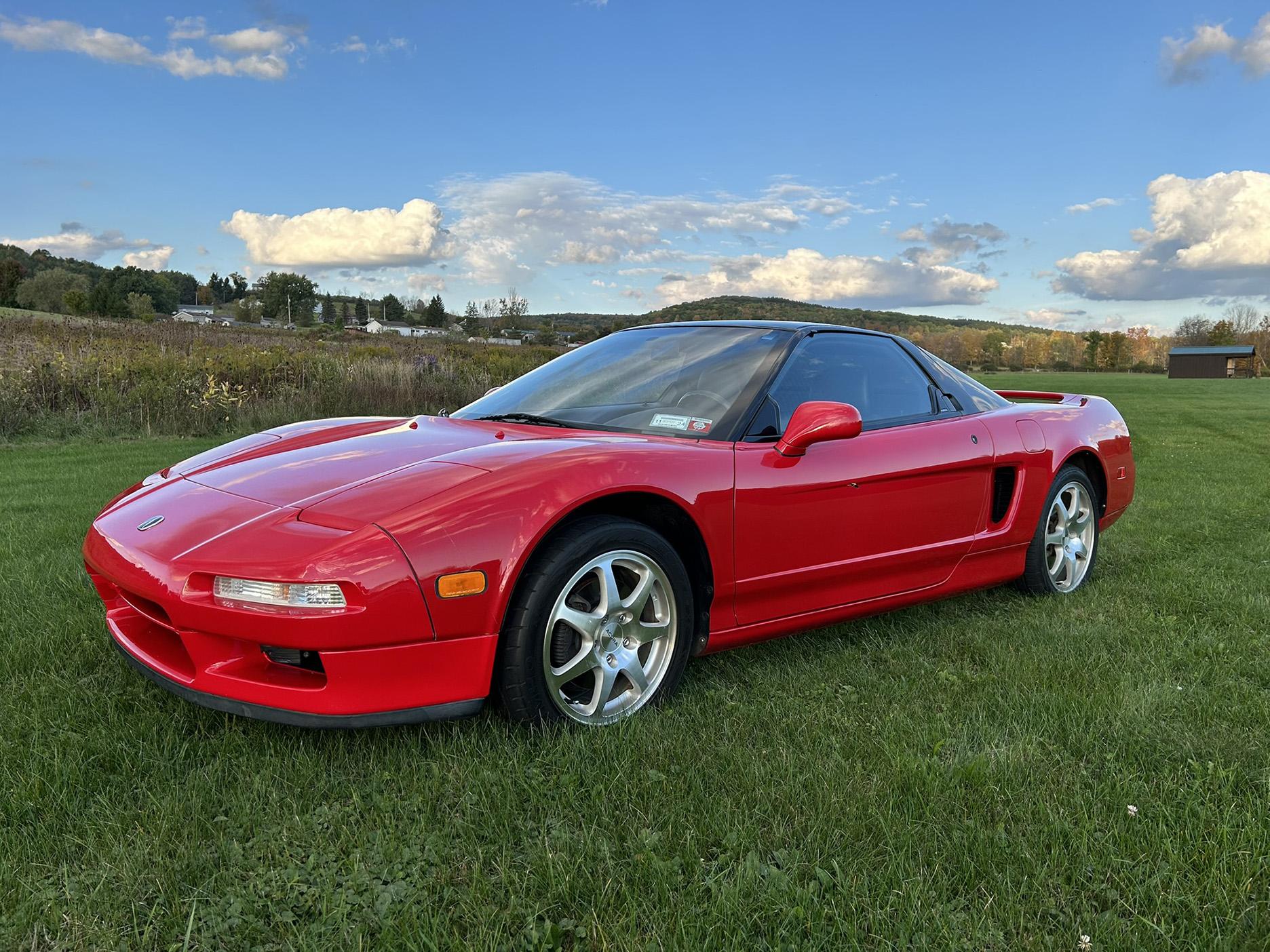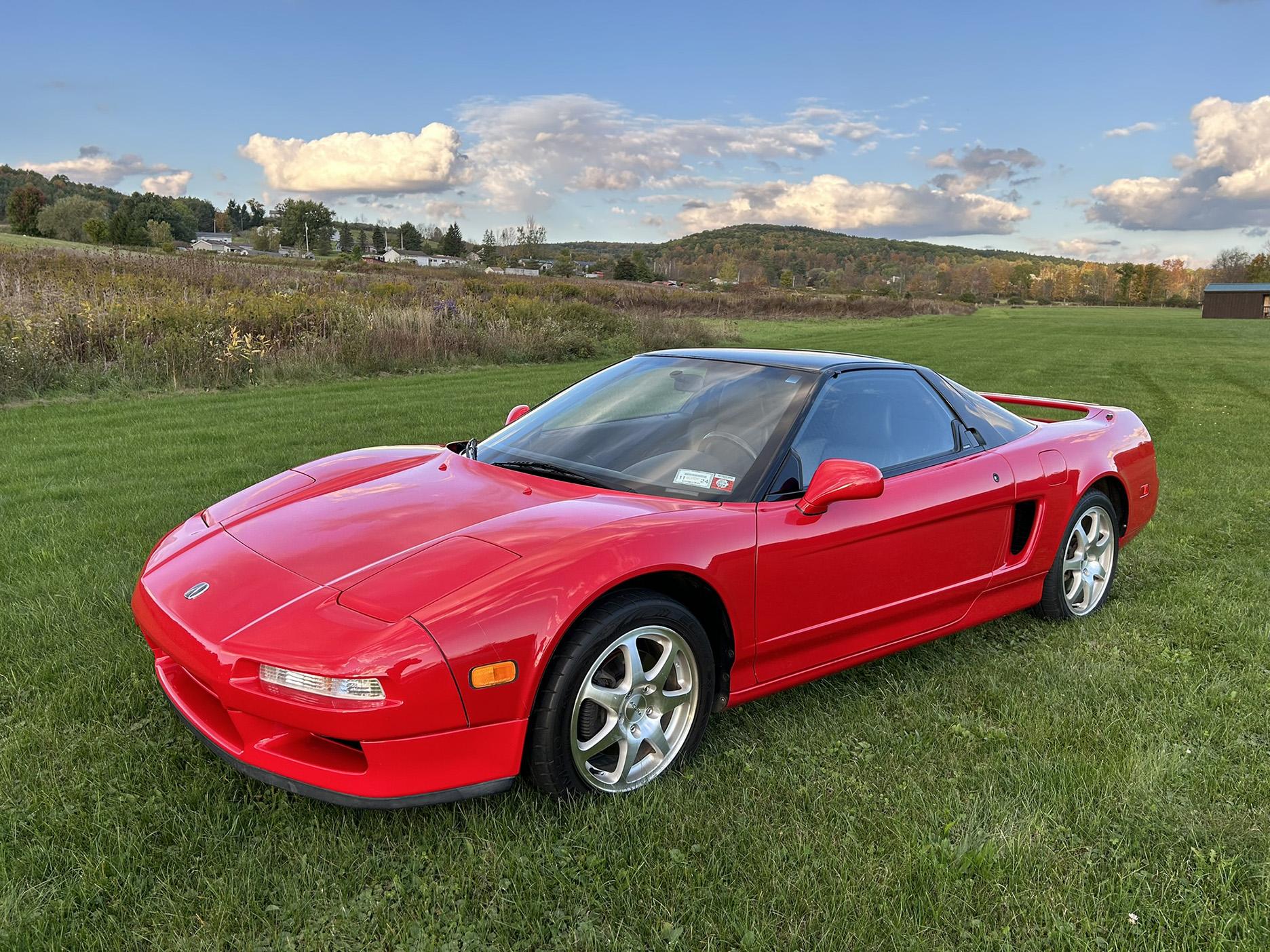 Staggered-diameter 16” and 17” seven-spoke aluminum wheels are mounted with a mix of Kumho and Toyo tires, which show date codes from 2012 and 2023. The car features a four-wheel double-wishbone suspension with front and rear stabilizer bars, and braking is handled by NSX-branded calipers over vented rotors at each corner. The ABS modulator was replaced in December 2021. A spare set of 15″ and 16″ forged five-spoke wheels is included in the sale.