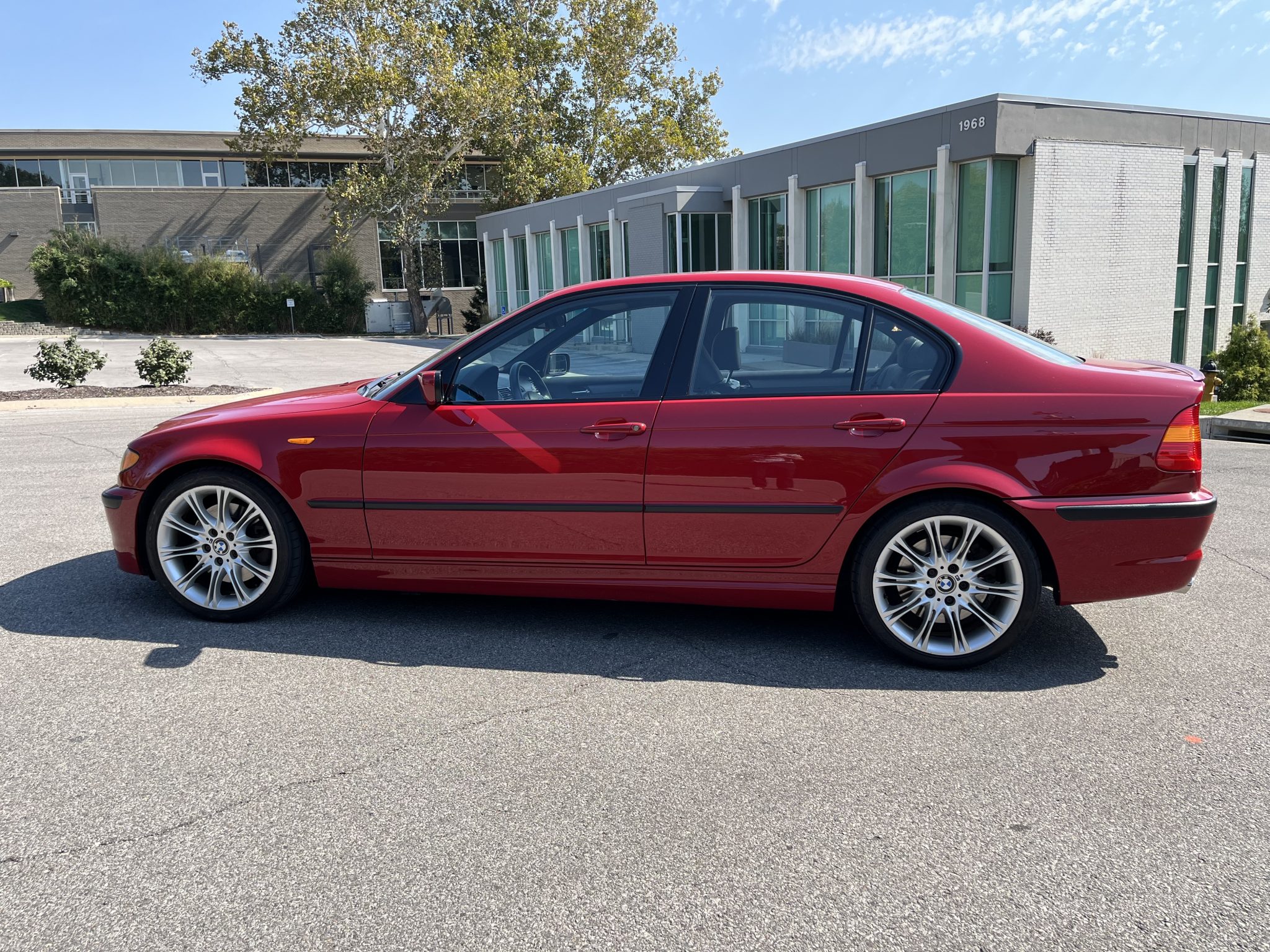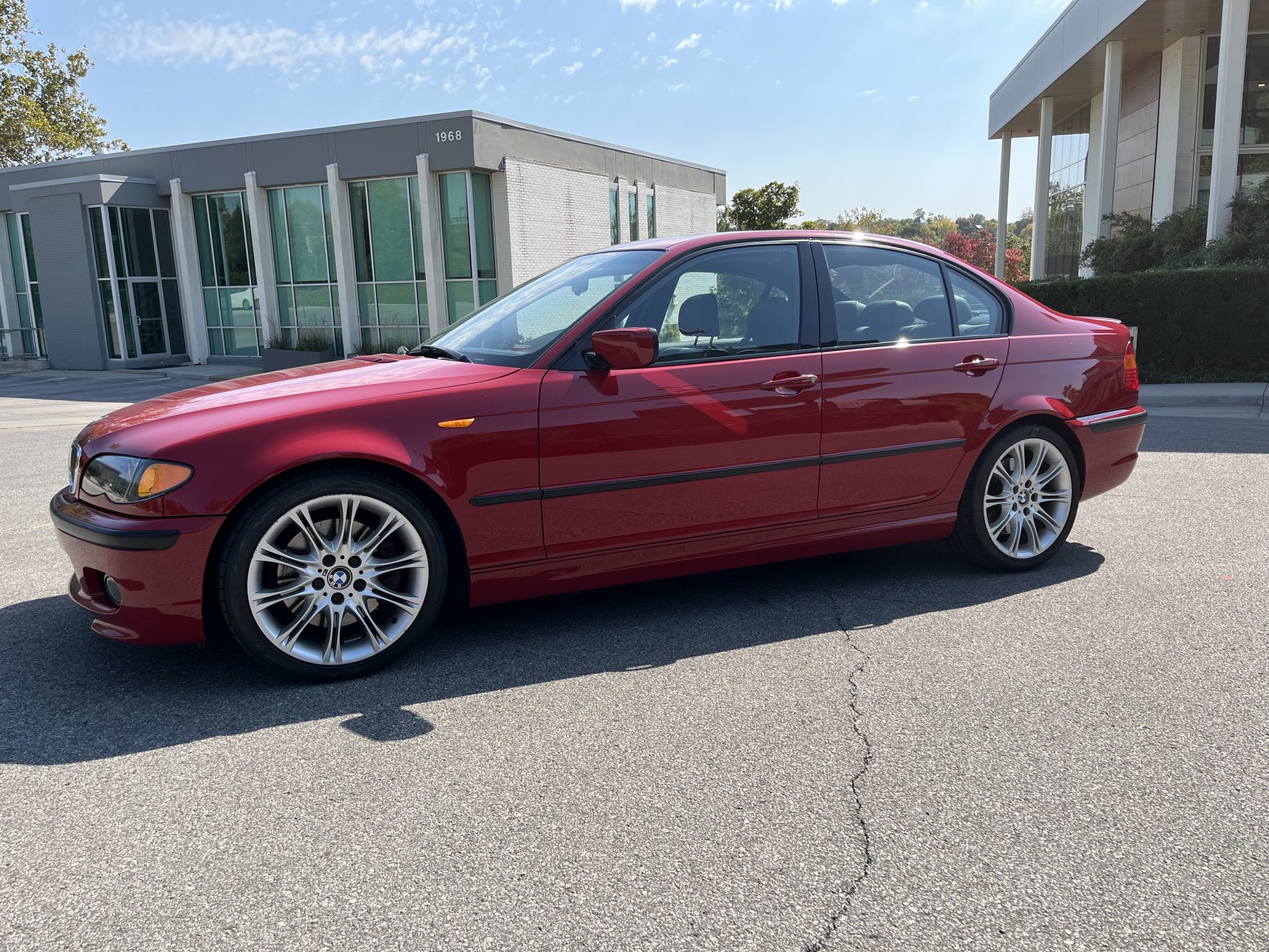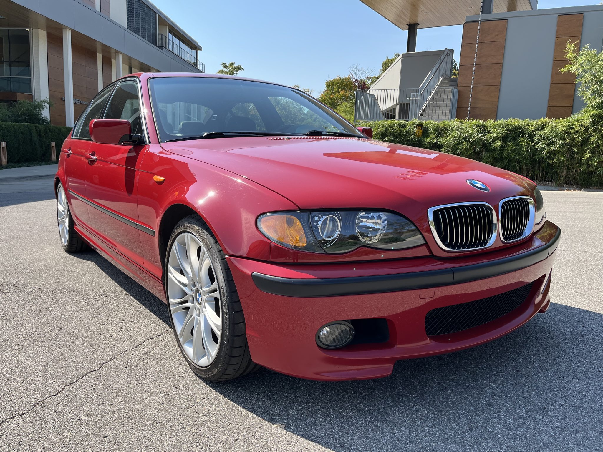 Silver-finished 18″ M Double Spoke wheels are mounted with 225/40 front and 255/35 rear Kumho Ecsta PS91 tires that were fitted in March 2023. The ZHP Performance Package added a stiffer sport suspension, revised control arms, and larger anti-roll bars when compared to the standard E46. The car is also equipped with Dynamic Stability Control (DSC). A power steering fluid flush was performed in March 2023. Curb rash and scuff marks are visible on the wheels.