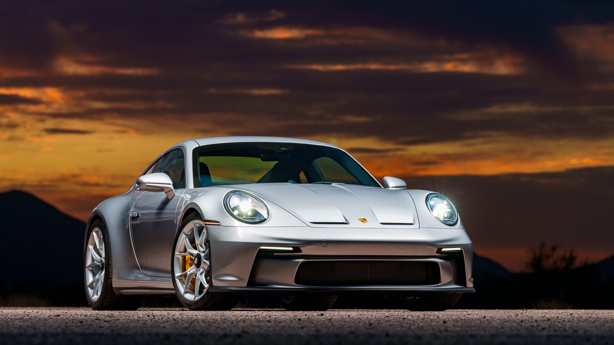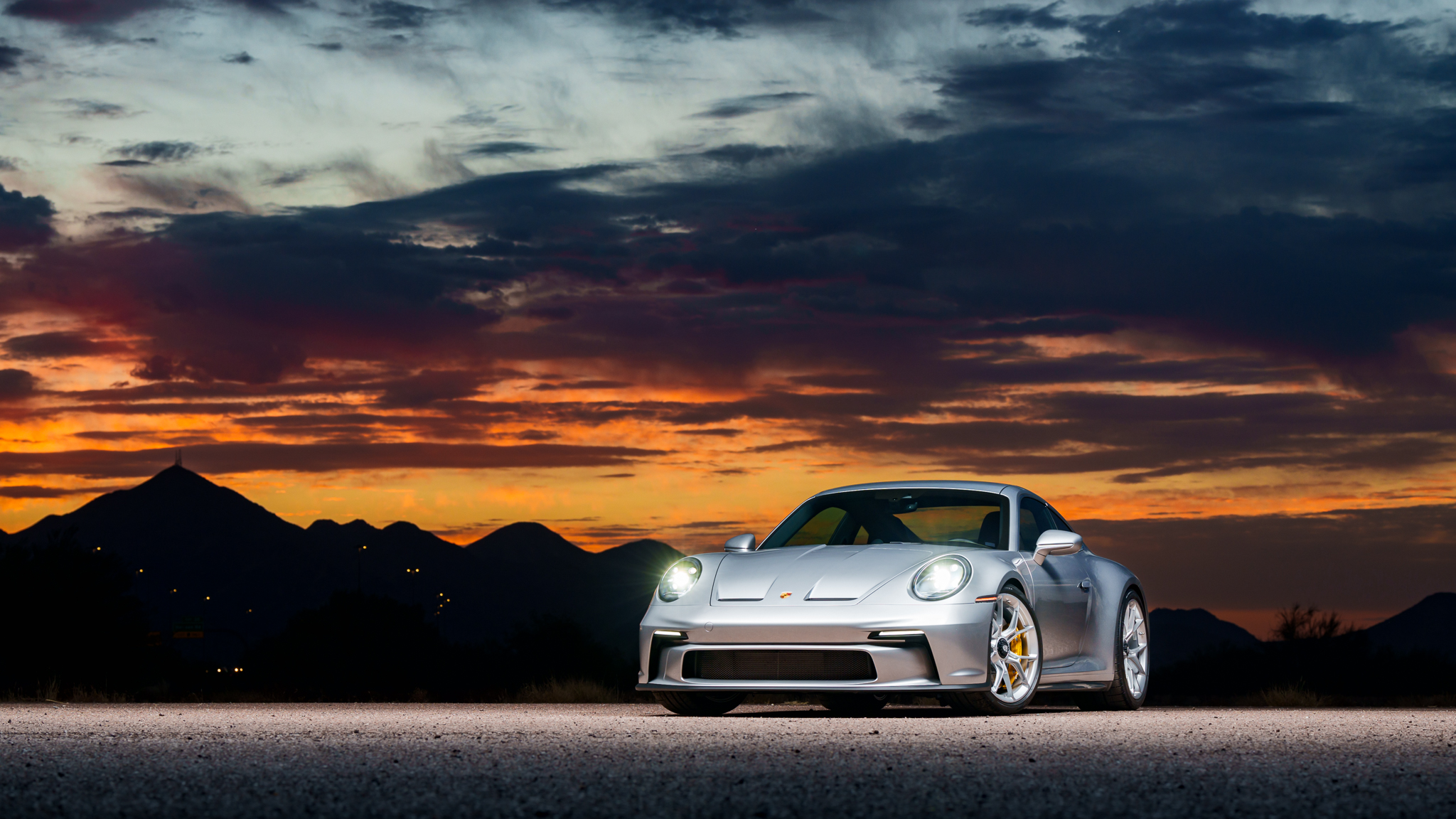 The 20″ front and 21″ rear GT3 center-lock wheels are mounted with Pirelli P Zero tires. Stopping power is provided by Porsche Ceramic Composite Brakes (PCCB) with yellow calipers over cross-drilled and ventilated discs at each corner. The car is equipped with a front-axle lift system and rear-axle steering.