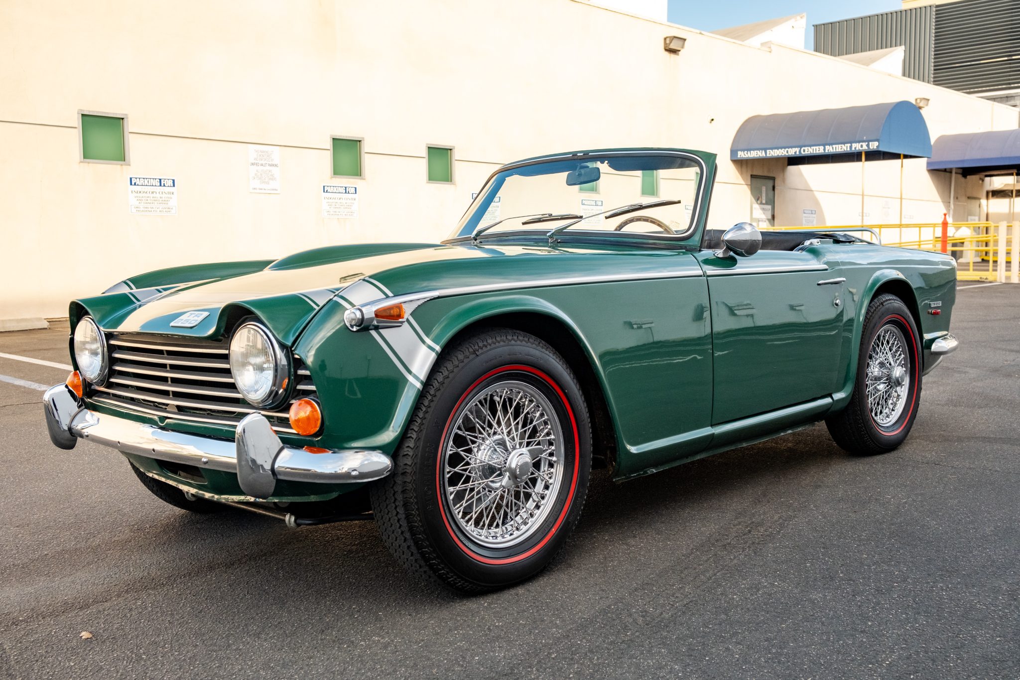 Chrome-finished 15” knock-off wire wheels are mounted with 185-15 Michelin X redline radial tires. An independent suspension was specified from the factory. Braking is provided by front discs and rear drums.