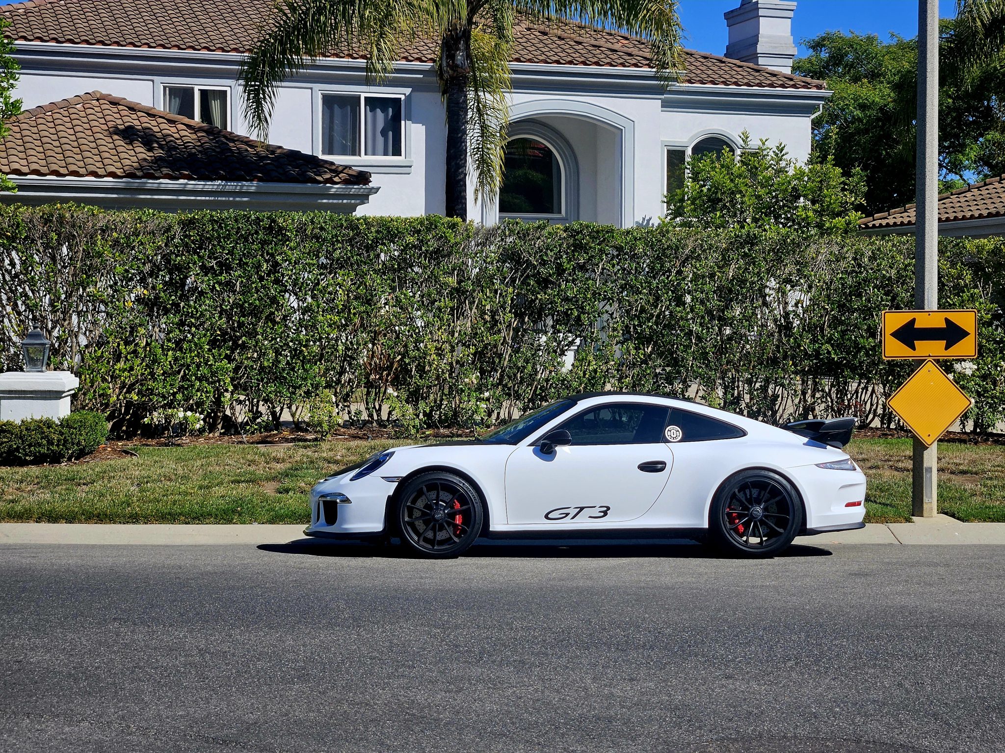 Black-finished 20″ center-lock alloy wheels are mounted with 245/35 front and 315/35 rear Continental ExtremeContact DWS 06 Plus tires with 2023 and 2024 production-date codes. Braking is handled by red Porsche-branded calipers over cross-drilled and ventilated discs, and the car is equipped with a front-axle lift system.