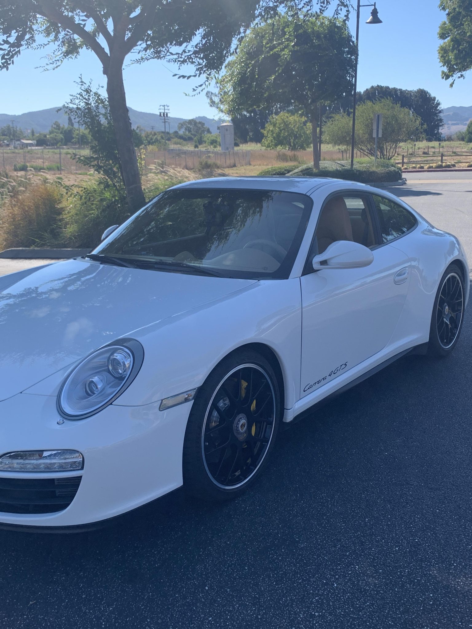 Black 19” RS Spyder center-lock wheels wear Michelin Pilot Sport 4s tires that were mounted in 2023. Braking is handled by yellow Porsche-branded calipers over cross-drilled ceramic-composite rotors at each corner. The car is equipped with Porsche Stability Management (PSM), an automatic brake differential (ABD), and was optioned with Porsche Active Suspension Management Sport suspension, which lowered the ride height by 20mm when compared with the standard Carrera.